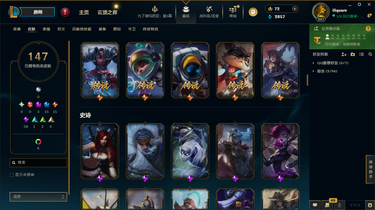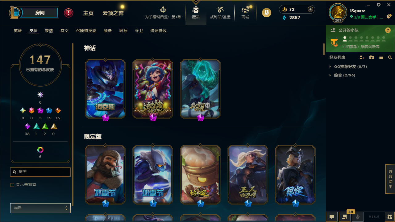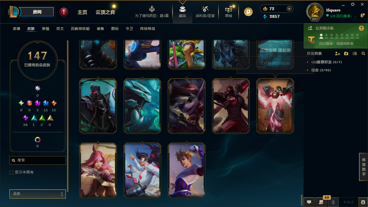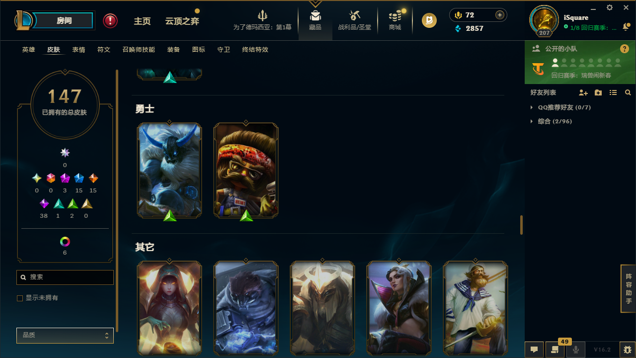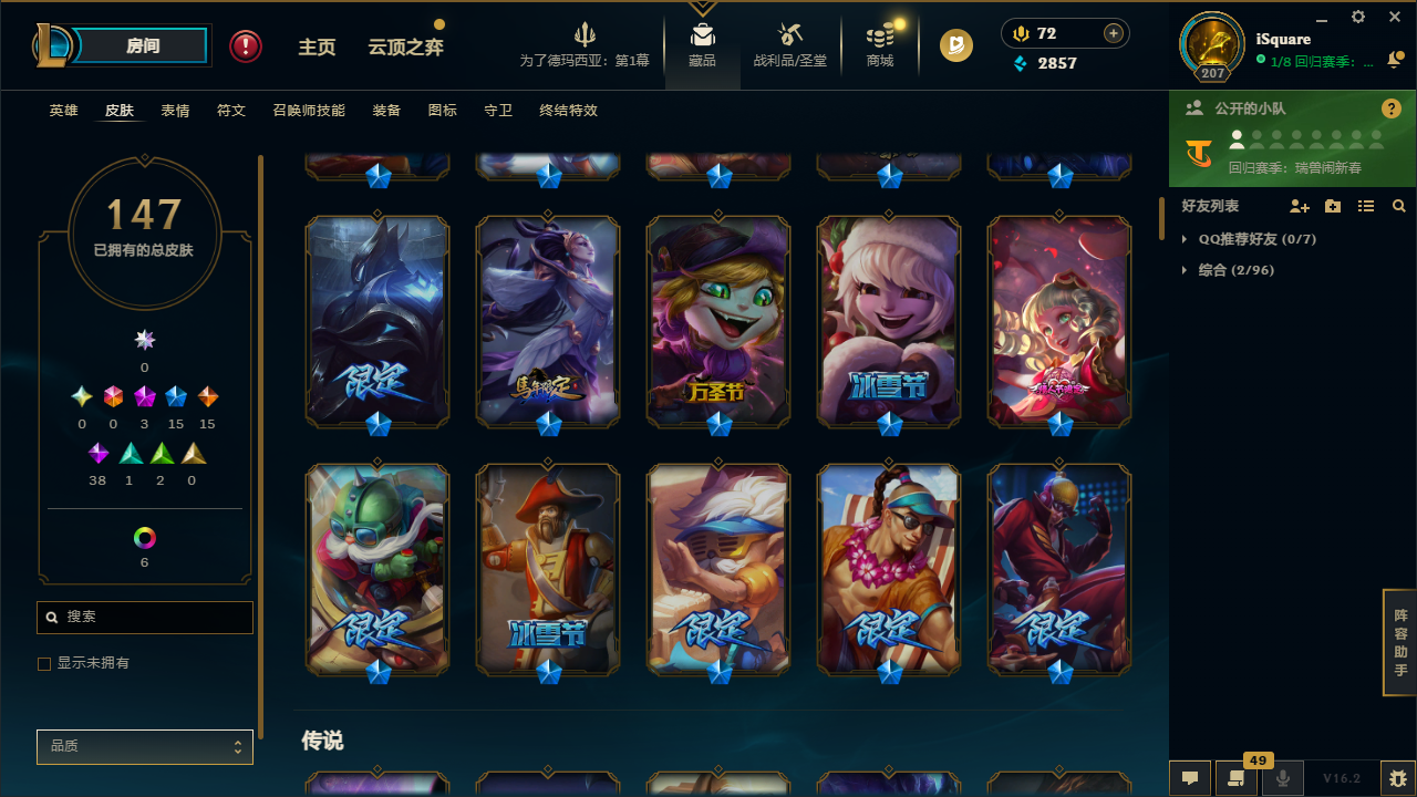 【网通】【德玛西亚】141英雄-451皮肤-11炫彩【网通】【无畏先锋】170英雄-292皮肤-95炫彩