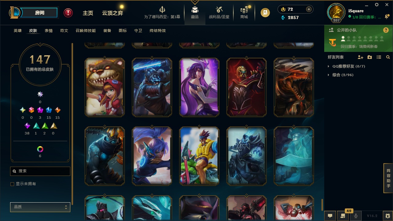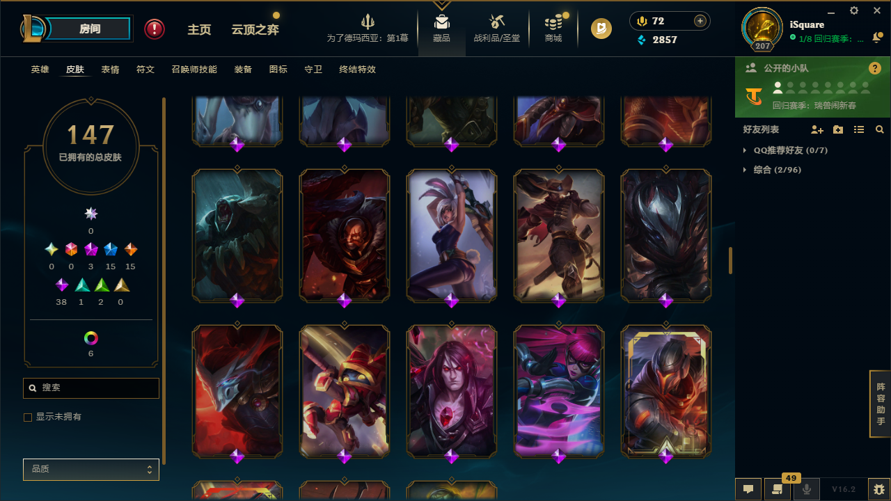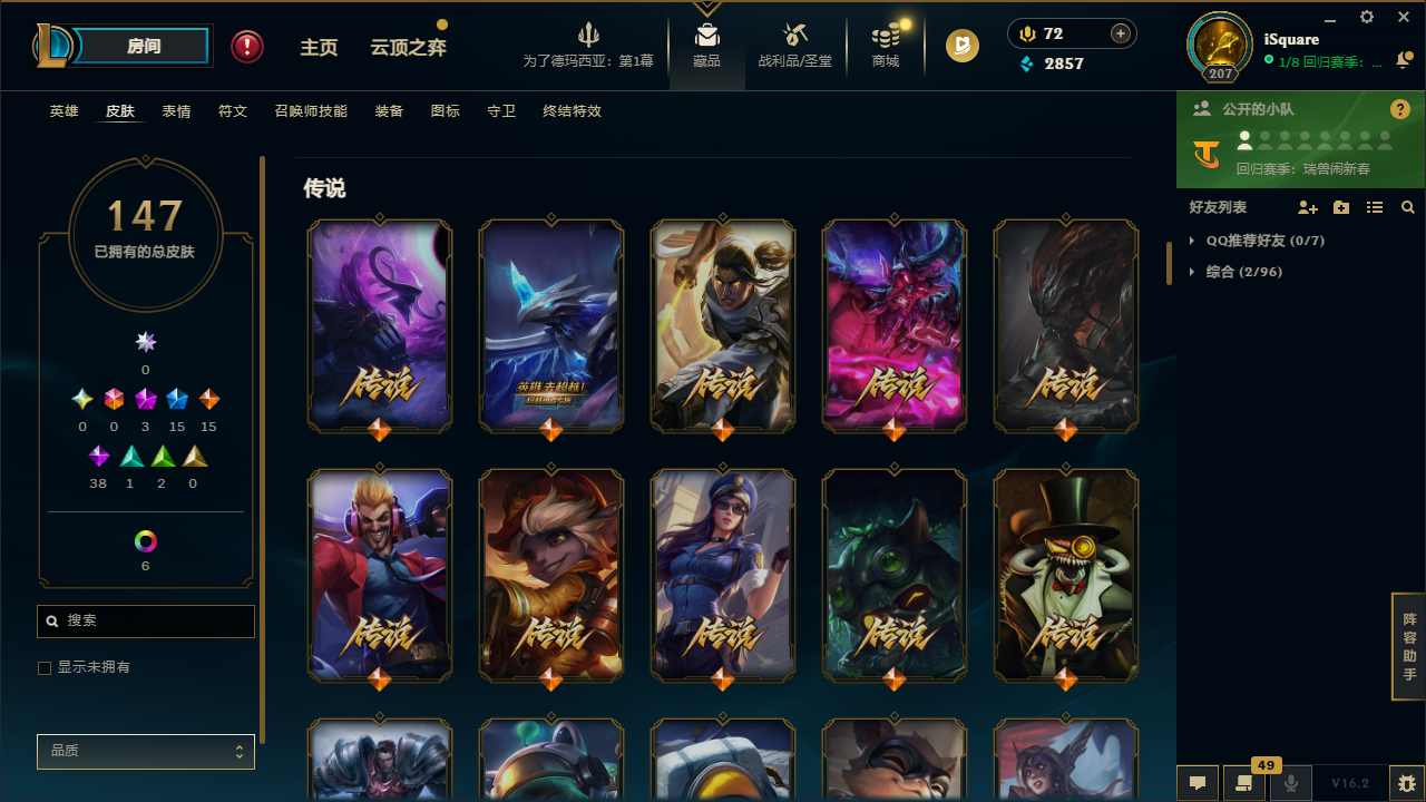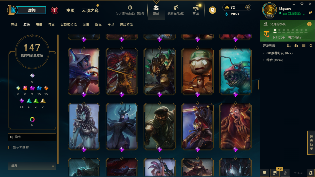 【网通】【德玛西亚】141英雄-451皮肤-11炫彩【网通】【无畏先锋】170英雄-292皮肤-95炫彩