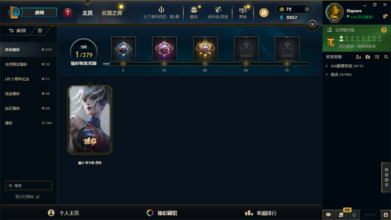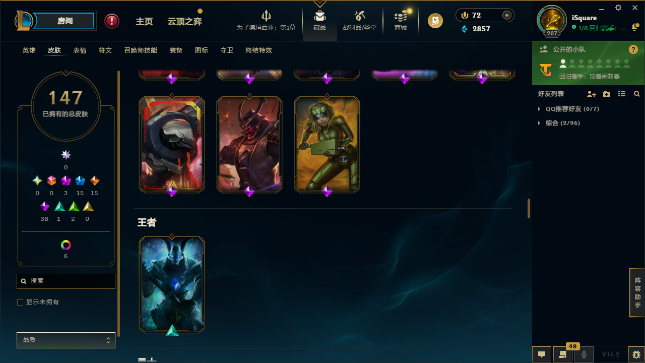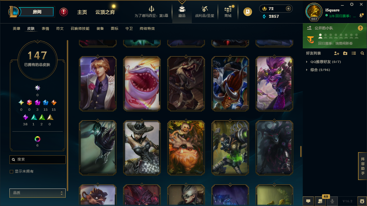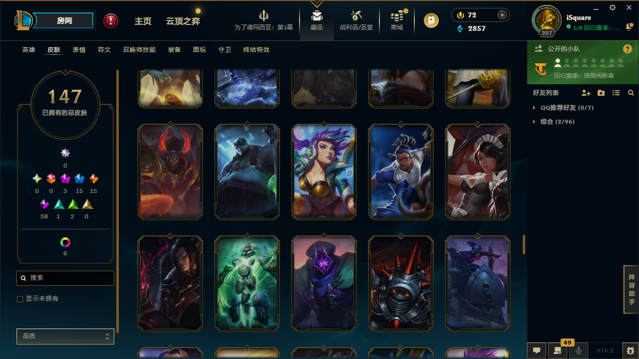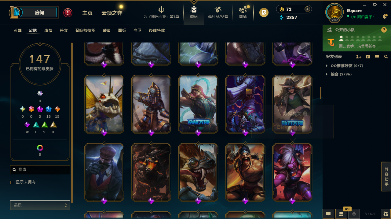 【网通】【德玛西亚】141英雄-451皮肤-11炫彩【网通】【无畏先锋】170英雄-292皮肤-95炫彩