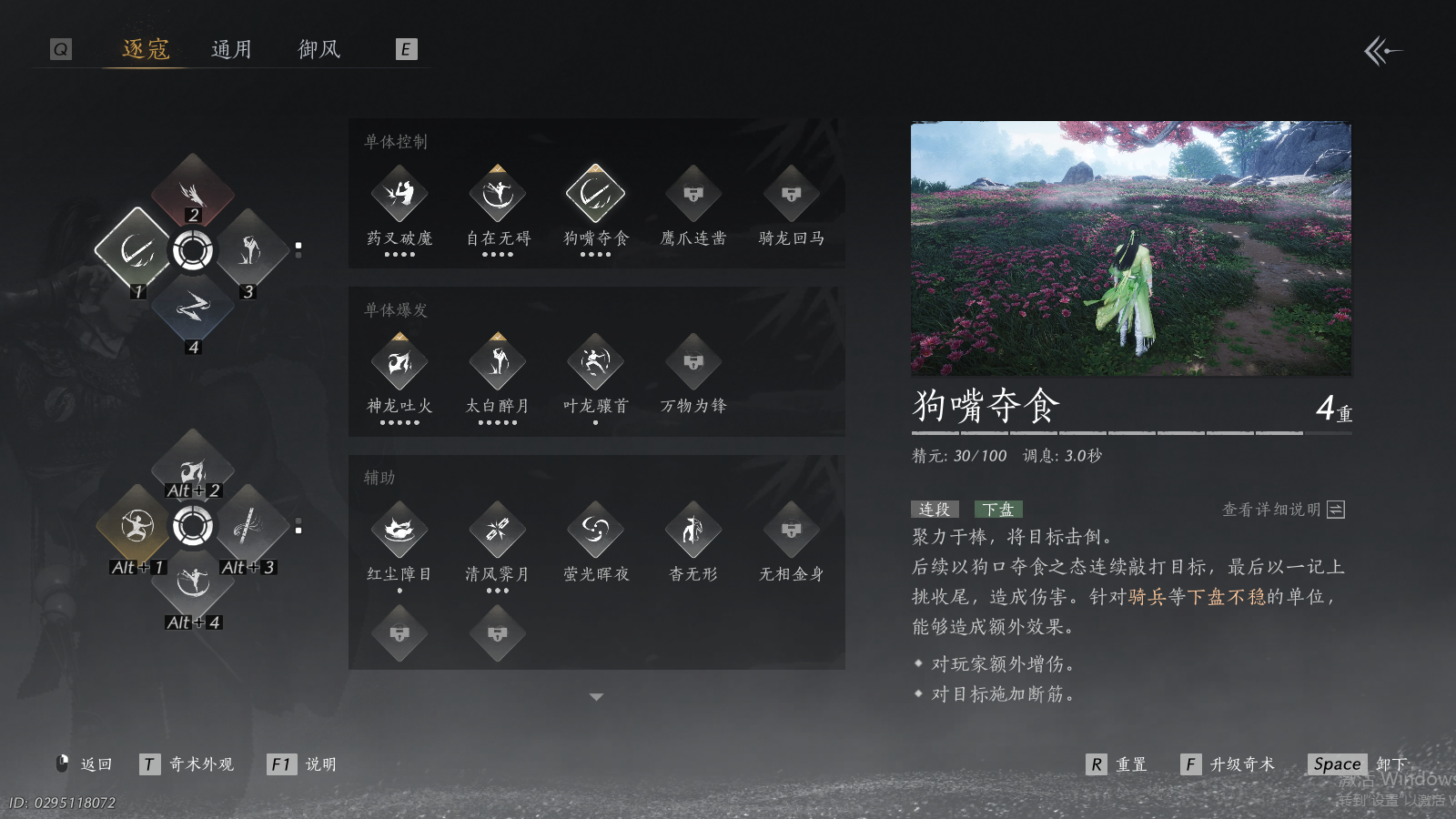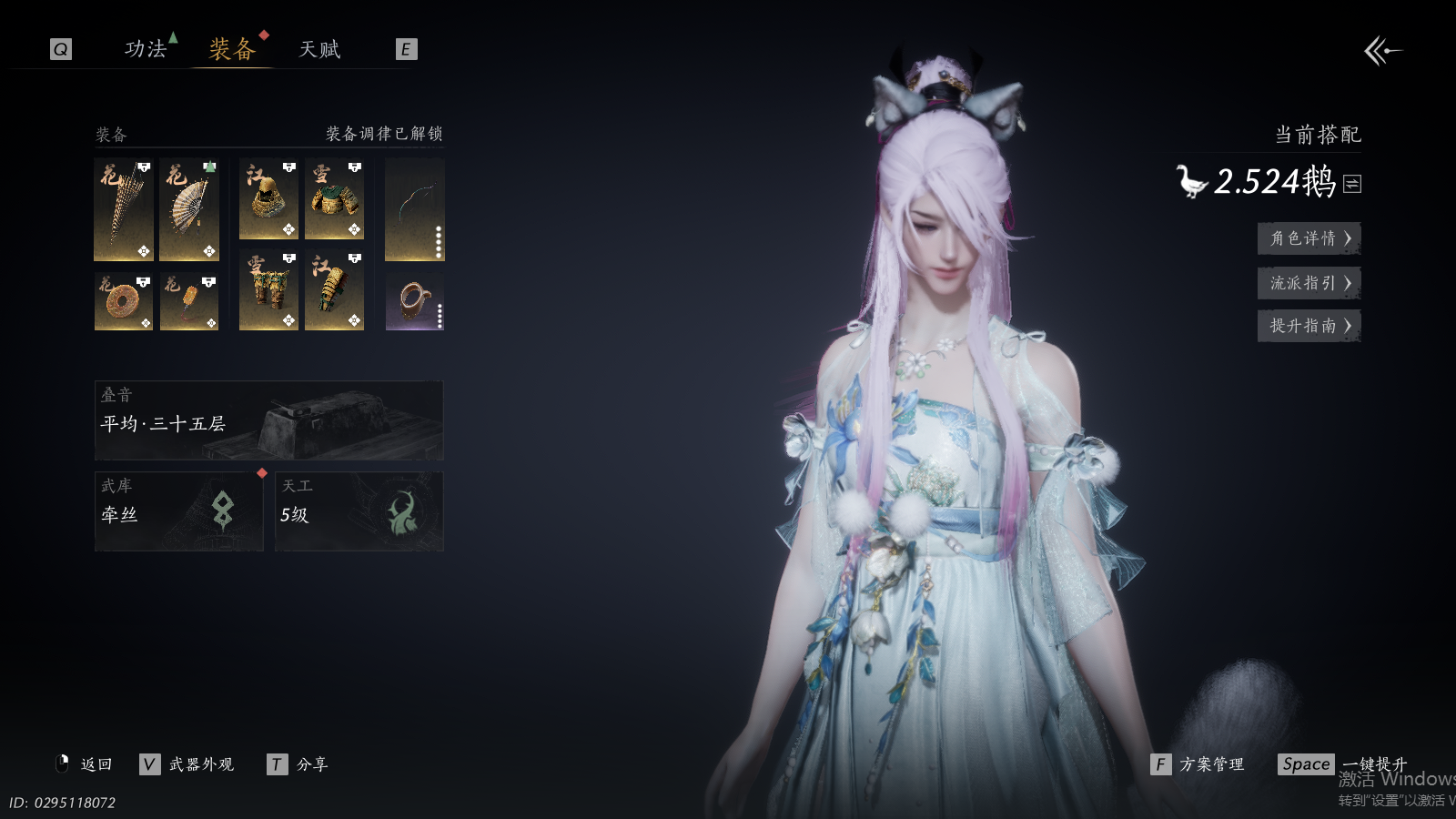 【不可封装陌刀,青丘千岁,瑞鹤仙,戍魂丹心武学,天龙舞火鳞跃天倾奇术,4套258时装,心法6665】 风华值39286 武林造诣(鹅)35775 已用八音窍数量4 未用八音窍数量0 等级100 角色性别【文本】女 【绝境】 【无换绑CD】 【未绑定或可换绑】 【未注册】 【不支持人脸包赔】 【女】 【无】 【ios】 【是】 【是】 【否】 稀有套装2 稀有武器外观1 稀有武学奇术3 套装4 稀有套装:瑞鹤仙,青丘千岁; 稀有武器外观:藏音·万古悲尘; 稀有武学奇术:鳞跃天倾,天龙舞火,戍魂丹心; 套装:白龙,剑影藏心,穿云游雪,蜀戏春;