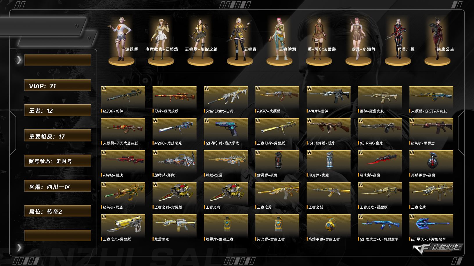 M7256/西部/四川一区/可排位/69v/幻神/幻神丹凤/王者幻神/觉醒版/6盘龙/6烈龙/【竞技荣光套/M00技荣光/柯尔特竞技荣光/*2/擎天竞技荣光/】/白虎/机械迷城穹宇/炼狱百战金芒/炼狱百战金芒庆典舞曲音效卡/王者之灵/【四防角色/王者春/】/【角色】/电竞教官云悠悠/迷迭香/零纪元/幻面灵狐/葵阿尔法武装/乔伊教练/王者涂鸦/【音效卡/炼狱百战金芒庆典舞曲音效卡/】/【枪皮】/修罗百战金芒/雷神耀金/雷神白鲨/王者武器/王者之城/王者之心/王者之势/王者之武/王者之刺/炫金武器/炫金黑龙/【小人枪/火麒麟零纪元/裁决雪莉杨/】/永久AC/有过十年记录/找回包赔