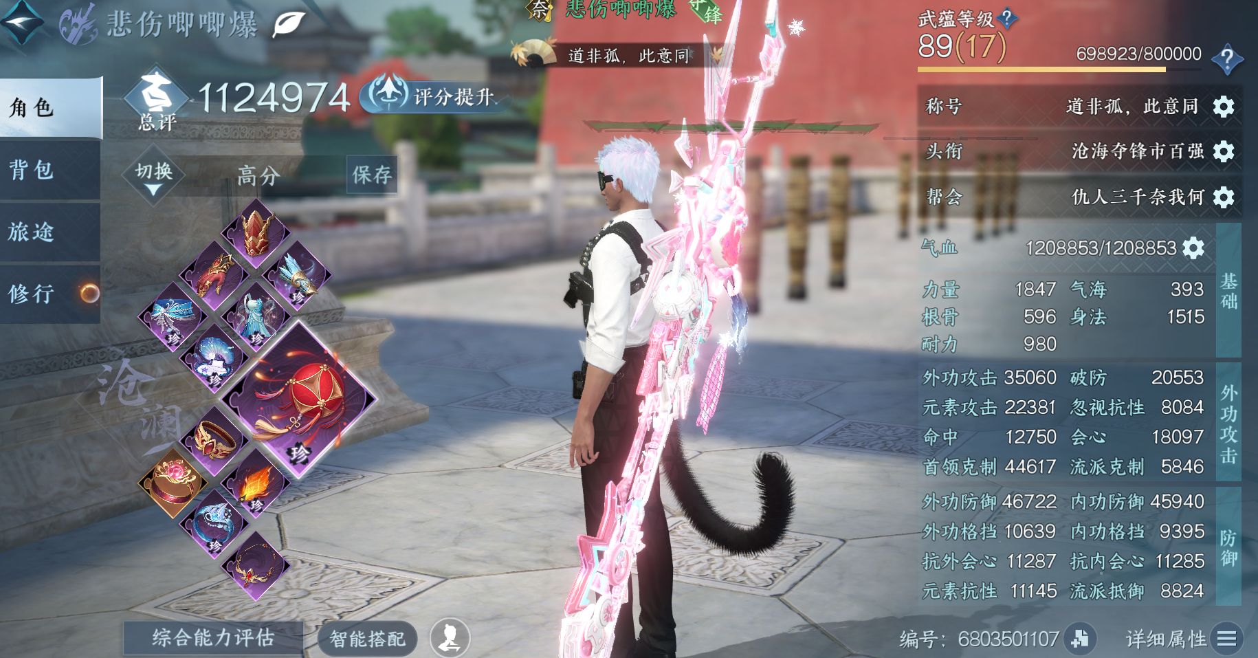 【T0瑶光高进度小号 转盘头微光+狐狸绝技+号内192W铜 41套288 两个手饰外观】 战力值139.78 总评139.78 角色等级89 衣品值205600 国色值38840 已用天赏石9 【网易手机账号】 【无换绑冷却】 【潮光】 【女】 【5级】 【把酒临风】 【互通】 转盘外观1 天赏外观8 天赏灵宠1 祥瑞坐骑26 商城外观68 武器环身1 配饰1 转盘外观:微光; 天赏外观:锦夜行,殊威,含曜,灵蔓,长乐,九霄,火焰武器,绯烟香袅; 天赏灵宠:灵宠·璇玑星; 祥瑞坐骑:呆宝,布丁,风行·江湖景,风行·世间情,风行·万灯明,龙衔瑞焰,金冠鼠鼠,纵风甲车·赤,星河转·金夕,星河转·赤夜,伯力,咩郎,墨流云·玄色,赤龙驹,奔虹赤,彩虹小马,踏歌行夜,帝皇驹,犬威哮月,犬威哮月·沧,玉霄飞练,梅香团子,绒绒夜,隐云涧,逍遥游,空山闲; 商城外观:猩红猎夜,赤乌驰阙,粉蔷曳风,雾都往事,烟雨裁春,苍蓝微风,逸夏浮澜,焕曜旋煌,曦凤嘉煌,修月碧海,绯夜誓语,血宴风华,鸿福昭运,灵娲泽生,神戬天威,珊枝琢浪,朝歌旧梦,飞叶若依,天籁闻歌,晶梦绮舞,跃动心芒,朔雪从风,逍遥千风,蝎影度月,云腾游雾,幽蝶眠花,侠影流霜,灵语星彩,幻梦巡礼,绯月狼舞,白夜俘获,凤亭疏香,悬蛛结心,川峦游墨,芳汀花影,空冥铃语,云汉逢夕,难负君思,星蝶离火,帝皇铠甲,斗墨金枢,玄喵夜行,鳞纱幻海,星宫遐音,贪狼摄星,开阳执戈,衣香鬓影,瀚渊龙炎,玉泽凌烟,金粉绮梦,烽火浮生,赤狐魅语,圣月澄空,醉墨狂歌,天纵红颜,林泽清瑶,广寒游仙,苍龙云岫,鱼龙灵泽,白灵雪魅,灵鹿瑶羽,青玉引,舞乐火霓,极夜天曦,曼珠罗玉,鸢蔷画袖,白羽武器,轻功诀伞梦; 武器环身:剑渡东海; 配饰:灵尾绰;