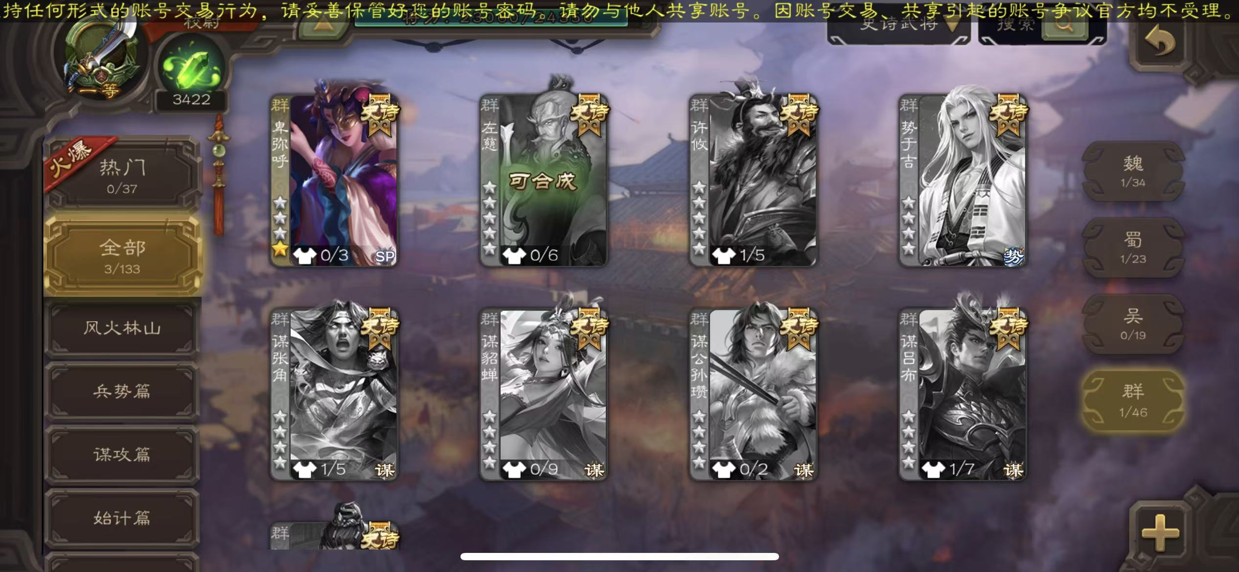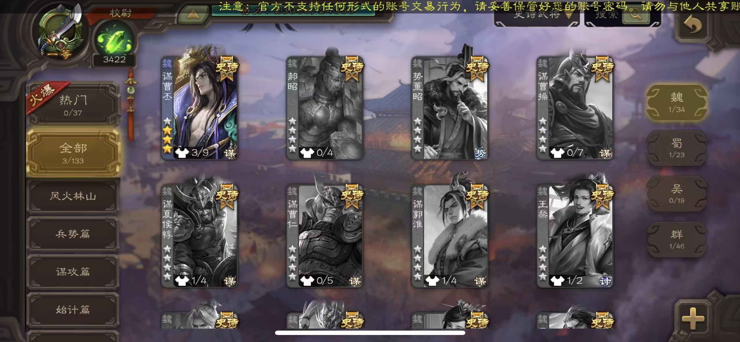 商品描述:校尉动态谋曹丕花花3400将魂3900元宝