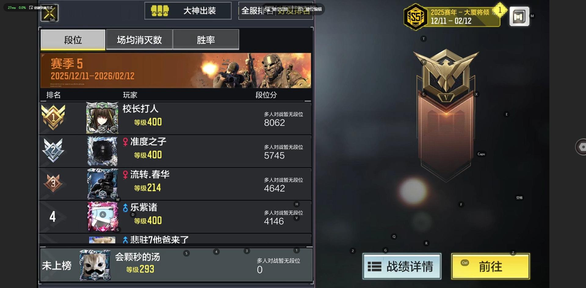 商品描述:[16410319]293级 2神话 4传说 135史诗 段位无 可二次 可修改实名 【神话枪械】Krig 6-冰霜巨龙,Grau 5.56-源核天灾【传说枪械】电棍-永恒炽热,CR56-回音律动,AK47-火箭炮,Fennec-终焉之光
