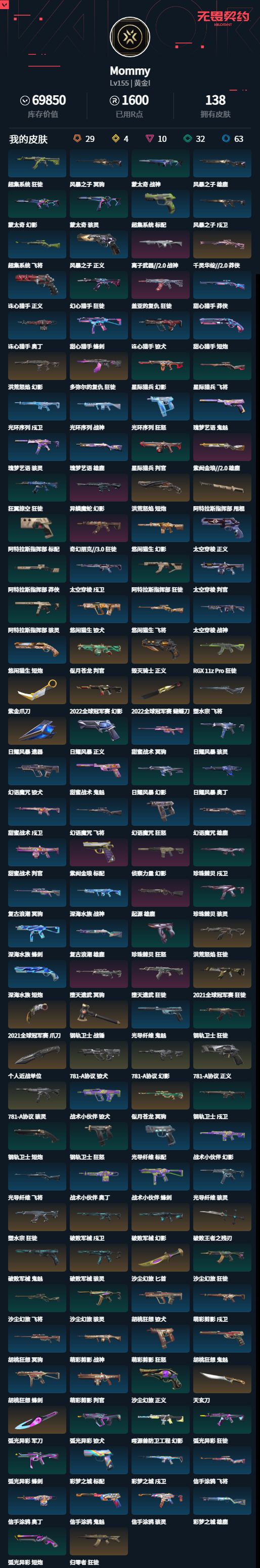 HK624/Lv155/黄金I/刀皮数量11/枪皮数量127(绝版4限定29终极4卓越10)/皮肤资产价值69850/已用R点1600/【刀皮】/近战武器-2022全球冠军赛蝴蝶刀/近战武器-2021全球冠军赛爪刀/近战武器-紫金爪刀/近战武器-天玄刀/近战武器-沙尘幻旅匕首/近战武器-破败王者之残刃/近战武器-个人近战单位/近战武器-钢轨卫士战锤/近战武器-弧光异彩军刀/近战武器-日耀风暴遗器/近战武器-阿特拉斯指挥部甩棍/ 【枪皮】/狂徒-2021全球冠军赛/幻影-2022全球冠军赛/鬼魅-破败军械/正义-毁灭骑士/短炮-洪荒怒焰/骇灵-破败军械/判官-偃月苍龙/狂徒-塑水宗/狂徒-归零者/狂徒-洪荒怒焰/狂徒-RGX11zPro/狂徒-多弥尔的复仇/幻影-破败军械/幻影-洪荒怒焰/戍卫-破败军械/冥驹-偃月苍龙/飞将-塑水宗/莽侠-千灵华绽2.0/正义-781-A协议/骇灵-781-A协议/幻影-781-A协议/獠犬-781-A协议/标配-紫阙金琅/雄鹿-起源/雄鹿-紫阙金琅2.0/狂徒-盖亚的复仇/狂徒-堕天遗武/狂徒-奇幻朋克3.0/幻影-侦察力量/幻影-异鳞魔蛇/冥驹-堕天遗武/战神-离子武器2.0/正义-沙尘幻旅/短炮-钢轨卫士/短炮-弧光异彩/狂怒-钢轨卫士/骇灵-蒙太奇/骇灵-沙尘幻旅/蜂刺-弧光异彩/判官-星际猎兵/雄鹿-复古浪潮/狂徒-钢轨卫士/狂徒-弧光异彩/狂徒-沙尘幻旅/幻影-蒙太奇/幻影-星际猎兵/幻影-噬源兽防卫工程/戍卫-钢轨卫士/獠犬-弧光异彩/冥驹-复古浪潮/飞将-星际猎兵/飞将-沙尘幻旅/战神-蒙太奇/标配-超集系统/标配-光导纤维/标配-彩梦之城/鬼魅-光导纤维/鬼魅-胡桃狂想/鬼魅-信手涂鸦/正义-风暴之子/短炮-深海水族/狂怒-珍珠棘贝/狂怒-萌彩剪影/骇灵-珍珠棘贝/骇灵-光导纤维/骇灵-信手涂鸦/蜂刺-深海水族/蜂刺-战术小伙伴/蜂刺-胡桃狂想/判官-萌彩剪影/雄鹿-风暴之子/雄鹿-彩梦之城/狂徒-超集系统/幻影-战术小伙伴/戍卫-风暴之子/戍卫-珍珠棘贝/戍卫-彩梦之城/戍卫-萌彩剪影/獠犬-战术小伙伴/獠犬-胡桃狂想/冥驹-风暴之子/冥驹-胡桃狂想/飞将-超集系统/飞将-光导纤维/飞将-信手涂鸦/奥丁-战术小伙伴/奥丁-信手涂鸦/战神-深海水族/战神-萌彩剪影/狂徒-幻心猎手/狂徒-狂翼掠空/狂徒-阿特拉斯指挥部/幻影-日耀风暴/莽侠-阿特拉斯指挥部/正义-日耀风暴/标配-阿特拉斯指挥部/骇灵-阿特拉斯指挥部/骇灵-日耀风暴/奥丁-日耀风暴/幻影-悠闲猫生/戍卫-光环序列/戍卫-太空穿梭/戍卫-甜蜜战术/獠犬-诛心猎手/獠犬-悠闲猫生/獠犬-幻语魔咒/冥驹-甜蜜战术/莽侠-甜心猎手/飞将-悠闲猫生/飞将-幻语魔咒/正义-诛心猎手/正义-太空穿梭/鬼魅-瑰梦艺语/鬼魅-甜蜜战术/短炮-甜心猎手/短炮-悠闲猫生/狂怒-光环序列/狂怒-幻语魔咒/骇灵-瑰梦艺语/蜂刺-甜心猎手/判官-太空穿梭/判官-甜蜜战术/雄鹿-瑰梦艺语/雄鹿-幻语魔咒/奥丁-诛心猎手/战神-光环序列/战神-太空穿梭/【热门卡面】/峡谷骑手卡面/宇宙大战卡面/5周年救赎卡面/诛心猎手卡面/5周年为何而战卡面/战术偶像团卡面/5周年钢琴家玛丽卡面/甜心猎手卡面/5周年盐蚀卡面/禁灭工牌卡面/5周年为你而战卡面/TB-01战术巨熊卡面/星际猎兵卡面/光环序列卡面/5周年颠覆战局卡面/5周年流光似箭卡面/5周年掌控全局卡面/再火一回卡面/身陷蝰腹卡面/第四季破局时刻卡面/大军“鸭”境卡面/终章5周年破碎卡面/5周年决意卡面/5周年悠闲假日卡面/古典雕塑卡面/5周年两个世界卡面/5周年宇宙分裂卡面/只剃两边卡面/5周年狂欢之夜卡面/清风徐来卡面/宁静海岸卡面/5周年夺还卡面/钢锁vs盖可卡面/5周年消灭源能者卡面/双城之战金克丝卡面/Clutch卡面/5周年破碎卡面/悠闲猫生卡面/阿特拉斯指挥部卡面/太空穿梭卡面/5周年薪火初燃卡面/王牌对王牌卡面/2022全球冠军赛卡面/归乡芮娜卡面/是不是哥们卡面/5周年卡面/亲手缝制卡面/孤独派对卡面/狂欢就现在卡面/聚合之力卡面/声感陷阱设计图卡面/时间到卡面/最高舞台卡面/梦幻奶茶卡面/零点嗅探设计图卡面/夜班卡面/瓦娃脸雪糕卡面/沙雕爆能器卡面/珍珠棘贝卡面/盖可工牌卡面/复古浪潮卡面/清除名单卡面/深海水族卡面/艺无止境坚不可摧卡面/艺无止境火焰卡面/艺无止境灵感卡面/龍记卡面/先瓦为敬-红色卡面/红鳞松叶卡面/化茧成蝶卡面/比比看谁快卡面/781-A协议卡面/蝰蛇vs幽影卡面/光导纤维卡面/没有什么能逃过我的眼睛卡面/逆向独行卡面/战术小伙伴卡面/同步耍酷卡面/钢轨卫士卡面/势不可挡盖可卡面/完美调谐卡面/暗枪卡面/破败军械卡面/黑影先生的咖啡卡面/天台狂欢卡面/纪念照P2卡面/胡桃狂想卡面/沙尘幻旅卡面/一击全倒卡面/壹决工牌卡面/萌彩剪影卡面/势不可挡KO卡面/铁臂vs雷兹卡面/Luie卡面/情人节不死鸟卡面/神射企鹅卡面/夯实根基卡面/热烈欢迎卡面/夜露vs不死鸟卡面/铁臂设计图卡面/不要松手卡面/维特鲁威皮蛋卡面/彩梦之城卡面/旧路重游卡面/捷风vs捷风卡面/战斗贤者卡面/弧光异彩卡面/最新一期卡面/信手涂鸦卡面/百弹不侵卡面/军团卡面/幽影行者卡面/友军火力卡面/纳米炸弹卡面/冰淇淋店卡面/冠军小队卡面/当心坠落卡面/万事如意卡面/代号红色卡面/爆弹机器人设计图卡面/新兵报到卡面/V契约卡面/无畏契约卡面/【热门挂饰】/天外飞客挂饰/幻心猎手挂饰/甜心猎手挂饰/诛心猎手挂饰/V25第六幕纪念币挂饰/垃圾大盗挂饰/狮心勃勃挂饰/嗨宝药瓶挂饰/烘焙战术熊挂饰/星际伙伴挂饰/淡定鸭挂饰/致命剂量挂饰/V25第五幕纪念币挂饰