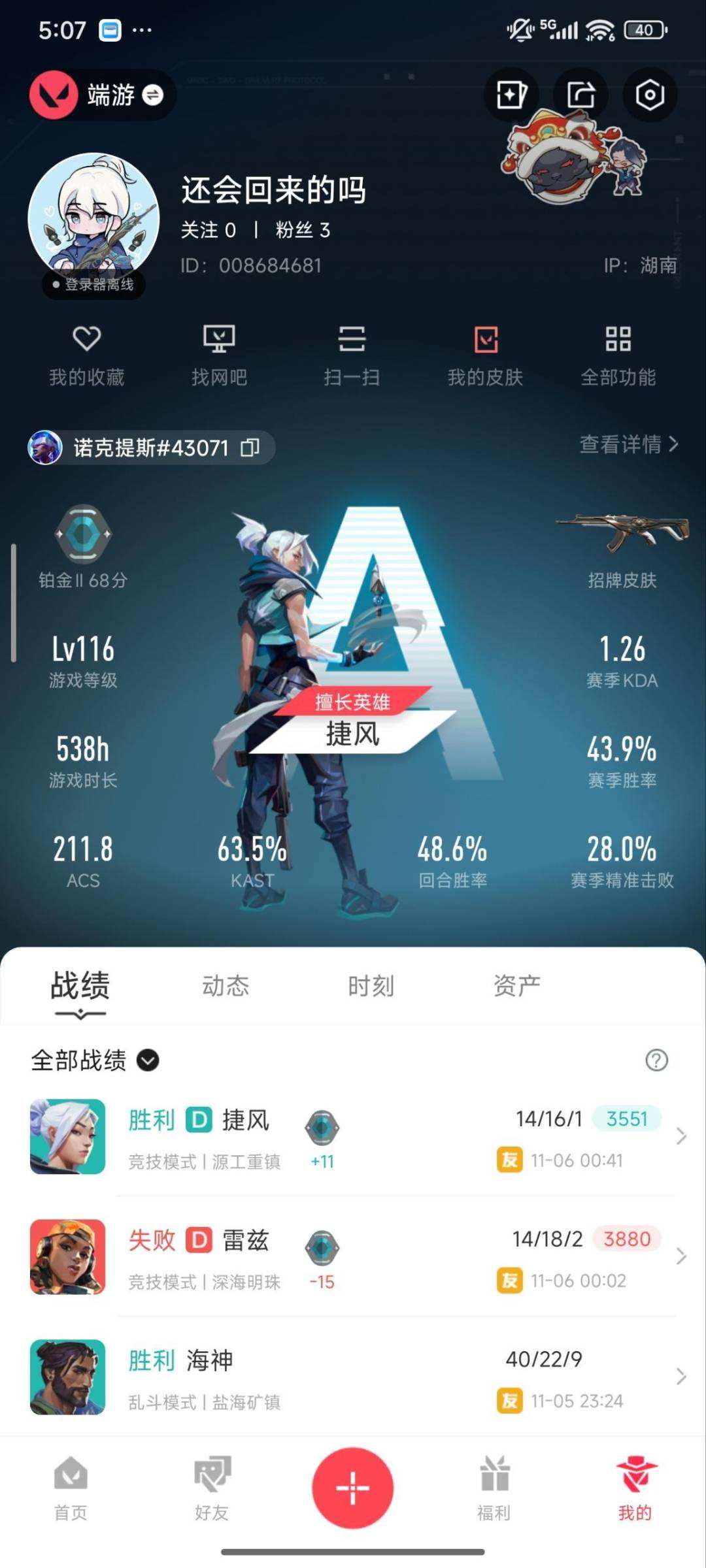 [13706220]Q191850 无畏契约/38等级/未定级段位/16英雄/22皮肤/资产15000/已使用R点355/剩余R点5/2022全球冠军赛-幻影,光明哨兵-狂徒,洪荒怒焰-狂徒,超限闪存-匕首,天御刀,夜之蝴蝶,盖世英雄-冥驹,VCT-x-BLG-标配,破败军械-鬼魅,离子武器-正义