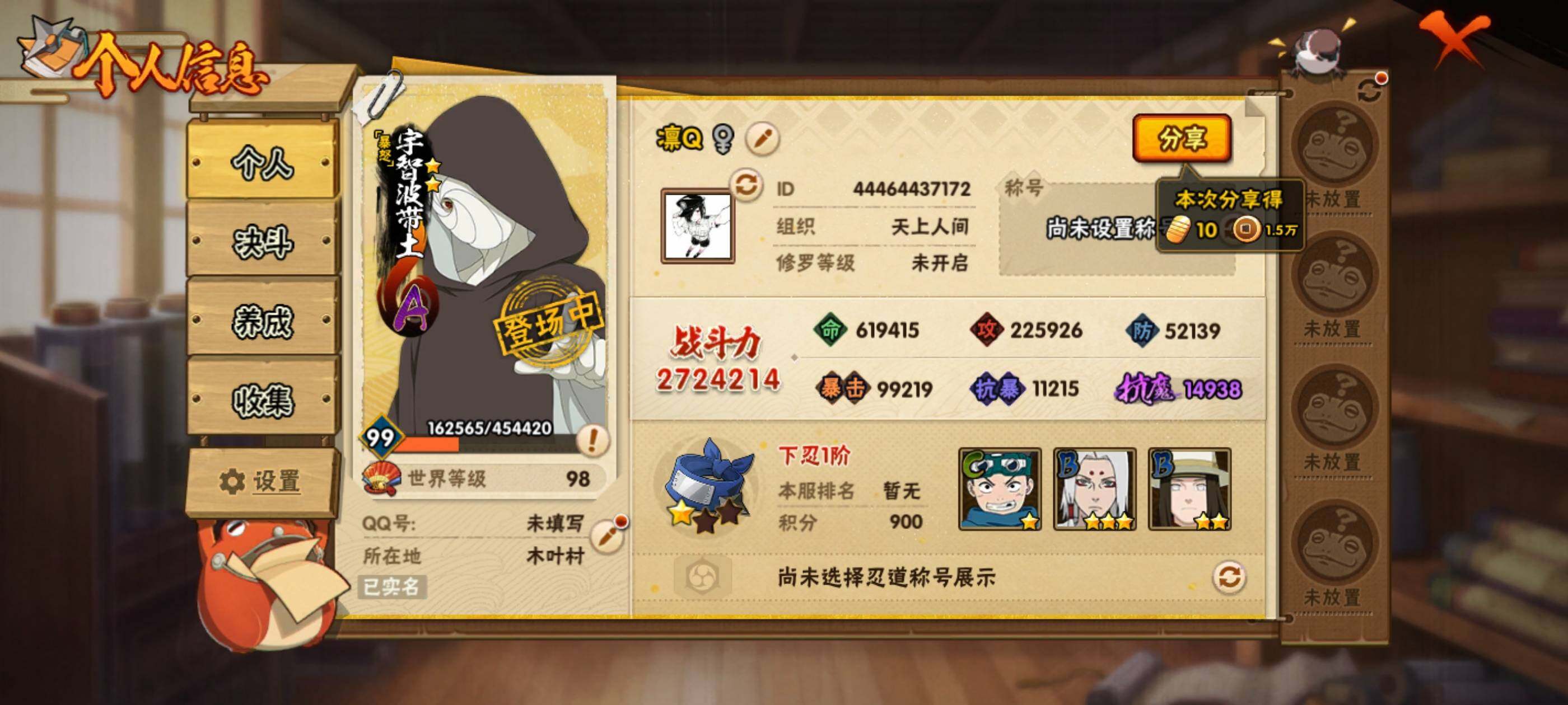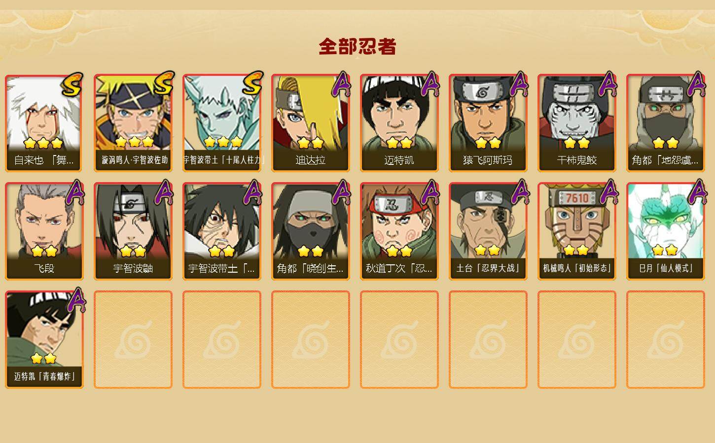 商品描述:[16440322]xr49634-安卓-QQ-无二次 3S级忍者数-14A级忍者数【S级忍者】:自来也「舞之豪杰」(3星),漩涡鸣人·宇智波佐助(3星),宇智波带土「十尾人柱力」(3星)【A级忍者】:迪达拉(2星),飞段(2星),干柿鬼鲛(2星),机械鸣人「初始形态」(2星),迈特凯(2星),角都「地怨虞」(2星),角都「晓创生」(2星),猿飞阿斯玛(2星),宇智波鼬(2星),宇智波带土「暴怒」(2星),秋道丁次「忍界大战」(2星),土台「忍界大战」(2星),巳月「仙人模式」(2星),迈特凯「青春爆炸」(2星)