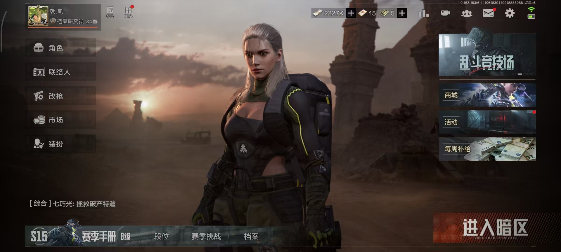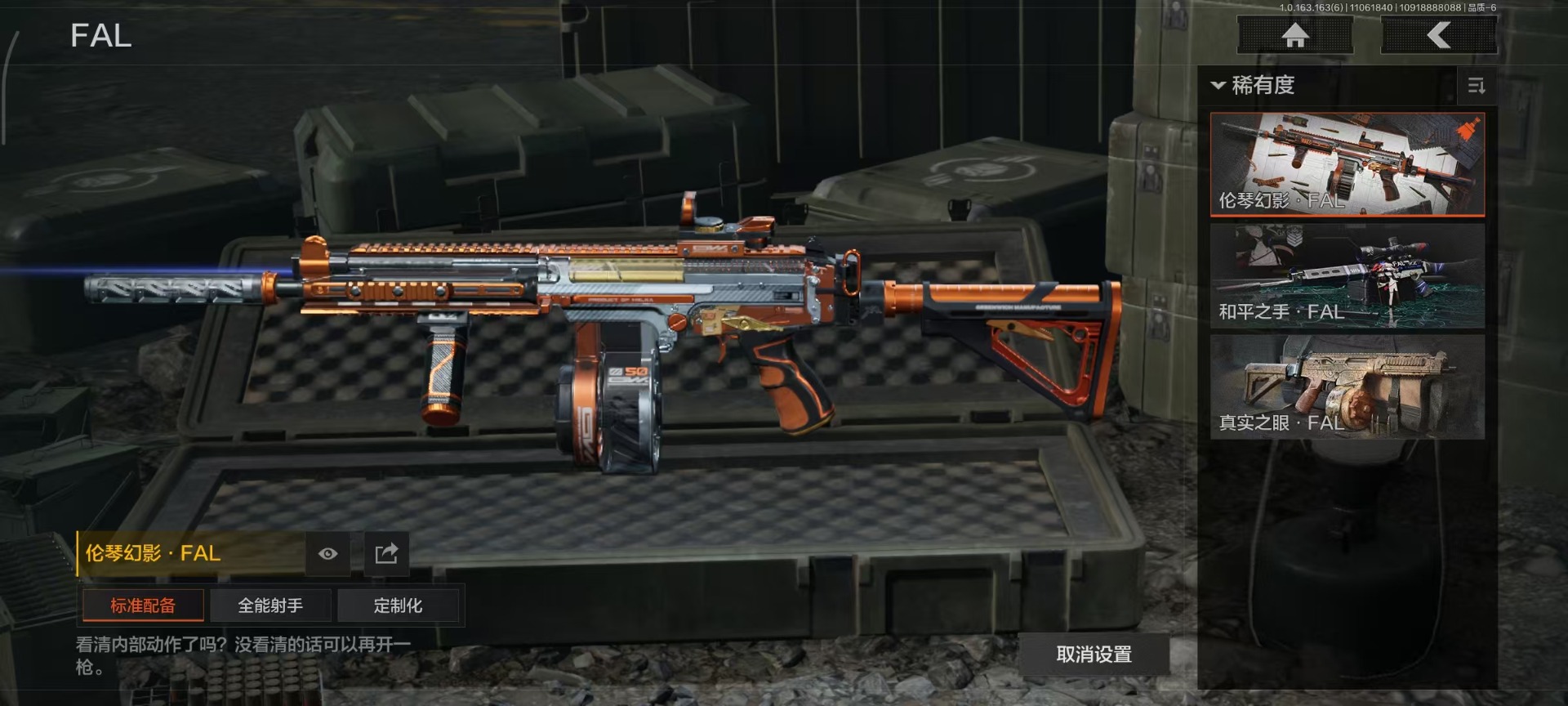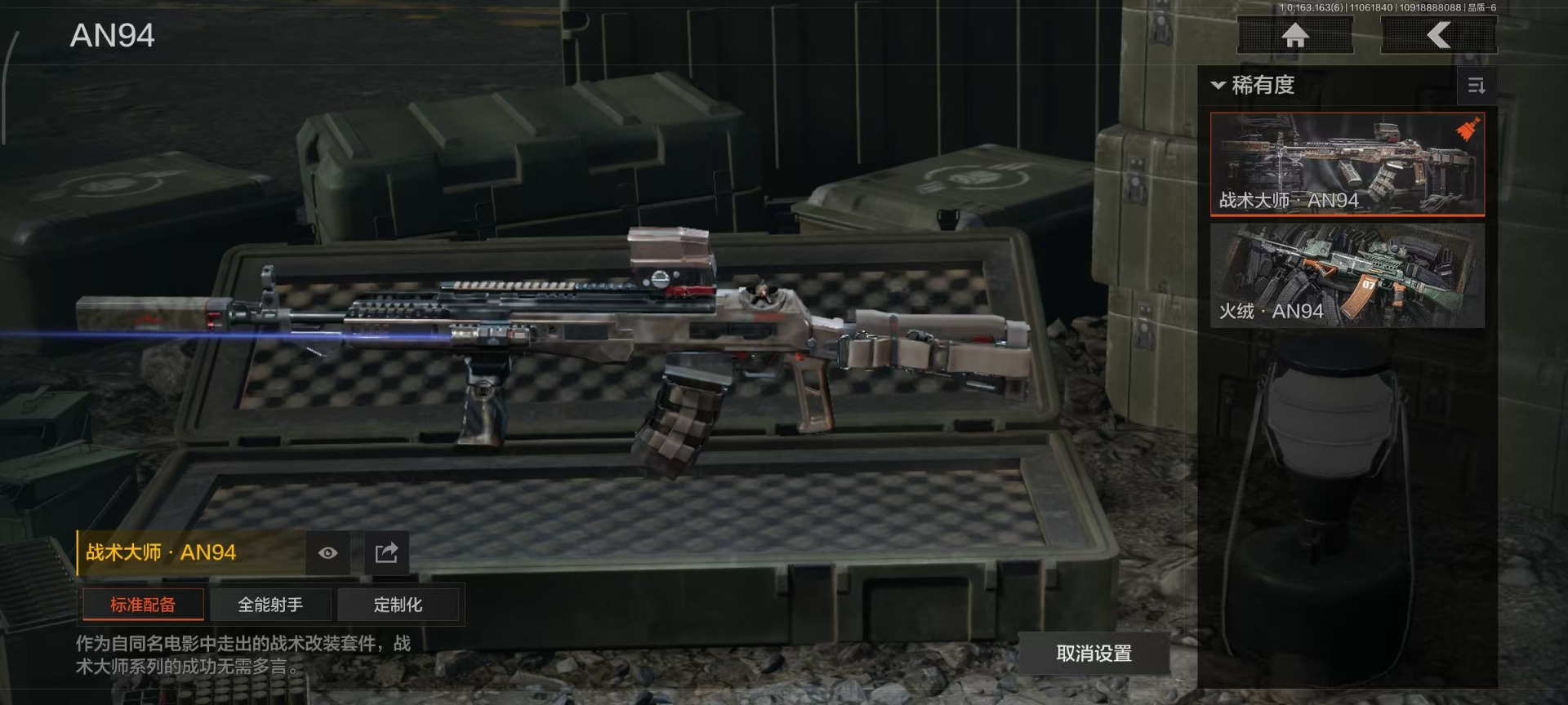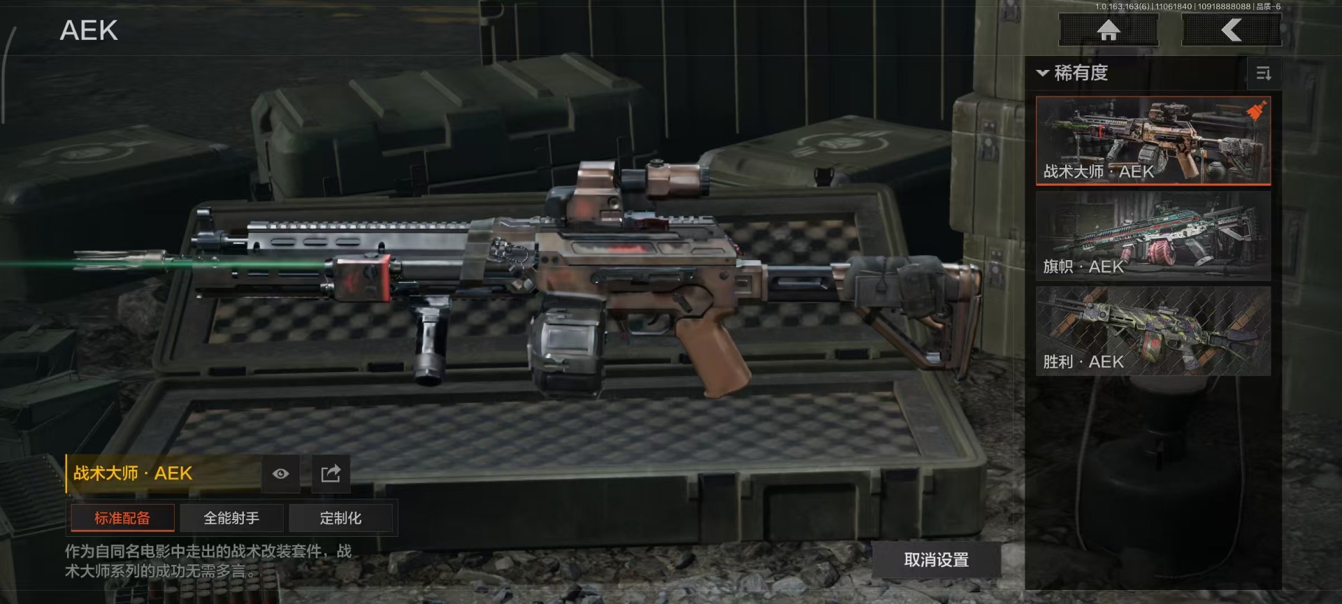 库存价值13.7 1近战武器 7金枪皮 可修改实名 【柯恩币数量】:1848【近战武器】:下弦月【金色枪皮】:告丧夜曲·AUG,旗帜·AEK,棱光裂变·QBU191,告丧夜曲·AR57,旧王圣谕·QBZ191,旧王圣谕·VSS,战术大师·AK102【紫色枪皮】:旗帜·SVDS,棱光裂变·ACE31,棱光裂变·AK74N,棱光裂变·AK102,棱光裂变·AKM,最后防线·AEK,禁止访问·UMP45,北国内卫·AN94,骑士之剑·SJ16,竞技·AUG,炎夏浪花·H416,快乐游戏·M110,典礼武备·M249,典礼武备·14,典礼武备·GROZA,猩红羽翼·VSS,无声暗月·AR57,竞技·M4A1,逆火·MDR,极恶·AUG,湖冰倒影·MP5,缟兵玄墨·MPX,07式林地迷彩·QBZ191,轰炸·AX50,娜迦·RPK16,涂绘猎人·AR57【角色装扮(紫)】:都市夜影套装