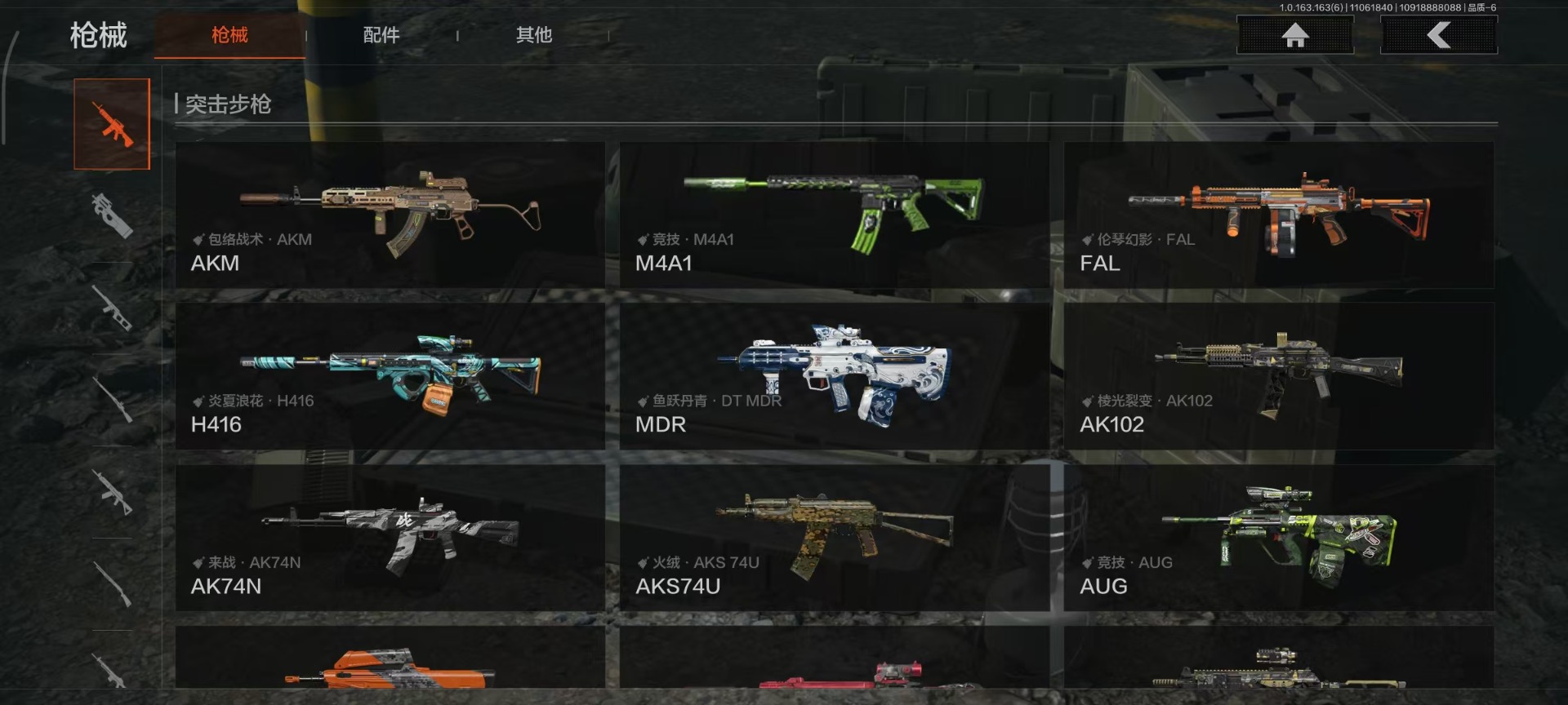商品描述:[13704039]库存价值133.2 3近战武器 1金套装 9金枪皮 可修改实名 【柯恩币数量】:2227 【角色装扮(金)】:火绒·塔莉娅 【近战武器】:工兵铲,来战·开山刀,胜利军刀 【金色枪皮】:利齿风暴·MPX,旗帜·AEK,告丧夜曲·AR57,浮鳞影青·QBZ192,伦琴幻影·FAL,旧王圣谕·QBZ191,战术大师·AEK,战术大师·AN94,包络战术·AKM 【紫色枪皮】:狂怒荣耀·Vector9,棱光裂变·ACE31,棱光裂变·AK102,棱光裂变·AKM,武侍·SJ16,炎夏浪花·H416,炎夏浪花·MP5,竞技·AUG,竞技·M110,秘域鎏金·RPK16,逆火玄石·AKM,逆火玄石·M16,粉绒臻选·AR30,典礼武备·14,战术大师·SVDS,利齿风暴·T03,利齿风暴·T79,猩红羽翼·VSS,骤羽尖啸·FAMAS,鱼跃丹青·MCX,鱼跃丹青·DT MDR,伦琴计量·USAS12,伦琴计量·Vector45,来战·AK74N,竞技·M4A1,和平之手·FAL,白色丧钟·莫辛 【角色装扮(紫)】:王国卫队礼装,金狮护身·转运套装,鎏金街头套装,都市夜影套装