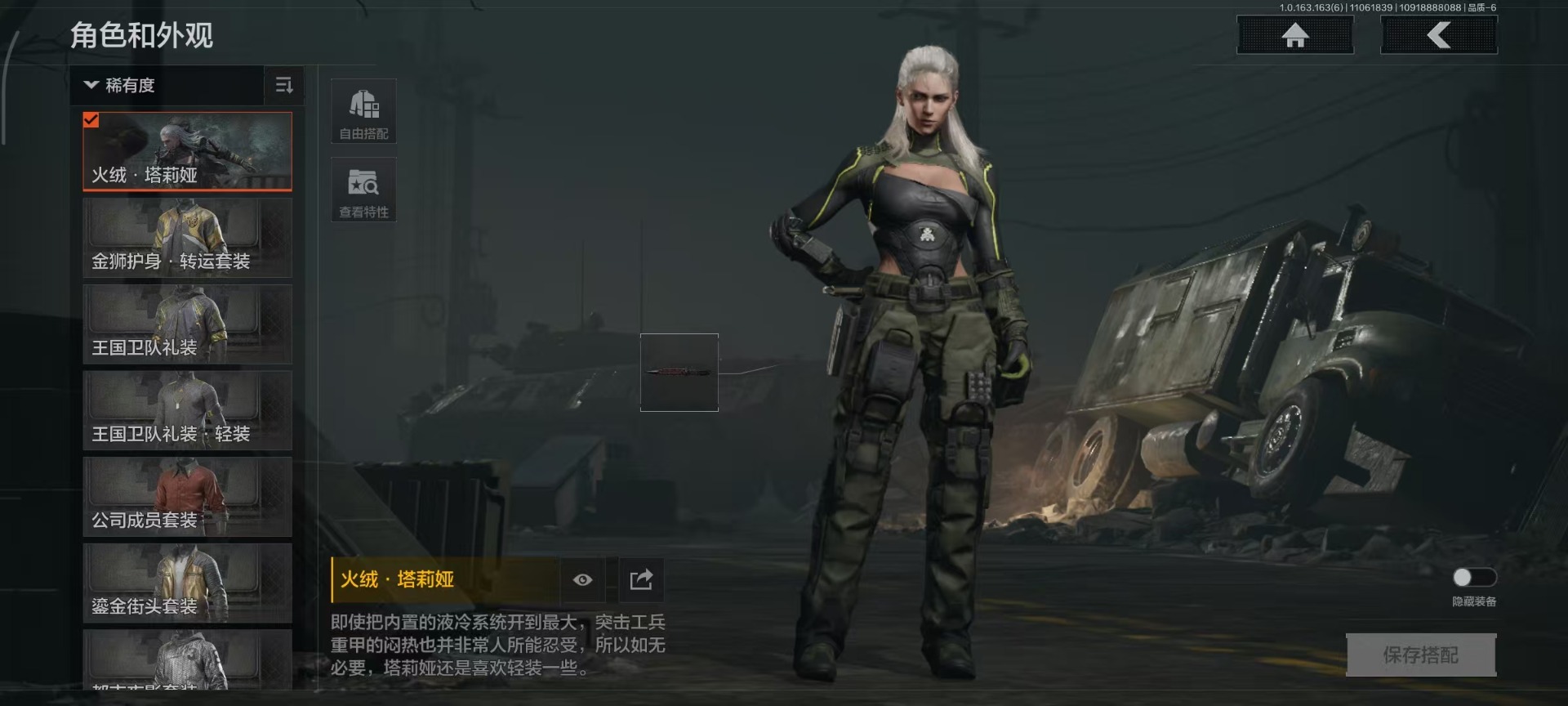 库存价值9.9 5近战武器 1金套装 1金枪皮 可修改实名 【柯恩币数量】:57345【角色装扮(金)】:火绒·塔莉娅【近战武器】:来战·开山刀,瀚星斩铁,工兵铲,涂鸦利刃,裁决手杖剑【金色枪皮】:竞技·FAL【紫色枪皮】:火绒·AK12,棱光裂变·AKM,无畏·USAS12,骑士之剑·SJ16,百锻寒芒·T03,百锻寒芒·T951,竞技·AUG,V·SKS,竞技·MDR,掌中盾·MP5,自喷网格·H416,来战·AK74N,德尔塔小队·M4A1,玄戈梨花·MPX,07式林地迷彩·QBZ191,全地形数码·M110【角色装扮(紫)】:都市夜影套装