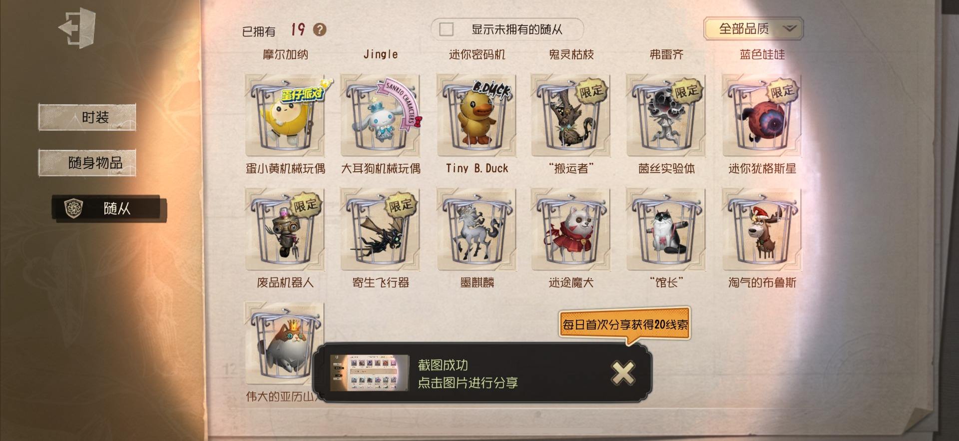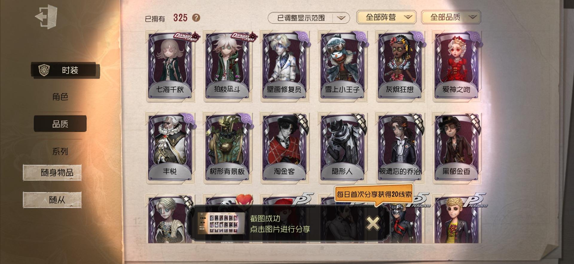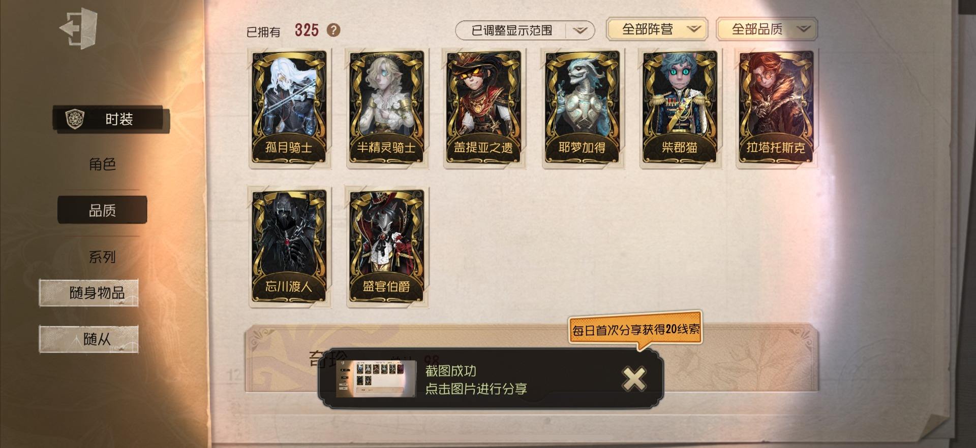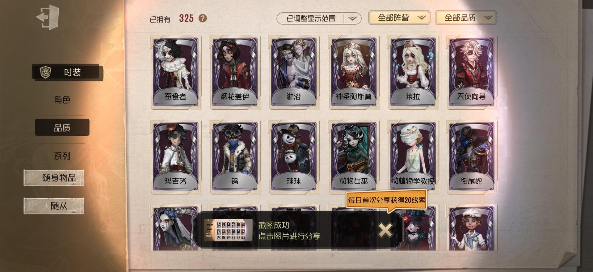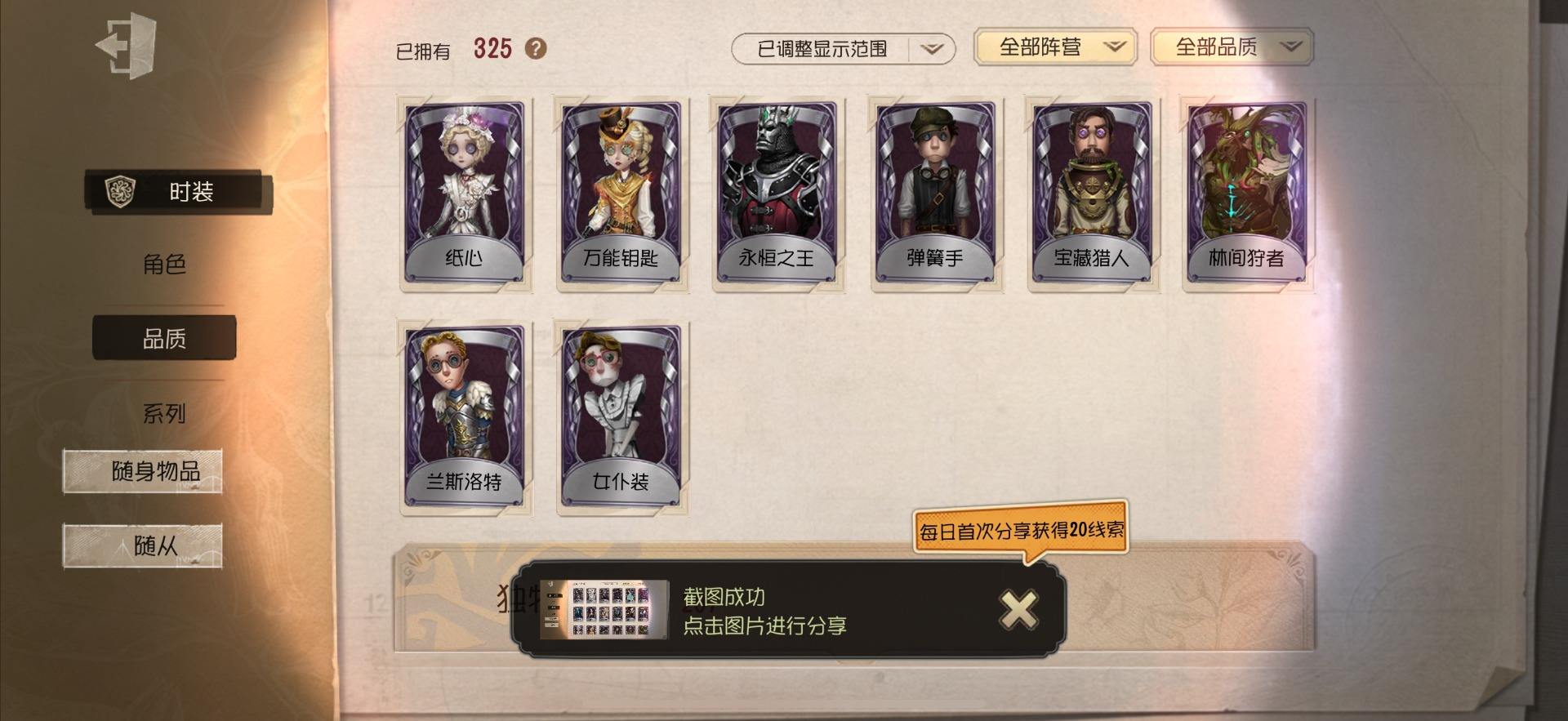 [14028274]OPPO-非账号转移 手机账号 559时装 23金皮 147紫皮 20随从 186随身物品 【时装】:勘探员-盖提亚之遗,爱哭鬼-摩诺,红蝶-壹原侑子,渔女-Chef K,小提琴家-不羁的浪漫,野人-雪原猎人,佣兵-柴郡猫,佣兵-赤井秀一,蜘蛛-花祭,“囚徒”-天海兰太郎,“小女孩”-欧律狄刻,调香师-提炼师,记者-伊布,医生-司药,雕刻家-善忘的海马体,记者-华生小姐,画家-掌中篆记,幸运儿-蛋小黄的好朋友,调香师-Buffy,教授-紧急运输,古董商-菌丝研究,画家-多色印刷,蜘蛛-不息载械,木偶师-义体再构,小说家-“伊始新篇”,击球手-迫降专家,空军-尼德霍格,空军-寒香舞,空军-毛利兰,机械师-不会枯萎的花,机械师-小红帽,26号守卫-蛋壳先生,爱哭鬼-点金,病患-逃罪之人,“杰克”-盛宴伯爵,红夫人-贝拉夫人,红蝶-花嫁,调香师-今夜不再,调香师-Lady K,“小女孩”-滚滚伙伴,医生-罪木蜜柑,幸运儿-苗木诚,幸运儿-拉塔托斯克,孽蜥-窃梦行者,盲女-暗金蛋糕,盲女-吉尔达,梦之女巫-川上富江,“囚徒”-蝰
