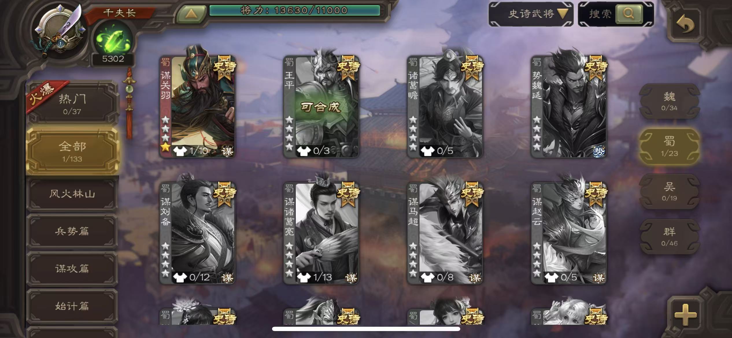 商品描述:千夫70宝珠谋关羽5000将魂63招募令三卡