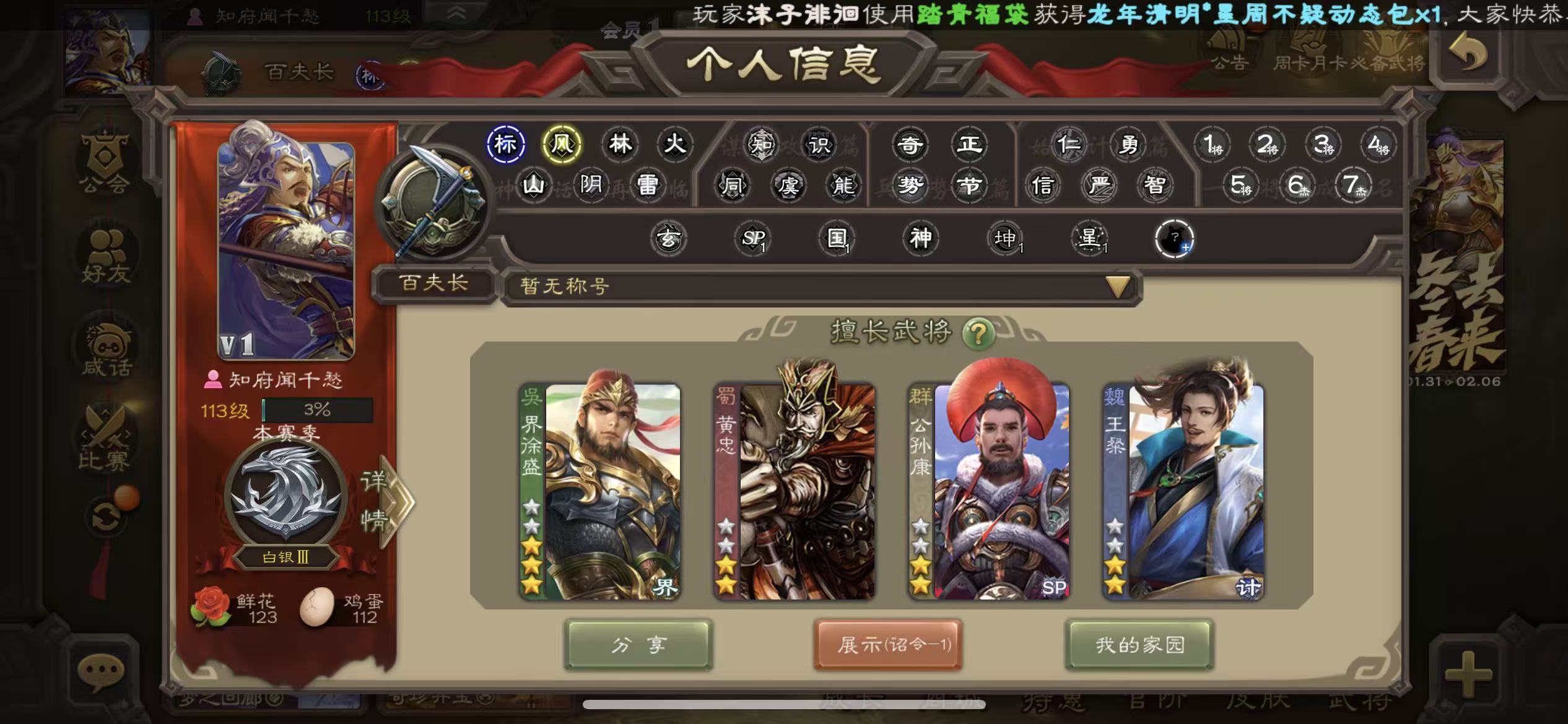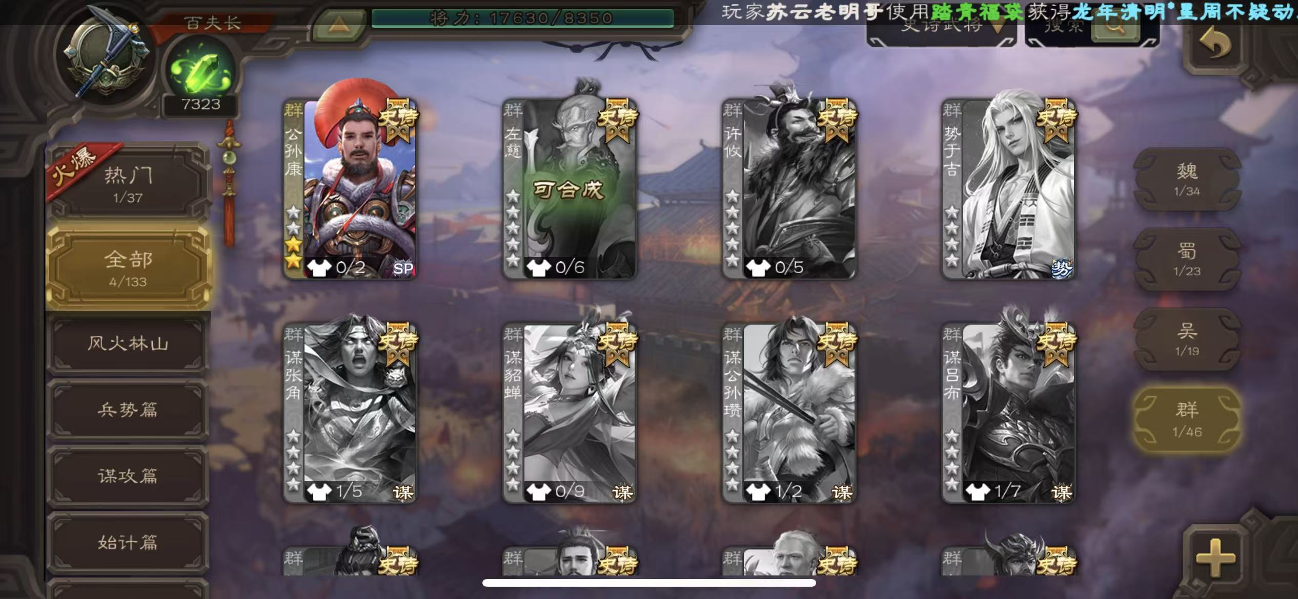 商品描述:百夫长4史诗大宝界徐盛7300将魂7.1万羽毛135招募令三卡