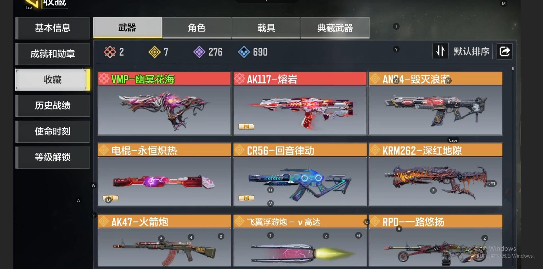 商品描述:[16496720]389级 2神话 6传说 276史诗 段位无 可二次 可修改实名 【神话枪械】VMP-幽冥花海,AK117-熔岩【传说枪械】RPD-一路悠扬,电棍-永恒炽热,CR56-回音律动,AK47-火箭炮,KRM262-深红地隙,AN94-毁灭浪潮