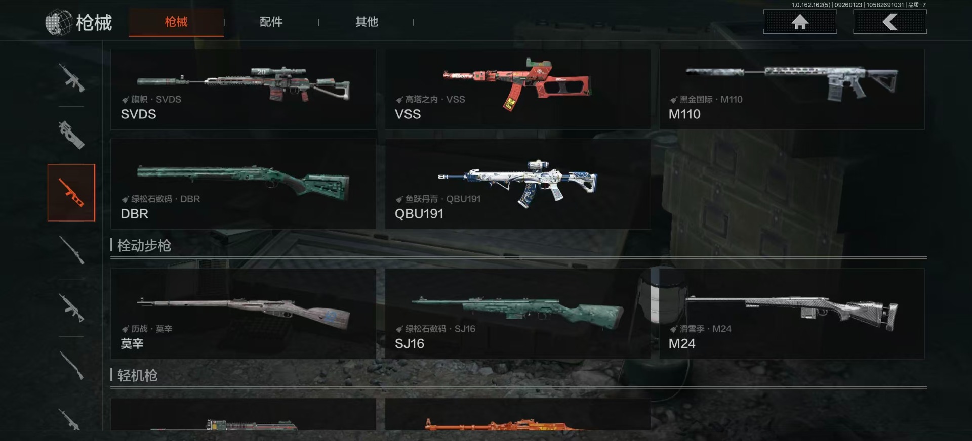 库存价值13.7 1近战武器 7金枪皮 可修改实名 【柯恩币数量】:1848【近战武器】:下弦月【金色枪皮】:告丧夜曲·AUG,旗帜·AEK,棱光裂变·QBU191,告丧夜曲·AR57,旧王圣谕·QBZ191,旧王圣谕·VSS,战术大师·AK102【紫色枪皮】:旗帜·SVDS,棱光裂变·ACE31,棱光裂变·AK74N,棱光裂变·AK102,棱光裂变·AKM,最后防线·AEK,禁止访问·UMP45,北国内卫·AN94,骑士之剑·SJ16,竞技·AUG,炎夏浪花·H416,快乐游戏·M110,典礼武备·M249,典礼武备·14,典礼武备·GROZA,猩红羽翼·VSS,无声暗月·AR57,竞技·M4A1,逆火·MDR,极恶·AUG,湖冰倒影·MP5,缟兵玄墨·MPX,07式林地迷彩·QBZ191,轰炸·AX50,娜迦·RPK16,涂绘猎人·AR57【角色装扮(紫)】:都市夜影套装