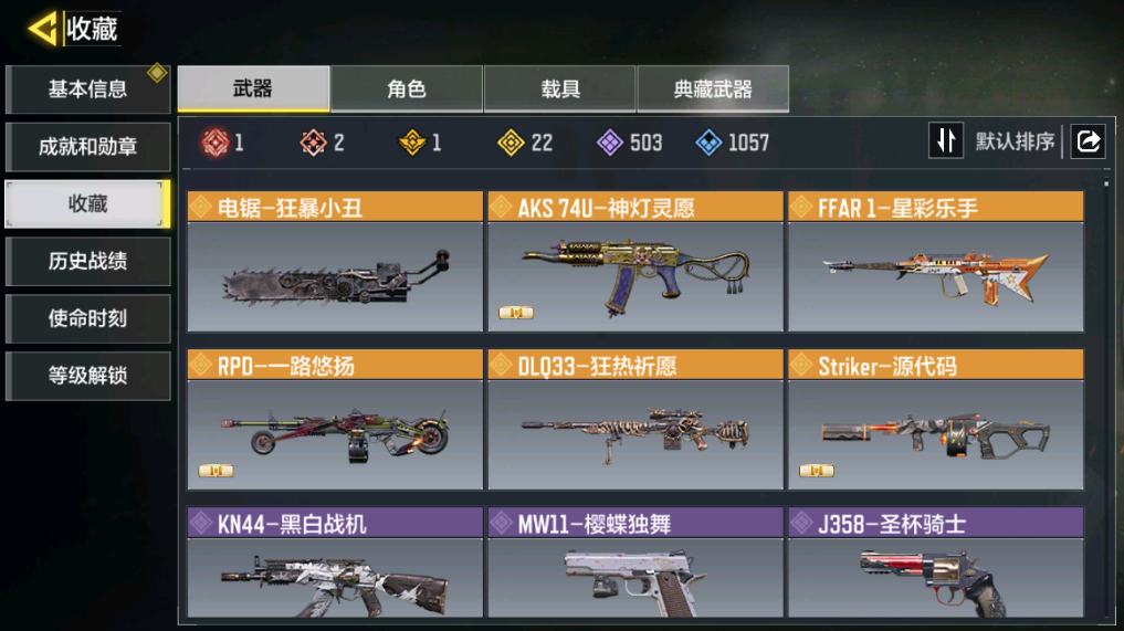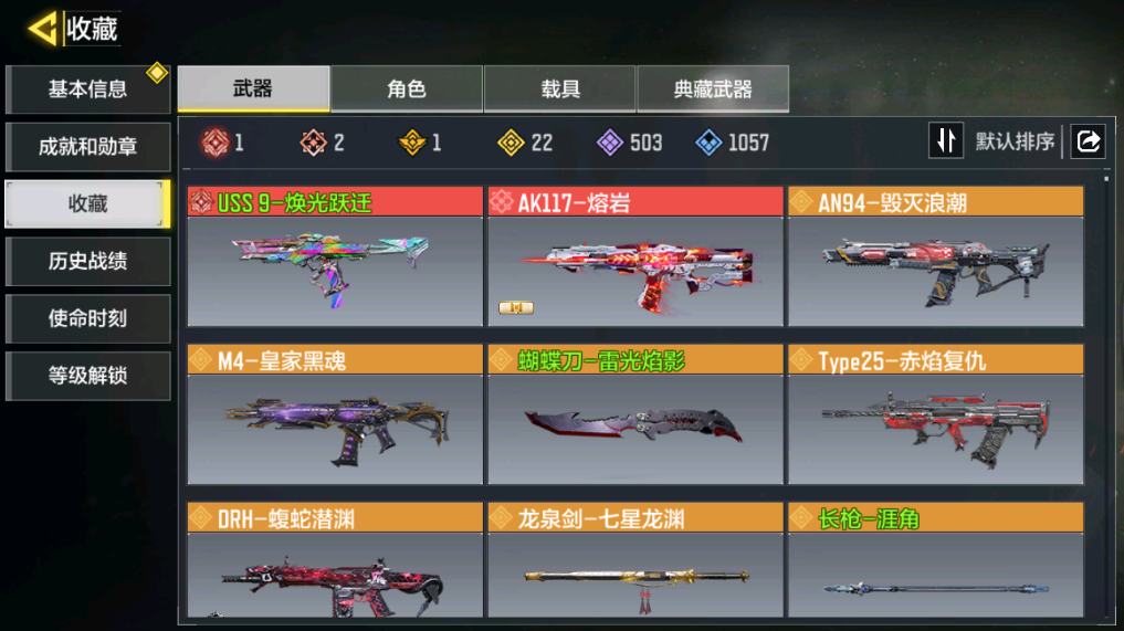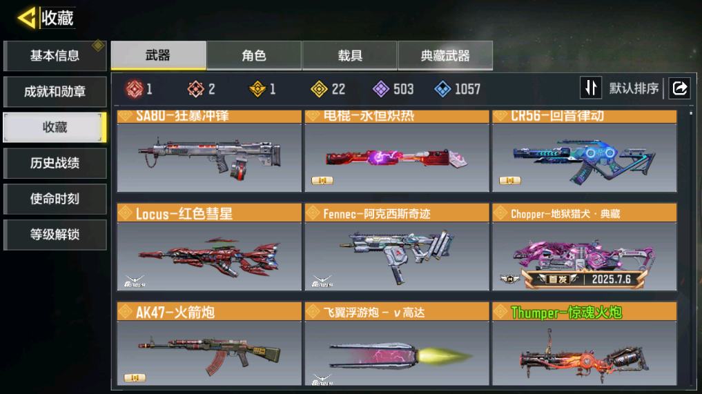 [16477398]H6744有二次 安卓Q-段位黄金 378级 【2神话】 Type 19-丹青万壑 5级 Oden-神圣惩戒 1级 【传说】 HDR-狂笑终章 电棍-永恒炽热 CR56-回音律动 Locus-红色彗星 AK47-火箭炮 飞翼浮游炮-高达 【153史诗309普通武器46角色28载具】