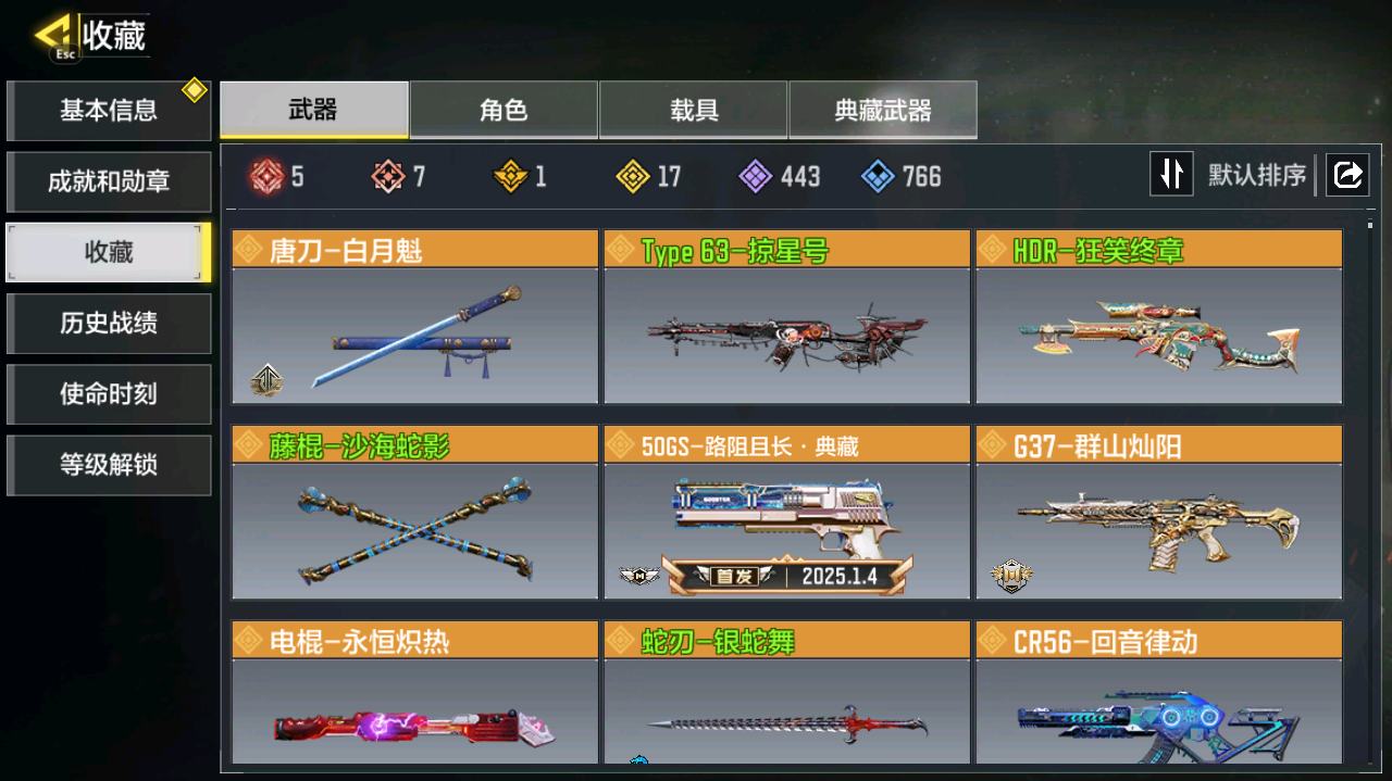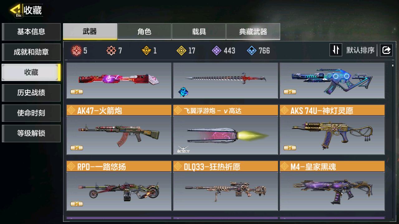 [16477398]H6744有二次 安卓Q-段位黄金 378级 【2神话】 Type 19-丹青万壑 5级 Oden-神圣惩戒 1级 【传说】 HDR-狂笑终章 电棍-永恒炽热 CR56-回音律动 Locus-红色彗星 AK47-火箭炮 飞翼浮游炮-高达 【153史诗309普通武器46角色28载具】