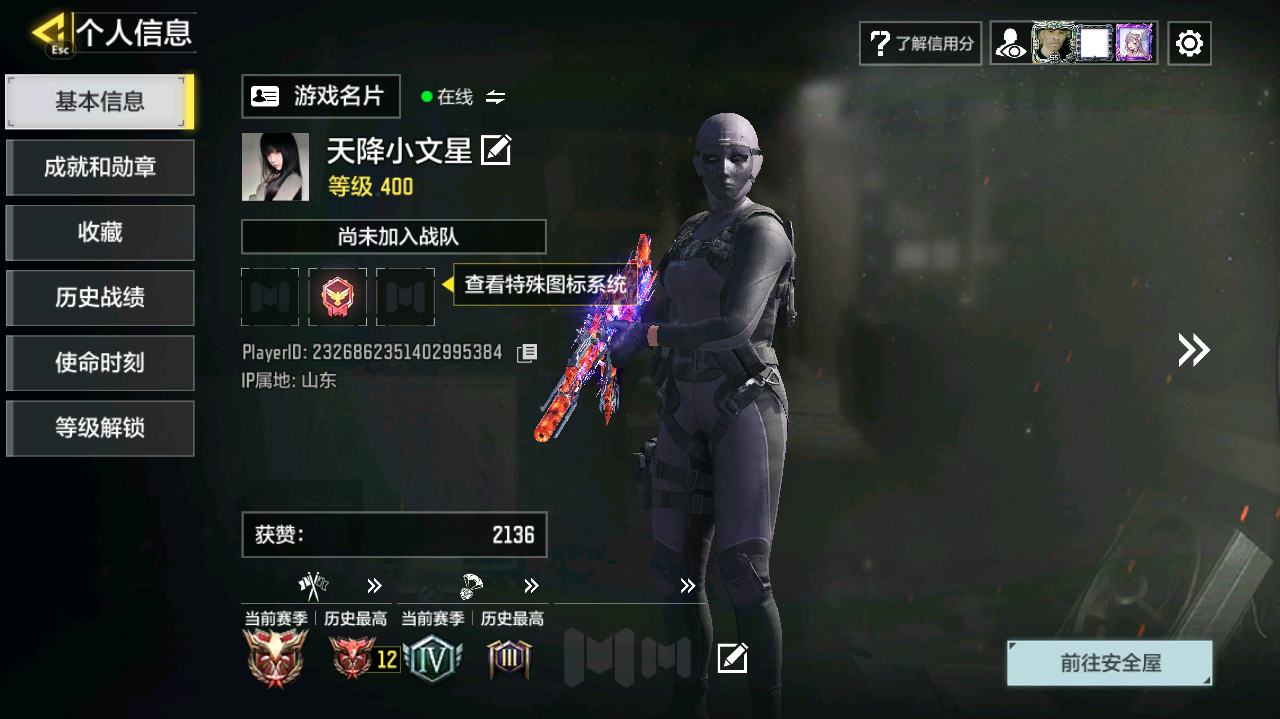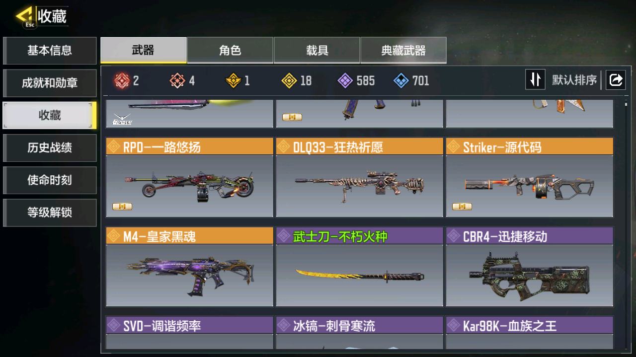 [16477398]H6744有二次 安卓Q-段位黄金 378级 【2神话】 Type 19-丹青万壑 5级 Oden-神圣惩戒 1级 【传说】 HDR-狂笑终章 电棍-永恒炽热 CR56-回音律动 Locus-红色彗星 AK47-火箭炮 飞翼浮游炮-高达 【153史诗309普通武器46角色28载具】