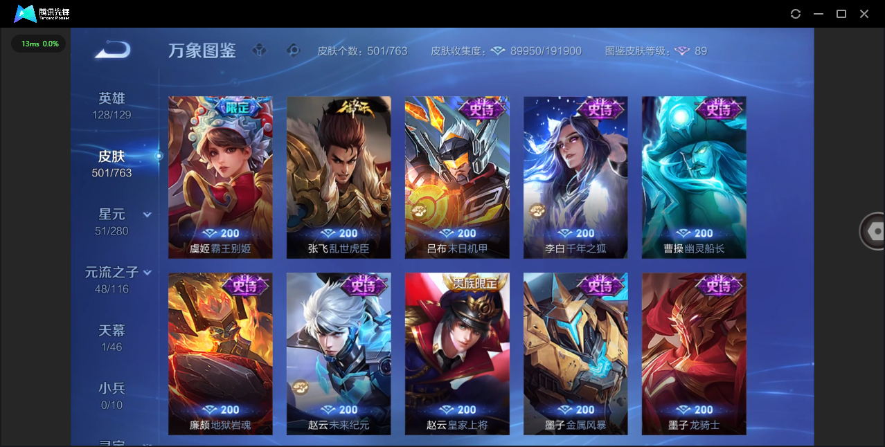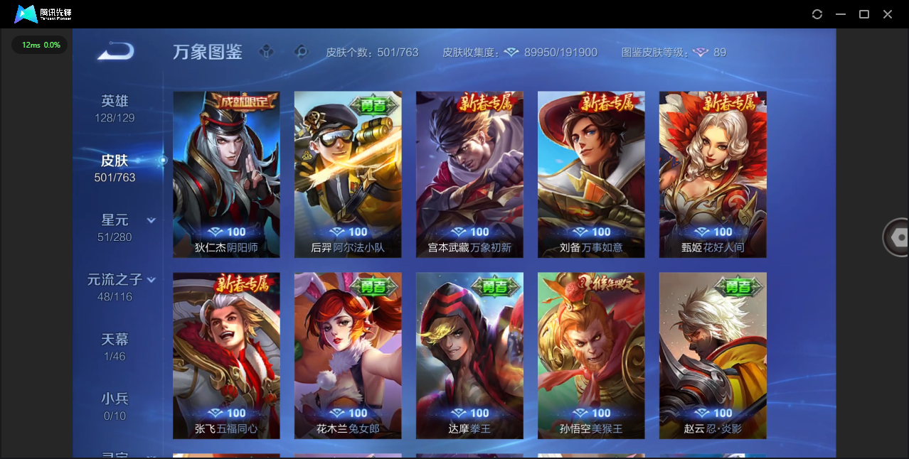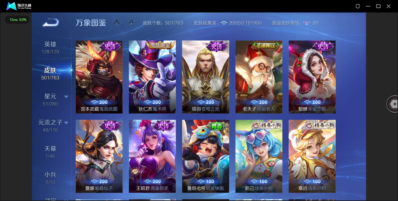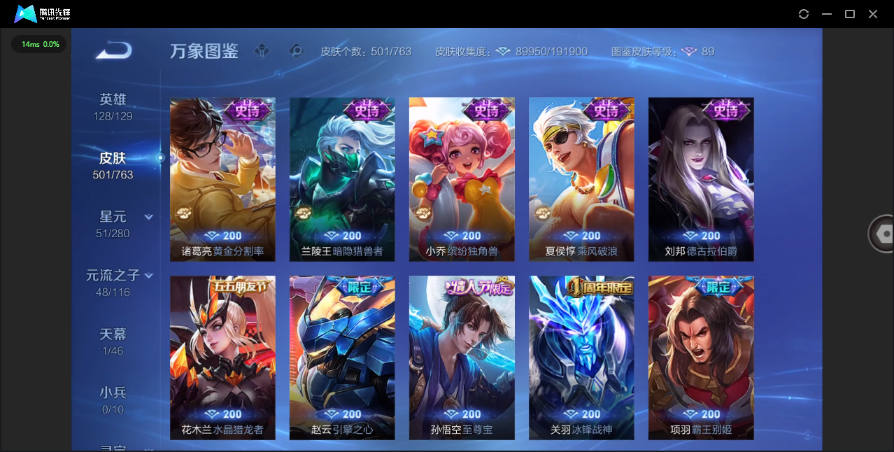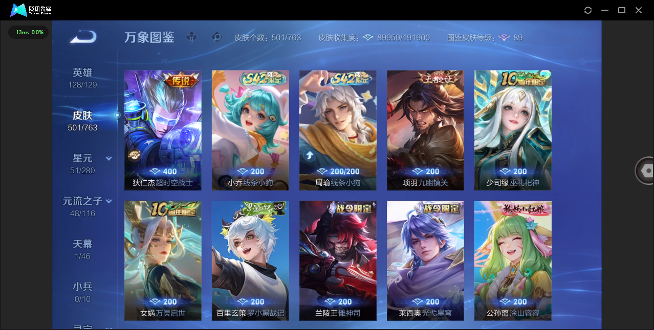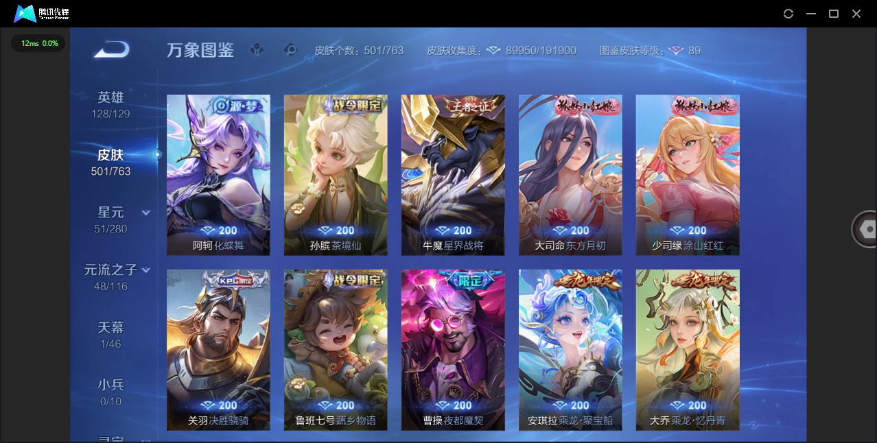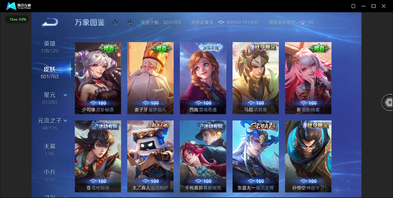 【QQ(安卓)】贵族0-贵族积分0万-0英雄-0皮肤 【抢先服】2万金币+回归150级铭文+改名卡