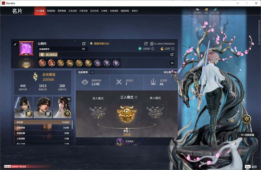 AK6512/steam端游/可换绑/三人段位陨星5/9红/279金/声望12/帝星/龙雀/狼主/悍虎斩/天罚/化生明王/熛怒炼火/执明神君/流金晓锦/自知/过江龙/仲夏霜华/半夏晚风/监星尺/纳福/听涛/建木/仙舞/凝冰魄/九阴圣女/唐三/染烟/清雅少女/怒浪/金戈止/麟鹿大铠/找回包赔/