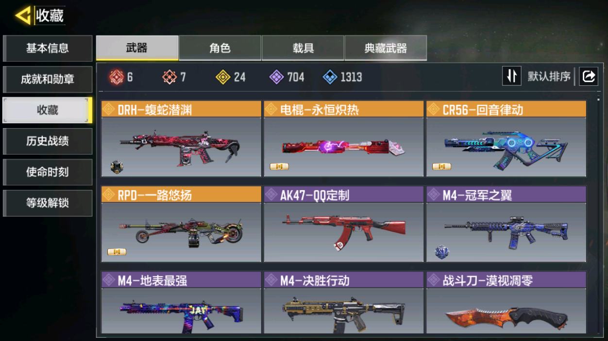 [16477398]H6744有二次 安卓Q-段位黄金 378级 【2神话】 Type 19-丹青万壑 5级 Oden-神圣惩戒 1级 【传说】 HDR-狂笑终章 电棍-永恒炽热 CR56-回音律动 Locus-红色彗星 AK47-火箭炮 飞翼浮游炮-高达 【153史诗309普通武器46角色28载具】