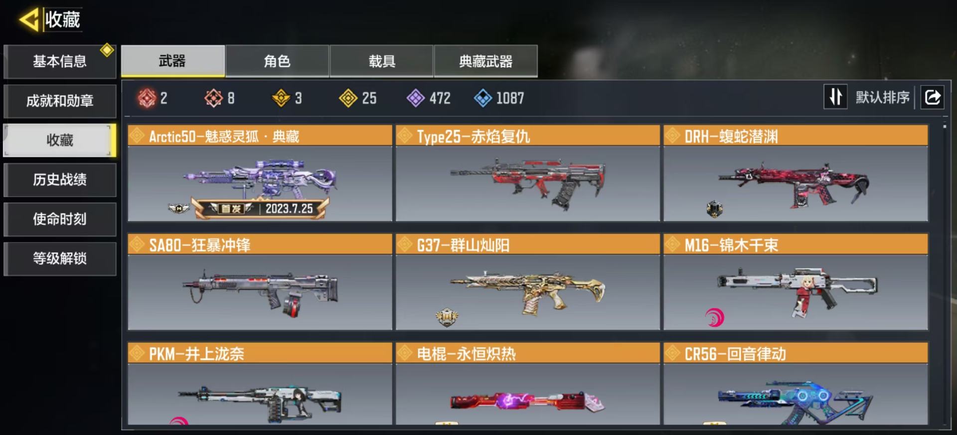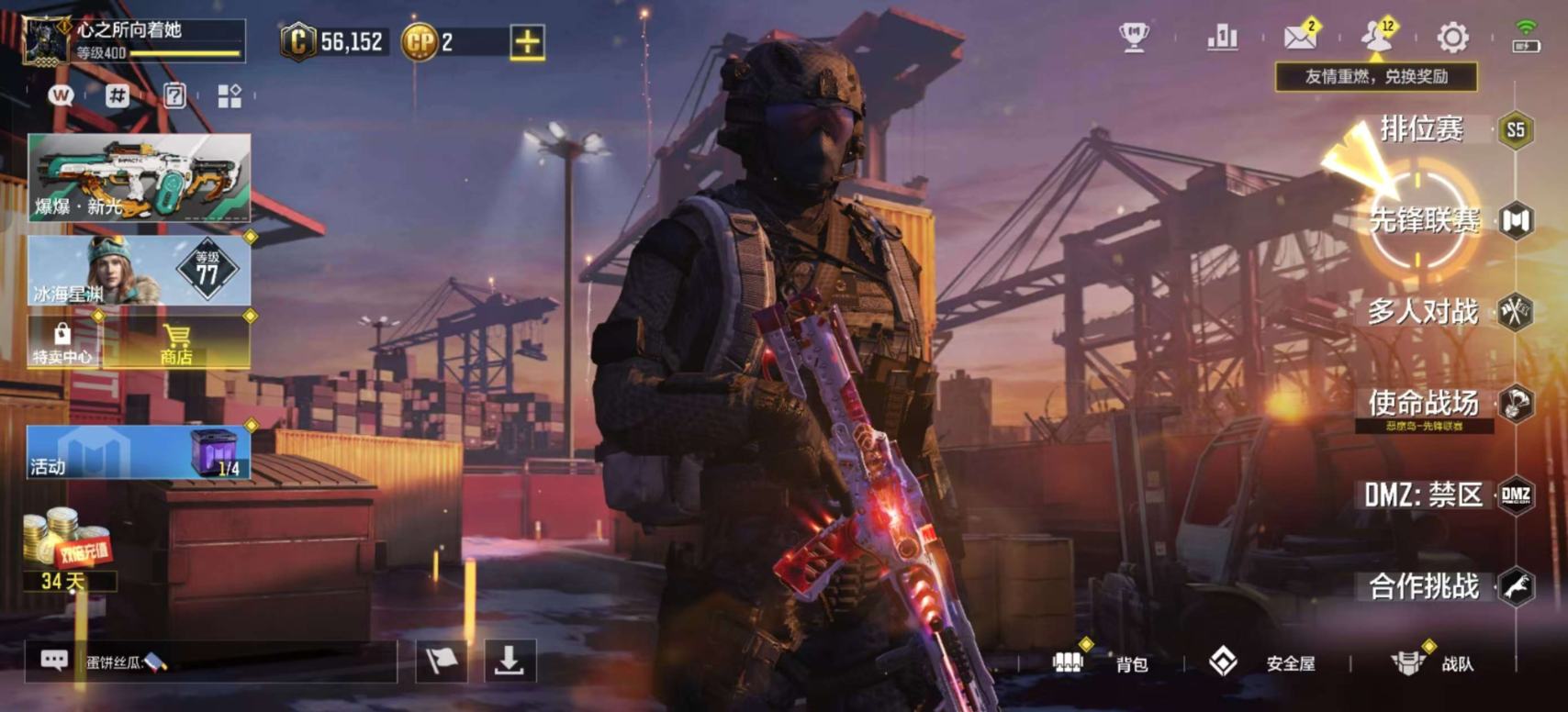 [16477398]H6744有二次 安卓Q-段位黄金 378级 【2神话】 Type 19-丹青万壑 5级 Oden-神圣惩戒 1级 【传说】 HDR-狂笑终章 电棍-永恒炽热 CR56-回音律动 Locus-红色彗星 AK47-火箭炮 飞翼浮游炮-高达 【153史诗309普通武器46角色28载具】