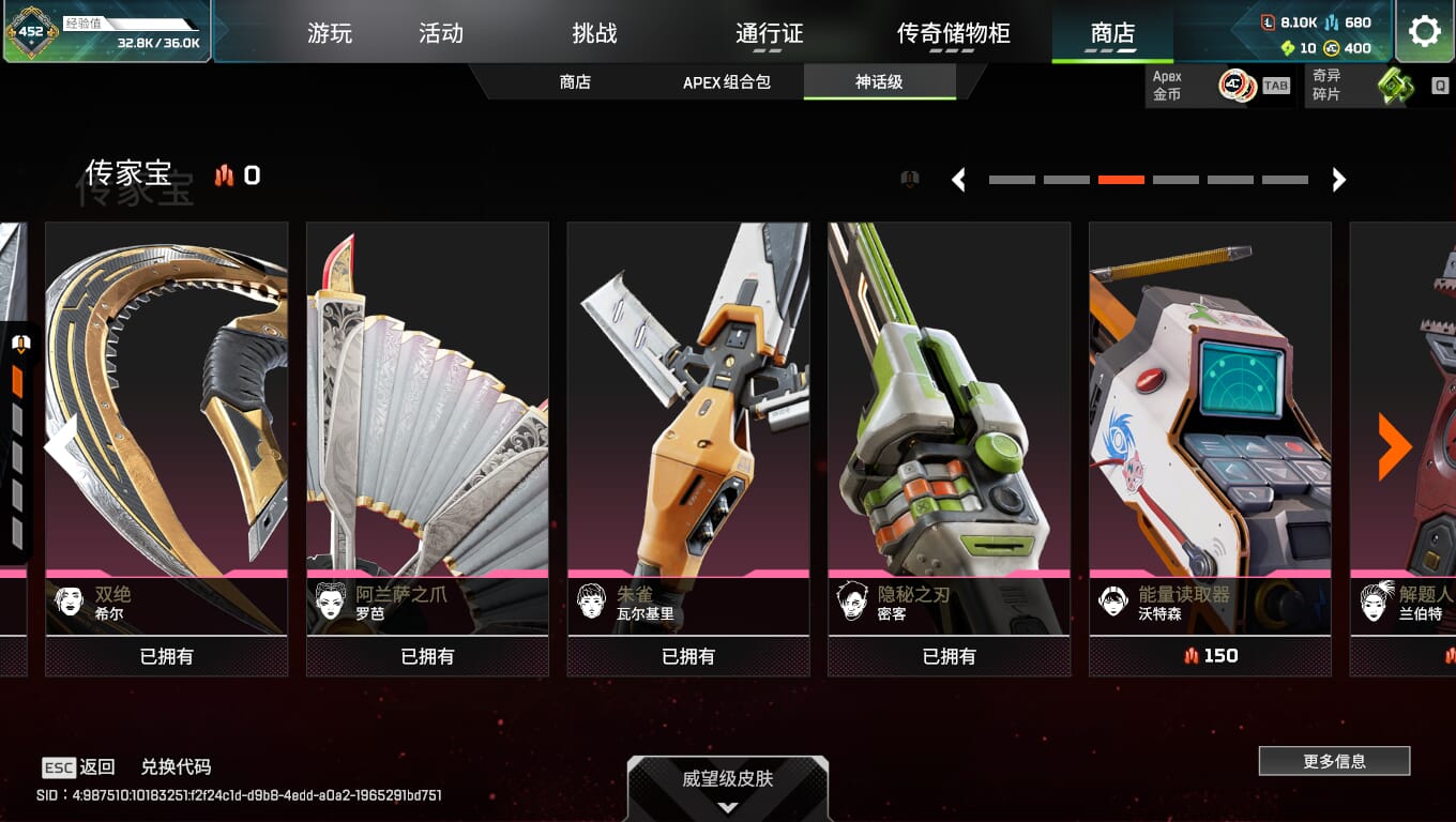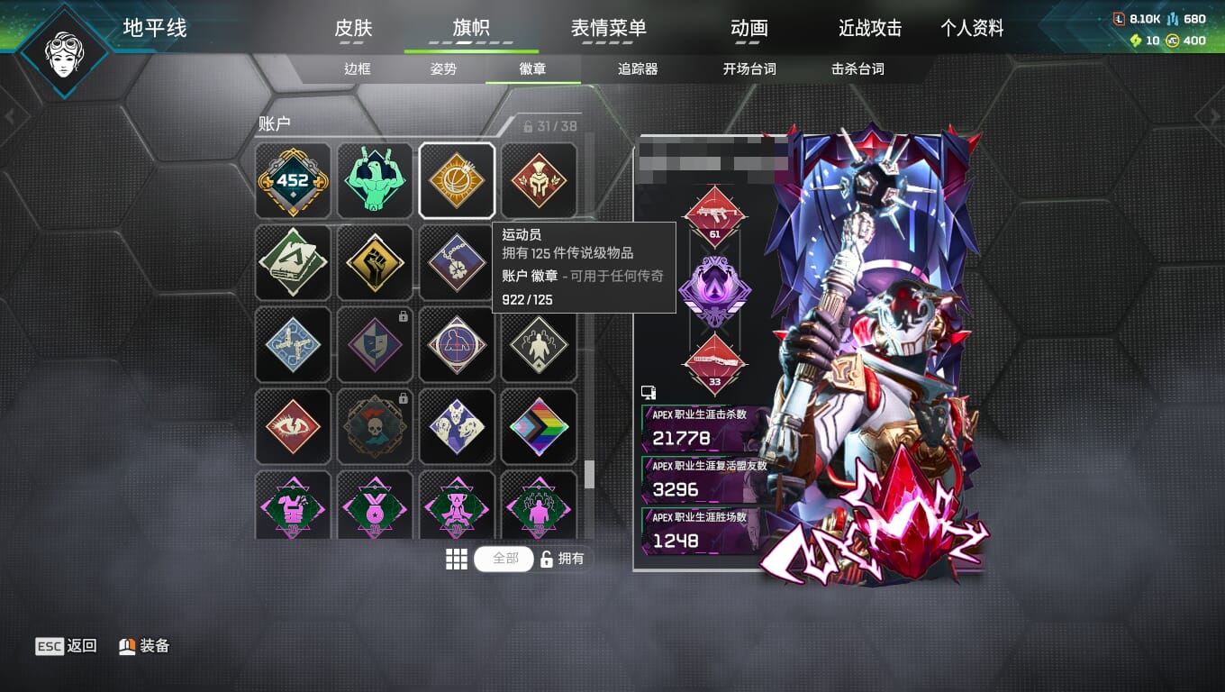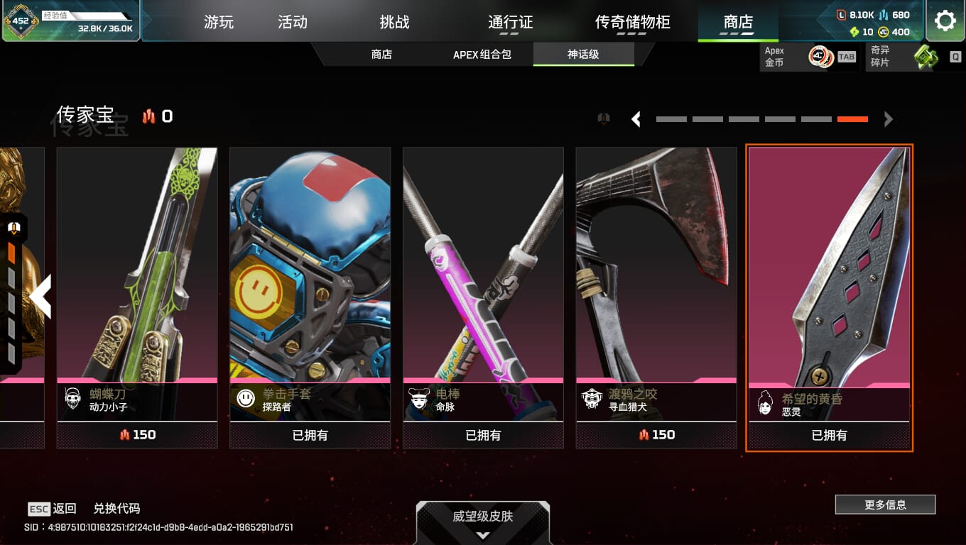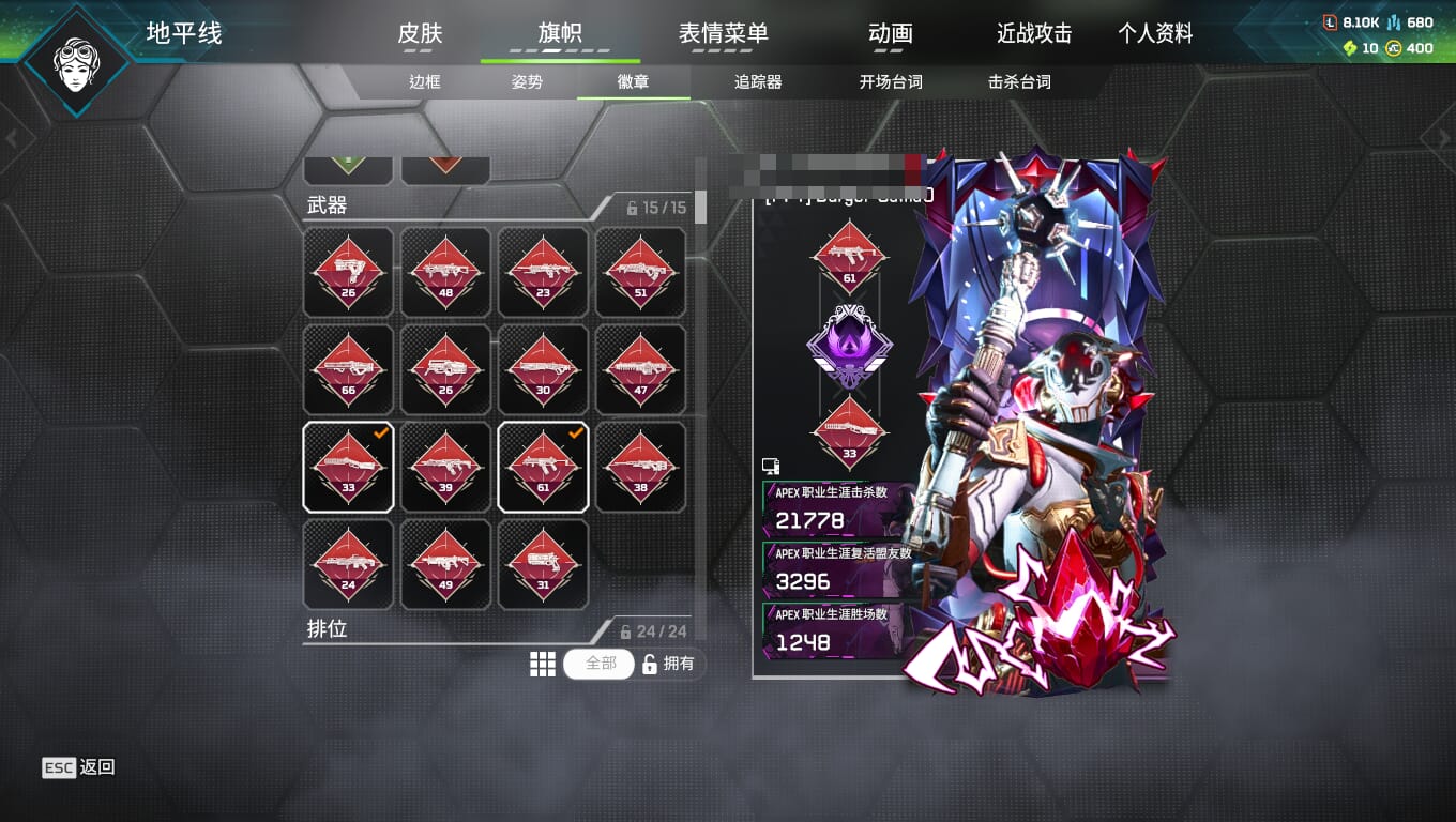 GK6682/【ALGS参赛者徽章】11传/3威望/地平线重力深渊/艾许最强连结/恶灵希望黎明/密客隐秘之刃/亡灵死亡曲线/班加罗尔冷钢/动力小子蝴蝶刀/探路者拳击手套/寻血猎犬渡鸦之咬/恶灵希望的黄昏/APEX蔓延/2级/APEX虚空转移/3级/APEX猎手/3级/718金皮/【排位】3大师/7钻石徽章/9/12/13/15/16/20/24赛季满通/22/23/25下赛季满【枪皮】