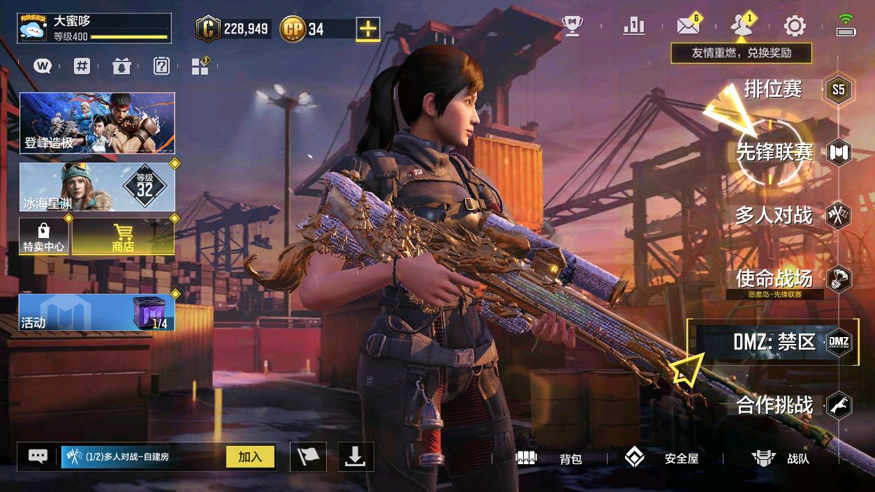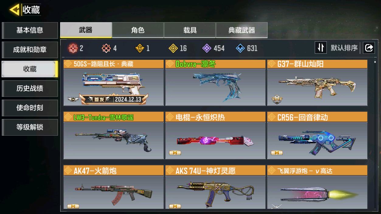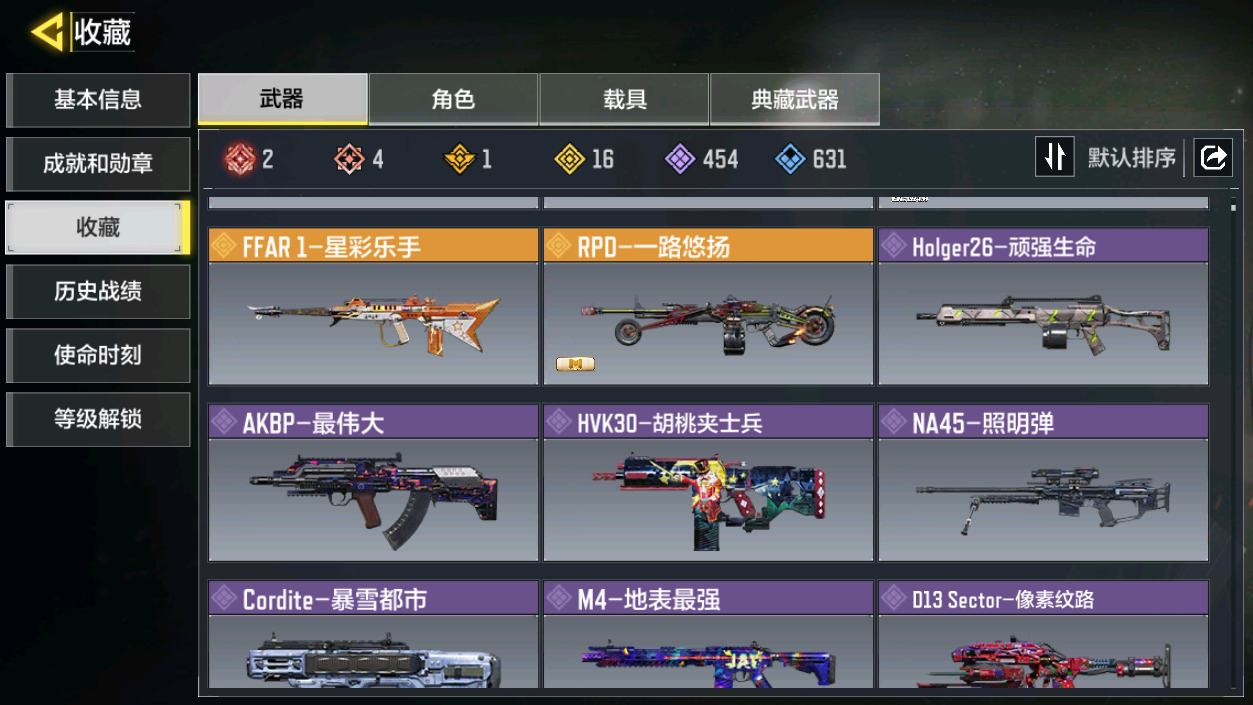 [16477398]H6744有二次 安卓Q-段位黄金 378级 【2神话】 Type 19-丹青万壑 5级 Oden-神圣惩戒 1级 【传说】 HDR-狂笑终章 电棍-永恒炽热 CR56-回音律动 Locus-红色彗星 AK47-火箭炮 飞翼浮游炮-高达 【153史诗309普通武器46角色28载具】