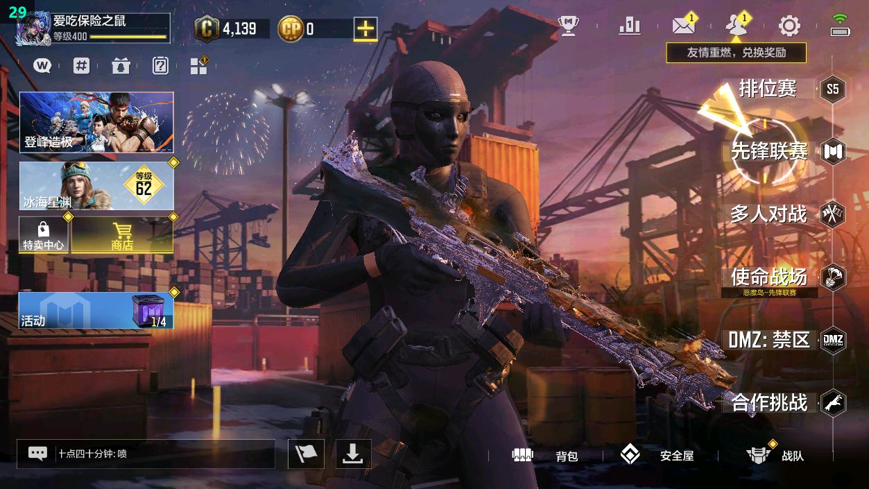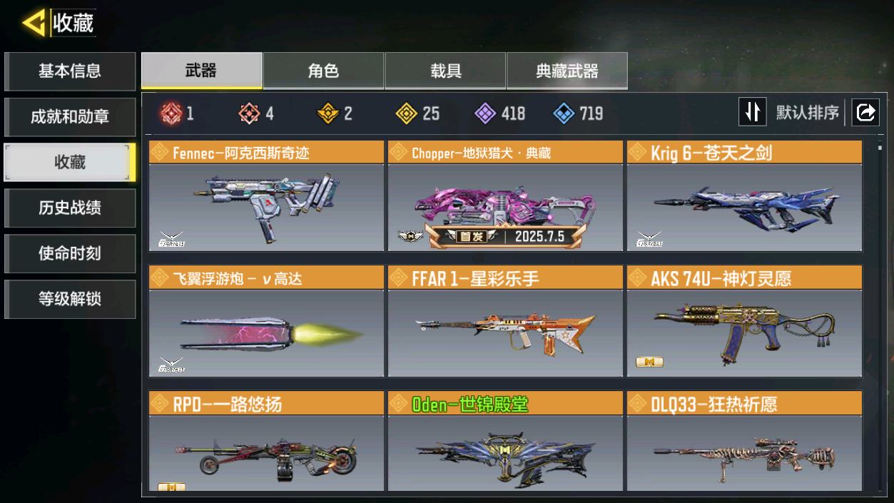 [16477398]H6744有二次 安卓Q-段位黄金 378级 【2神话】 Type 19-丹青万壑 5级 Oden-神圣惩戒 1级 【传说】 HDR-狂笑终章 电棍-永恒炽热 CR56-回音律动 Locus-红色彗星 AK47-火箭炮 飞翼浮游炮-高达 【153史诗309普通武器46角色28载具】