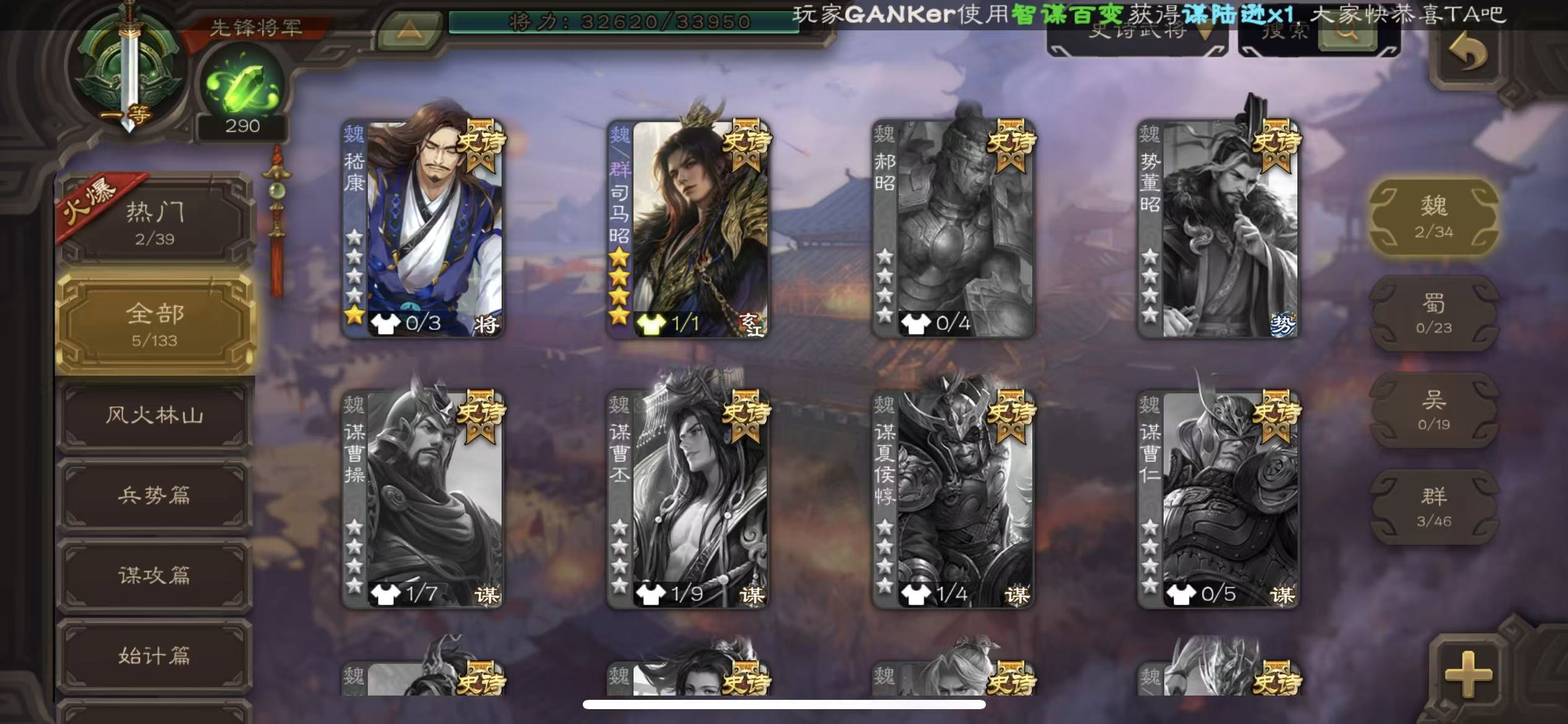 先锋界沮授花花三卡先锋动司马昭 动神吕布 回廊郭嘉 嵇康 小学云 界孙权 带16天月卡 三卡豆子充足
