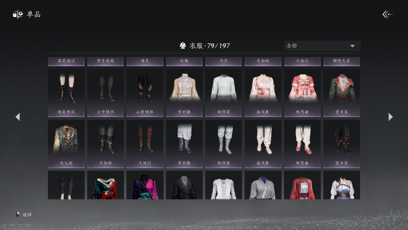 【高战力男号 绝版套 瑞鹤仙 稀有栖彤霞 武学 万剑归宗 带一个未用八音 螃蟹YEXNQ6160】 风华值28132 武林造诣(鹅)36148 已用八音窍数量2 未用八音窍数量1 等级100 角色性别【文本】男 【绝境】 【无换绑CD】 【未绑定或可换绑】 【不支持人脸包赔】 【男】 【无】 【是】 【是】 【否】 稀有套装5 稀有发型1 稀有武学奇术1 套装2 武器外观3 坐骑5 稀有套装:瑞鹤仙,葬花吟,问春何苦,乌纱红漪,晏平生; 稀有发型:栖彤霞; 稀有武学奇术:万剑归宗; 套装:蝎心蛟影,蜀戏春; 武器外观:断鳞光,木棍,霜枫诀; 坐骑:白义,盗骊,飞毛腿,飒露子,仁道驴;