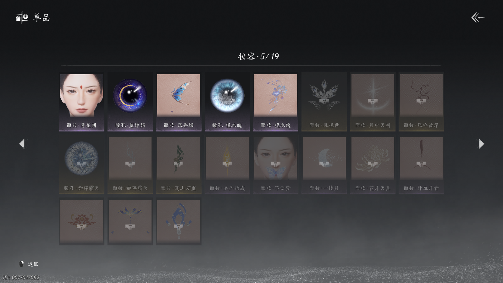 【月中带鹊踏枝头小号带龙战特效】 风华值54110 武林造诣(鹅)36290 已用八音窍数量4 未用八音窍数量0 等级100 角色性别【文本】男 【绝境】 【无换绑CD】 【未绑定或可换绑】 【未注册】 【不支持人脸包赔】 【男】 【无】 【是】 【是】 稀有套装3 稀有发型3 稀有武学奇术1 稀有披挂1 套装53 武器外观20 武学奇术4 坐骑6 其他武器外观20 稀有套装:问春何苦,晏平生,月中天阙; 稀有发型:鹊桥仙,锦瑟华年,重明; 稀有武学奇术:龙战玄黄; 稀有披挂:火燎三关; 套装:云中锦书,山君啸林,青玉案,剑影藏心,浣溪沙,鹊踏枝,贺新词,雁还乡,红尘书,霜寒天泉,火宅三更,花问春言,芳时歇,午风清,南风熏,相思曲,望乡客,风入画,一心三藏,逐红花,遥夜行,江湖客,雨停荷,舞花间,松花玉兰,花月天真,上青云,骊山猎,螭骨,白龙,白衣修罗,纵横,青阳,射虎南山,丹雀,青草原,梦寻虎跑,鲤传尺素,雪狸儿,落花闻诏,惜芳时,云遥鹤影,清河强者,金池鲤,翠羽顾,梨花泪,寂夜铃,句芒,蜀戏春,岁时安,驰走西风,月如银,百花应诏; 武器外观:月中诗,飒陌耶,木棍,葱葱那年,大满贯,出竹意,霜枫寒,霜枫诀,霜枫横,霜枫愁,战鳞光,霜枫尽,霜枫舞,断鳞光,翦鳞光,舞鳞光,斩鳞光,衔鳞光,长安不见,卷鳞光; 武学奇术:墨泼风,月锁天罗,御帚飞鸡,金穗丰穰; 坐骑:飞毛腿,哈是骑,白义,琼林客,烬花舆,沙里瓦; 其他武器外观:月中诗,粽不粽,木棍,葱葱那年,大满贯,出竹意,霜枫寒,霜枫诀,霜枫横,霜枫愁,战鳞光,霜枫尽,霜枫舞,断鳞光,翦鳞光,舞鳞光,斩鳞光,衔鳞光,长安不见,卷鳞光;WQY-043643503 【热门发型云深归处,栖彤霞,5套258时装,背包一颗绑定未用八音,心法6666】 风华值28378 武林造诣(鹅)35137 已用八音窍数量2 未用八音窍数量1 等级100 角色等级100 角色性别【文本】男 亮点热门发型云深归处,栖彤霞,5套258时装,背包一颗绑定未用八音,心法6666 【无换绑CD】 【绝境】 【无冷却】 【未绑定或可换绑】 【密保手机】 【未注册】 【不支持人脸包赔】 【是】 【男】 【无】 【手机帐号】 【网易手机账号】 【ios】 【是】 【是】 【未拥有】 【已知晓】 【自己上传】 【否】