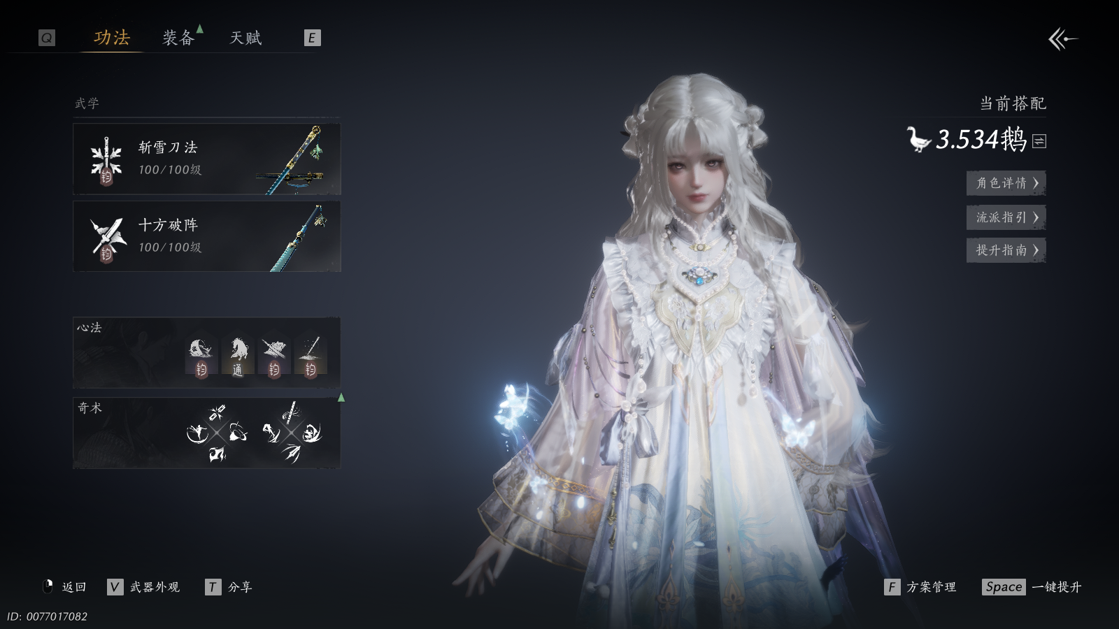 【澄心不染金阙翼回配饰,可封装5金伞,幽灵速坐骑,如碎霜天,青丘千岁,月中天阙,瑞鹤仙,将星入命,弄清影,霓裳徊天武学,鳞跃天倾黄龙断戟奇术,4套258时装,心法6666】 风华值73492 武林造诣(鹅)35029 已用八音窍数量12 未用八音窍数量0 等级100 角色性别【文本】女 【绝境】 【无换绑CD】 【未绑定或可换绑】 【未注册】 【不支持人脸包赔】 【女】 【无】 【ios】 【是】 【是】 【否】 稀有套装5 稀有发型1 稀有武器外观1 稀有武学奇术2 稀有坐骑1 套装4 稀有套装:将星入命,瑞鹤仙,如碎霜天,月中天阙,青丘千岁; 稀有发型:弄清影; 稀有武器外观:藏音·北溟有鱼(五金); 稀有武学奇术:黄龙断戟,鳞跃天倾; 稀有坐骑:幽灵速; 套装:青草原,花月天真,夜郎幽问,金滟玉团;