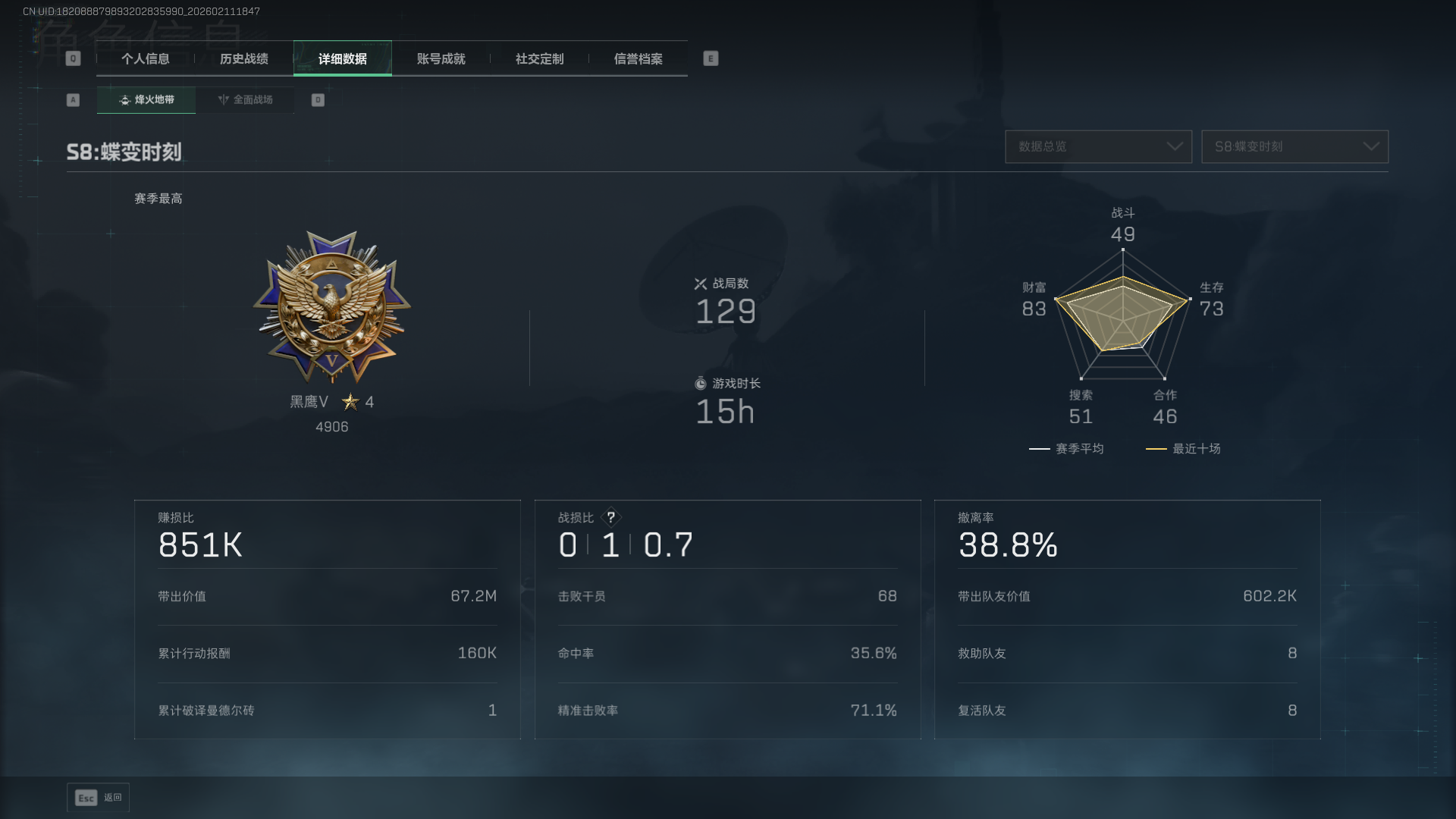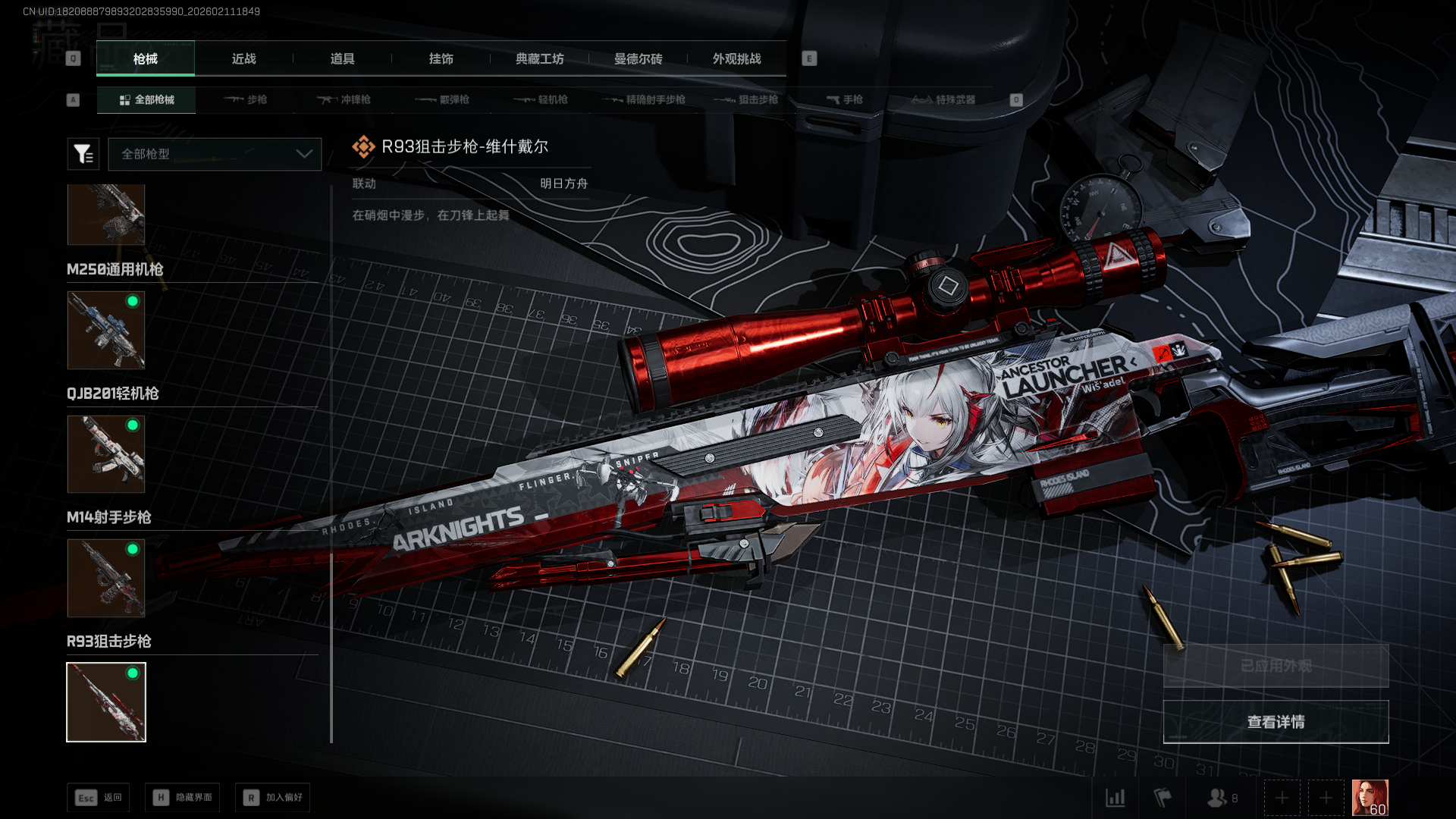 N6449/哈夫币/16270W/武器皮肤175/烽火60级/黑鹰Ⅲ/战场/暂无段位/【货币】40三角币/250三角卷/【安全箱】进阶安全箱/【特勤处等级】仓库LV.7/靶场LV.5/训练中心LV.7/【捆绑包6】北极星捆绑包/鹅鸭杀捆绑包/蚀金玫瑰捆绑包/特斯拉线圈捆绑包/捞点薯条捆绑包/蝮蛇捆绑包/【干员皮肤3】红狼蚀金玫瑰/蜂医送葬人无题密令/露娜金牌射手/【近战皮肤】近战武器-北极星/近战武器-黑鹰/【步枪皮肤】M4A1突击步枪-阿米娅/M4A1突击步枪-蚀金玫瑰/ASh-12战斗步枪-鹅鸭杀/SG552突击步枪-运动员/AK-12突击步枪-特斯拉线圈/SCAR-H战斗步枪-启航/G3战斗步枪-骑士/CAR-15突击步枪-阿米娅/腾龙突击步枪-捞点薯条/K437突击步枪-北极星/AUG突击步枪-蝮蛇/M7战斗步枪-百步穿杨/SG552突击步枪-哈夫克警备/SCAR-H战斗步枪-囚徒/G3战斗步枪-流沙送葬/PTR-32突击步枪-OldHabits/ASVal突击步枪-典狱官/ASVal突击步枪-百步穿杨/腾龙突击步枪-无垢/【冲锋枪皮肤】UZI冲锋枪-特斯拉线圈/SR-3M紧凑突击步枪-特斯拉线圈/勇士冲锋枪-能天使-午夜邮差/QCQ171冲锋枪-北极星/QCQ171冲锋枪-鹅鸭杀/MP5冲锋枪-战术竞备/MP5冲锋枪-竞技风/P90冲锋枪-紧急戒备/Vector冲锋枪-百步穿杨/SR-3M紧凑突击步枪-荒野求生/SR-3M紧凑突击步枪-战术竞备/勇士冲锋枪-工业狂潮/MP7冲锋枪-无垢/MP7冲锋枪-守护者/【射手步枪皮肤】SVD狙击步枪-荒野求生/M14射手步枪-工业狂潮/PSG-1射手步枪-无垢/【狙击步枪皮肤】AWM狙击步枪-捞点薯条/SV-98狙击步枪-林中猎手/SV-98狙击步枪-囚徒/SV-98狙击步枪-猎鳄行动/M700狙击步枪-竞技风/M700狙击步枪-蝮蛇/M700狙击步枪-百步穿杨/AWM狙击步枪-无极限/AWM狙击步枪-流沙送葬/【霰弹枪皮肤】725双管霰弹枪-送葬人-无题密令/【轻机枪皮肤】M250通用机枪-骑士之心/QJB201轻机枪-鹅鸭杀/PKM通用机枪-蝮蛇/PKM通用机枪-荒野求生/M250通用机枪-囚徒/QJB201轻机枪-OldHabits/【手枪皮肤】93R-捞点薯条/沙漠之鹰-曙光/【复合弓皮肤】复合弓-黑-天际线/复合弓-守护者/【挂饰20】赤霄游龙/挂饰-蚀金玫瑰/挂饰-黑/挂饰-北极星/挂饰-龙门币/挂饰-特斯拉线圈/挂饰-阿米娅/挂饰-来点薯条/挂饰-晶石幻想/挂饰-大白鹅/挂饰-启程/挂饰-雪人/阿萨拉狙击兵/阿萨拉霰弹兵/诡影狙击兵/诡影喷火兵/暗行哨兵/崩岩重炮/【载具11】轮式突击炮-荣耀/M1A4坦克-哈夫克重工/轮式突击炮-巅峰竞赛/突击直升机-原始伪装/全地形车-森林迷彩/M1A4坦克-护林人/轮式突击炮-护林人/M1A4坦克-烟火2026/突击车-寒梅/轮式突击炮-烟火2026/侦察直升机-烟火2026/找回包赔