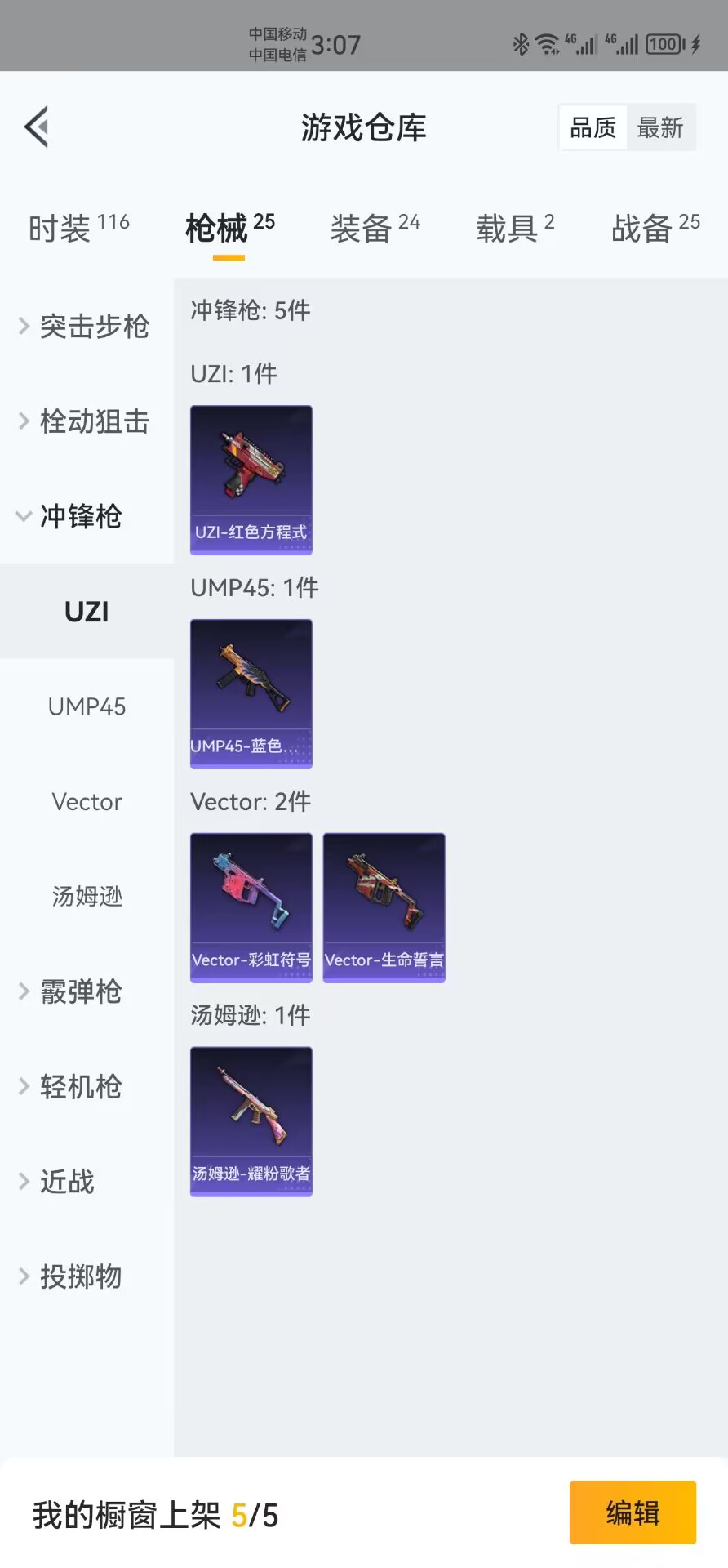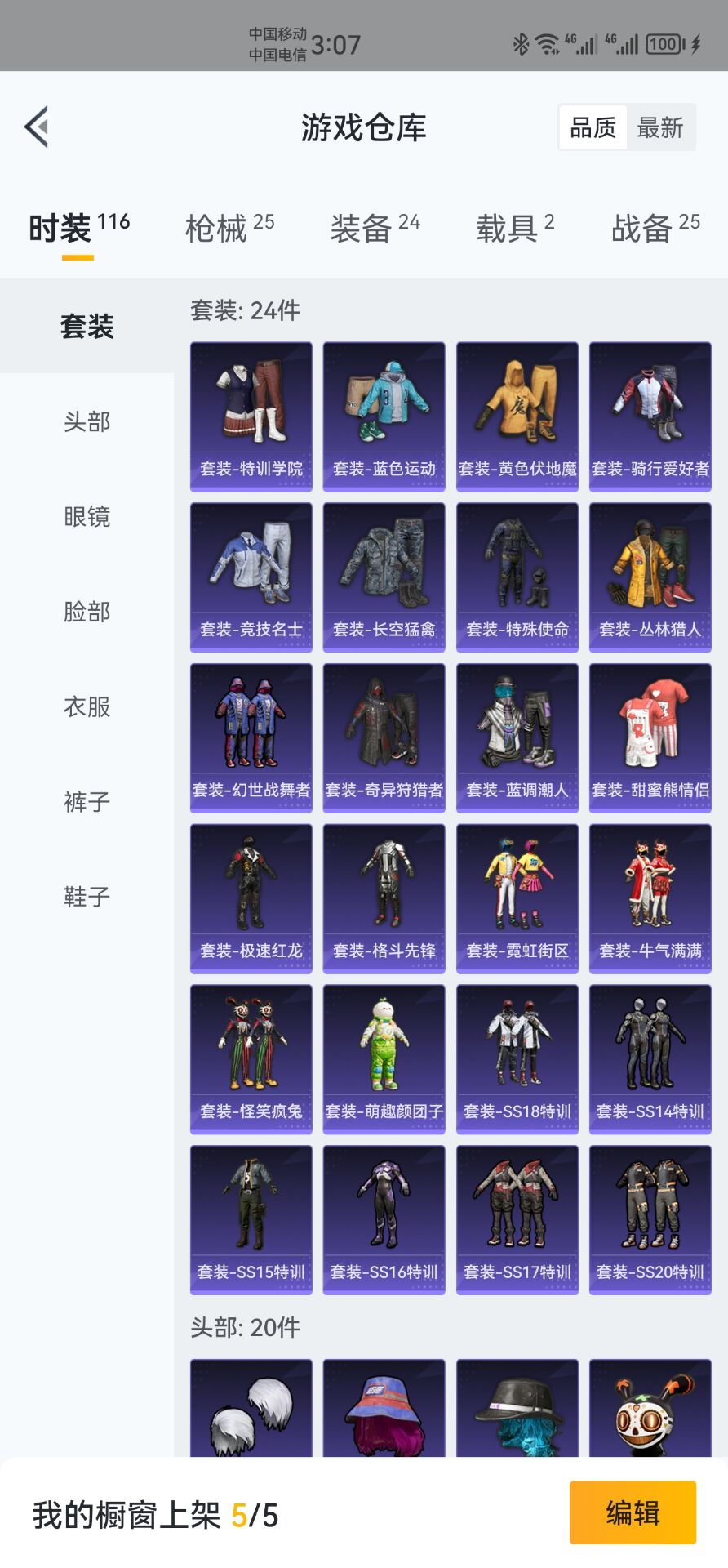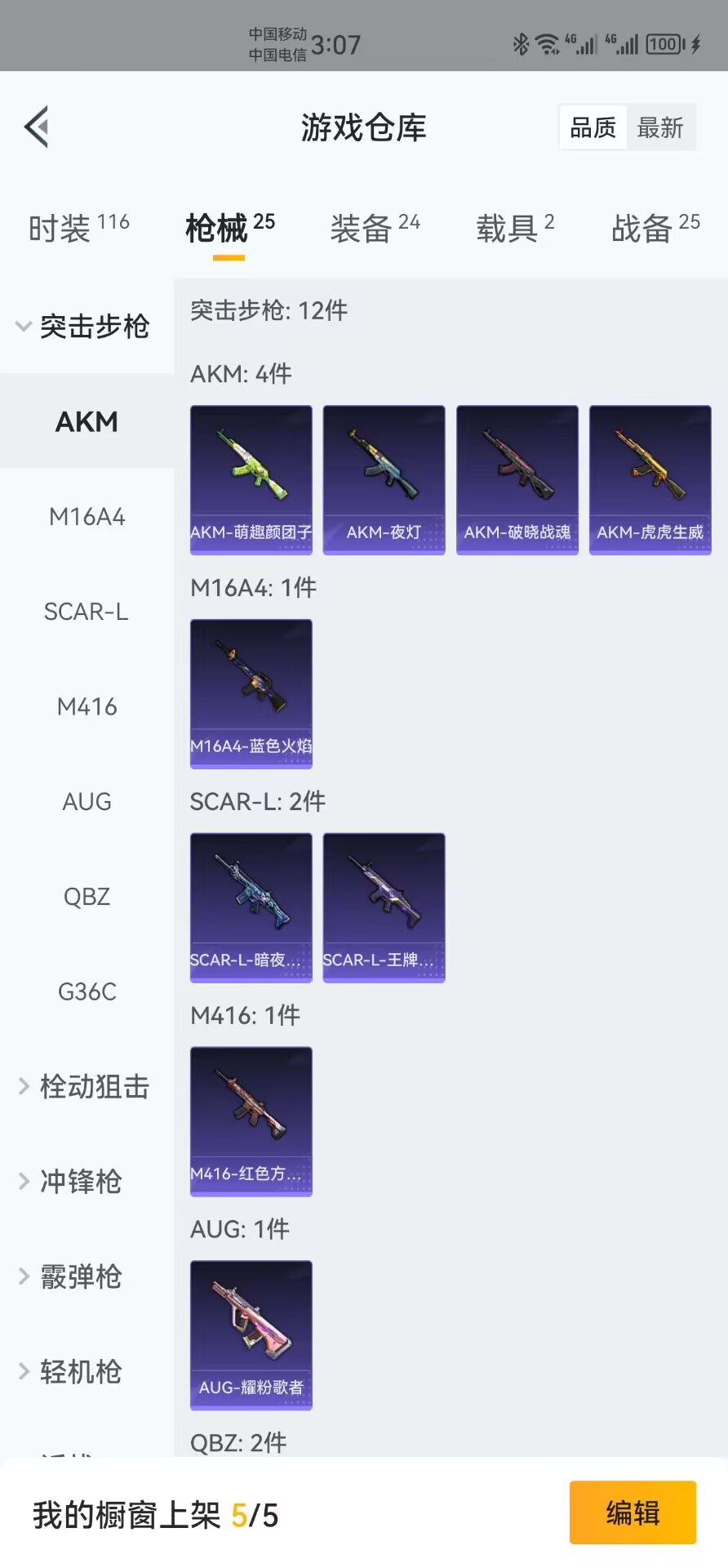 【安卓QQ】95套装-132枪皮-1载具 零号机款机体服 黄螳螂 SCAR-L-锦绣绵绵 团圆交子 瑞龙福将 极速红龙 黑色刀锋 M762-瑞龙福将【苹果QQ】122套装-159枪皮-0载具 奇异狩猎者 2号机款机体服 梦幻火箭 音爆索尼克 浪漫波比 M762-甜蜜誓约 M416-五爪金龙 UMP45-相思残雪 黄族统领飞行器 金曜白虎 新侠客行 街舞达人 街舞之王 仓鼠灰灰 团圆交子 瑞龙福将 摩登艾咪