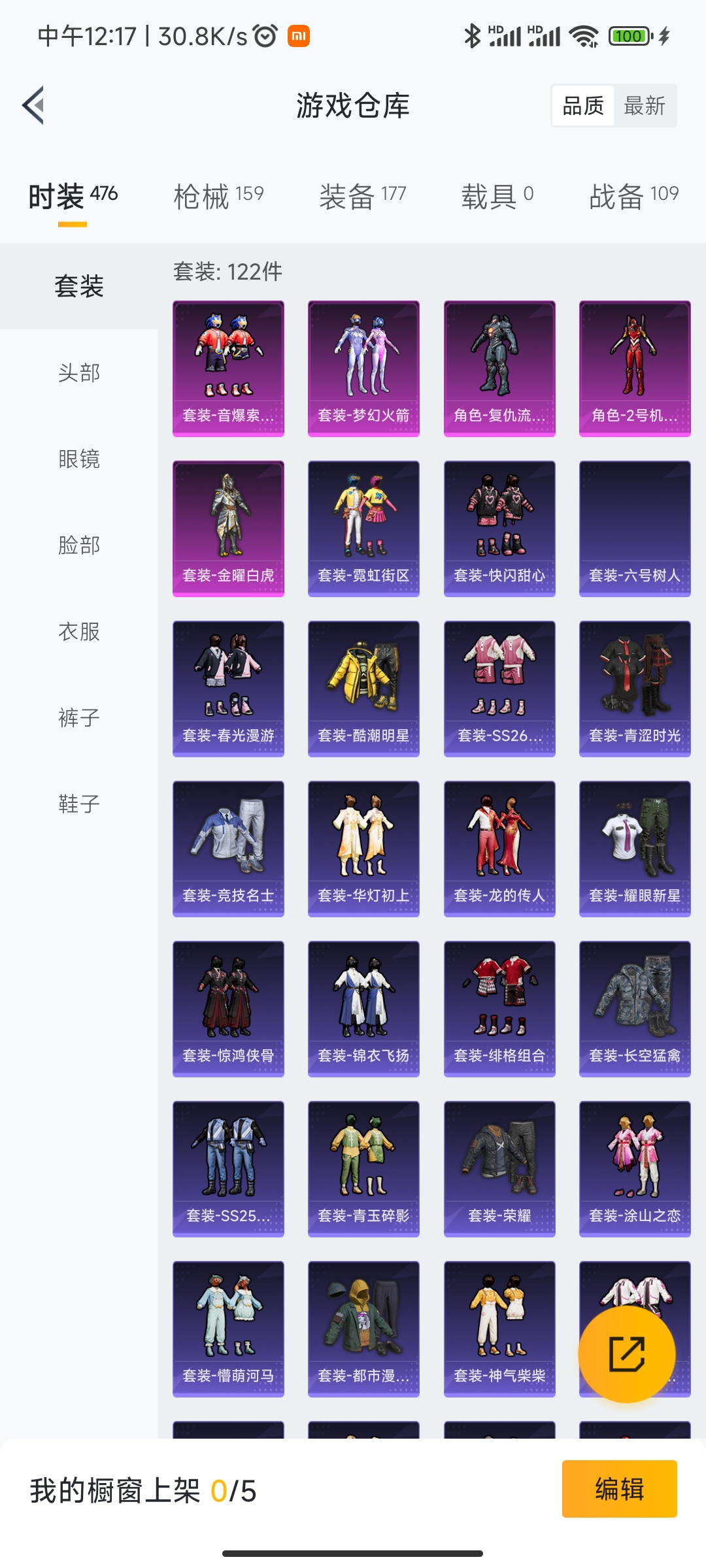 【苹果QQ】122套装-159枪皮-0载具 奇异狩猎者 2号机款机体服 梦幻火箭 音爆索尼克 浪漫波比 M762-甜蜜誓约 M416-五爪金龙 UMP45-相思残雪 黄族统领飞行器 金曜白虎 新侠客行 街舞达人 街舞之王 仓鼠灰灰 团圆交子 瑞龙福将 摩登艾咪