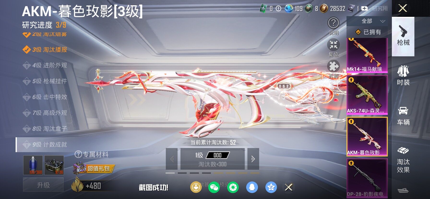 【安卓QQ】95套装-132枪皮-1载具 零号机款机体服 黄螳螂 SCAR-L-锦绣绵绵 团圆交子 瑞龙福将 极速红龙 黑色刀锋 M762-瑞龙福将【苹果QQ】122套装-159枪皮-0载具 奇异狩猎者 2号机款机体服 梦幻火箭 音爆索尼克 浪漫波比 M762-甜蜜誓约 M416-五爪金龙 UMP45-相思残雪 黄族统领飞行器 金曜白虎 新侠客行 街舞达人 街舞之王 仓鼠灰灰 团圆交子 瑞龙福将 摩登艾咪