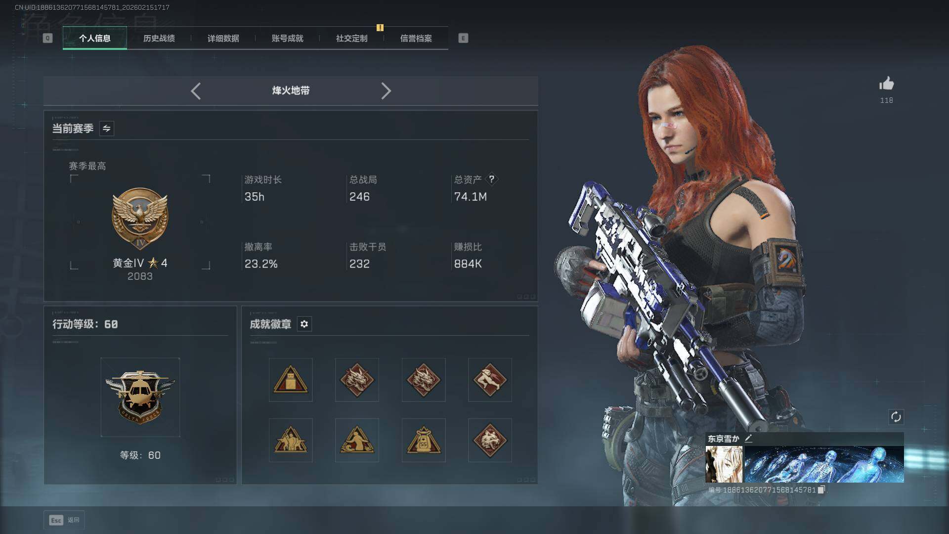 44m总资产-40490k哈伏币-36烽火等级-青铜-1战场等级-无军衔