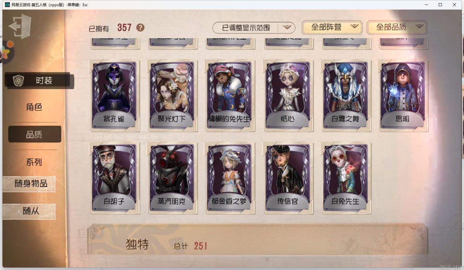 [13735818]OPPO-非账号转移 手机账号 357时装 11金皮 95紫皮 18随从 136随身物品 【时装】:园丁-源自星辰,使徒-多加雷萨,黄衣之主-灾厄之主,勘探员-盖提亚之遗,律师-亚伯拉罕·葛雷,破轮-胡桃夹子,心理学家-长夜,幸运儿-星航之旅,咒术师-灰烬狂想,园丁-异想Hello Kitty,先知-四月一日君寻,爱哭鬼-摩诺,“愚人金”-罪恶熔火,作曲家-先驱探索,鹿头-闻雷爪,“囚徒”-天海兰太郎,空军-爱神之吻,作曲家-猎龙者,病患-溯光,记者-伊布,孽蜥-耶梦加得,杂技演员-李天辰,邮差-华生医生,雕刻家-善忘的海马体,画家-掌中篆记,古董商-陶梦嫣,隐士-薄金 ,病患-休塔尔克,心理学家-菲伦,冒险家-赞因,调酒师-逐浪的玫瑰,幸运儿-蛋小黄的好朋友,邮差-潘塔龙,教授-紧急运输,邮差-报纸怪客,画家-多色印刷,拉拉队员-采集速巡,木偶师-义体再构,小说家-“伊始新篇”,击球手-迫降专家,哭泣小丑-炮弹飞船,画家-江户川乱步,魔术师-广津柳浪,盲女-海女巫,“囚徒”-灵犀妙探,入殓师-菲尼克斯[13739442]苹果官服 邮箱账号 208时装 15金皮 63紫皮 8随从 78随身物品 【时装】:守夜人-KNIGHT-c3,破轮-胡桃夹子,勘探员-盖提亚之遗,飞行家-异相睡眠,小丑-捣蛋裘克,爱哭鬼-摩诺,作曲家-幽灵帆,舞女-西尔菲德,佣兵-中岛敦,园丁-宇宙女巫,杂技演员-茶话会,记者-华生小姐,“囚徒”-OPH.LUCA,骑士-Mentor K,教授-吟游诗人,病患-溯光,“杰克”-加里,雕刻家-善忘的海马体,邮差-华生医生,小丑-OPH.JOKER,邮差-潘塔龙,小说家-“伊始新篇”,哭泣小丑-熄灭的太阳,“法罗女士”-芳泽霞,时空之影-“有机磷”,入殓师-“温室”,“记录员”-删除符,击球手-迫降专家,哭泣小丑-炮弹飞船,勘探员-中原中也,爱哭鬼-雪上小王子,红夫人-女大公,画家-江户川乱步,红蝶-更纱,舞女-高卷杏,调酒师-海盐特调,幸运儿-双一,小丑-变脸王,魔术师-广津柳浪,梦之女巫-信使,前锋-SKULL,梦之女巫-川上富江,前锋-坂本龙司,摄影师-宿醉,“囚徒”-太宰治