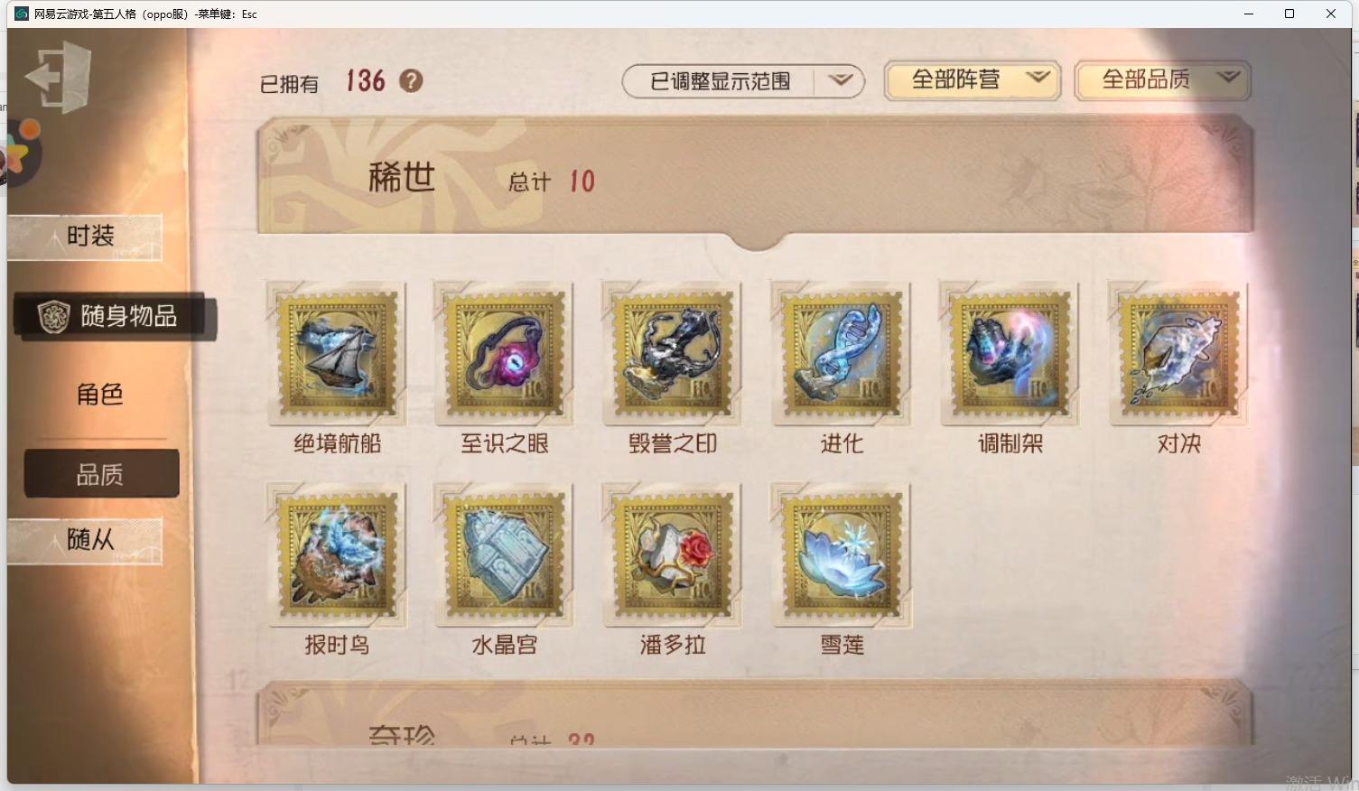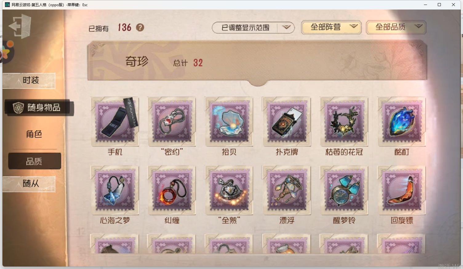 [13699808]安卓官服 手机账号 145时装 8金皮 37紫皮 12随从 37随身物品 【时装】:歌剧演员-幕外之音,作曲家-幽灵帆,爱丽丝·德罗斯-片刻闲暇,渔女-Chef K,调香师-提炼师,咒术师-噩之牙,作曲家-澄明的理性,骑士-Mentor K,骑士-艺术品商人,园丁-郁金香之梦,医生-司药,红蝶-硫火,调香师-Buffy,医生-永生花,小说家-“伊始新篇”,拉拉队员-采集速巡,宿伞之魂-桃面书生,祭司-“朝圣者”,教授-温泉煮酒,祭司-梦之使者,蜡像师-淋浴,昆虫学者-可妮兔,红夫人-女大公,画家-江户川乱步,红夫人-贝拉夫人,红蝶-白无垢,红蝶-更纱,调酒师-海盐特调,舞女-香薰桑拿,调香师-笼中之蝶,调香师-冰上舞蹈,调香师-致命温柔,调香师-今夜不再,调香师-Lady K,小提琴家-孤月骑士,医生-往昔,“使徒”-校监夫人,冒险家-爱丽丝,宿伞之魂-安魂曲【随身物品】:遗忘之花(稀世),沙滩镜(奇珍),月光(奇珍),记忆囚笼(奇珍),酩酊(奇珍),折柳(稀世),法典(奇珍),旧日征帆(奇珍),玫瑰手杖(蓝)(奇珍),长生(奇珍),焚樱(奇珍),玫瑰之下(稀世),完美人偶(稀世),星云瓶(稀世),小人偶(奇珍),“星辰”(稀世),梦魇结晶(稀世),凝露(奇珍),凝聚之水(奇珍),书中蝶(稀世)