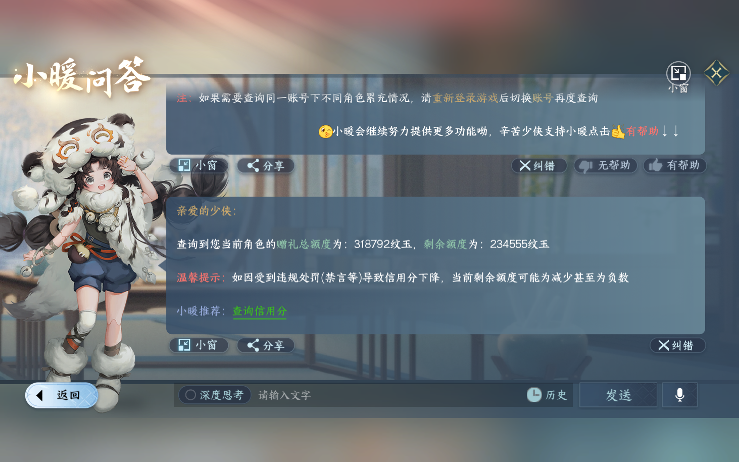 XY-076666979 战力值1012000 总评1012000 角色等级89 衣品值101790 国色值12870 已用天赏石4 【网易手机账号】 【有换绑冷却】 【龙吟】 【女】 【2级】 【无防沉迷】 【把酒临风】 【互通】 天赏外观4 祥瑞坐骑14 商城外观22 天赏外观:觅萤,绯玉枝,鳞川,绯烟香袅; 祥瑞坐骑:风行·江湖景,风行·世间情,龙衔瑞焰,风行·万灯明,金冠鼠鼠,粉黛娇,骋风叱焰,奔虹赤,犬威哮月·沧,玉霄飞练,花花团子,梅香团子,牛奶酥,隐云涧; 商城外观:猩红猎夜,羽信絮梦,绯月狼舞,白露惑心,巧影逐光,音律织光,朝歌旧梦,飞叶若依,晶梦绮舞,灵珠饮月,闻鹤九皋,蝎影度月,灵语星彩,凤亭疏香,云汉逢夕,难负君思,星宫遐音,赤狐魅语,林泽清瑶,白灵雪魅,春灯裁蝶,轻功诀伞梦;