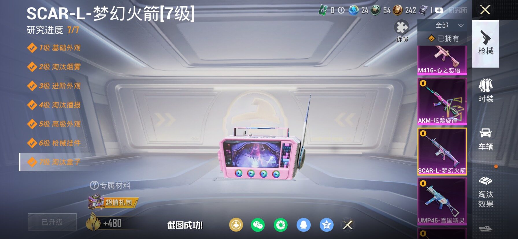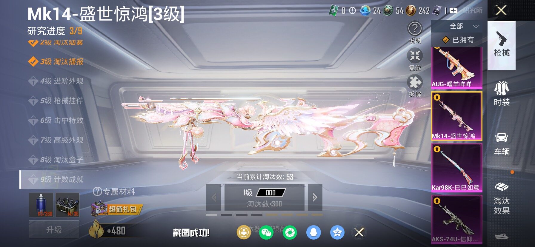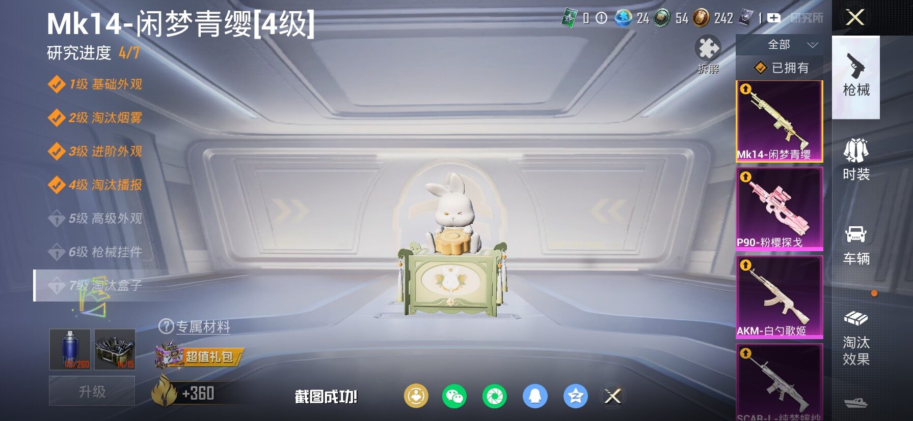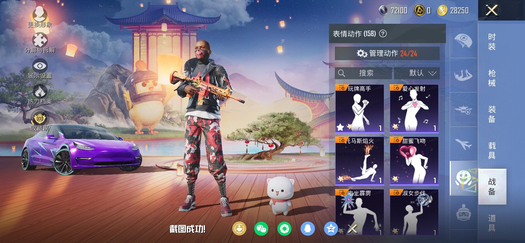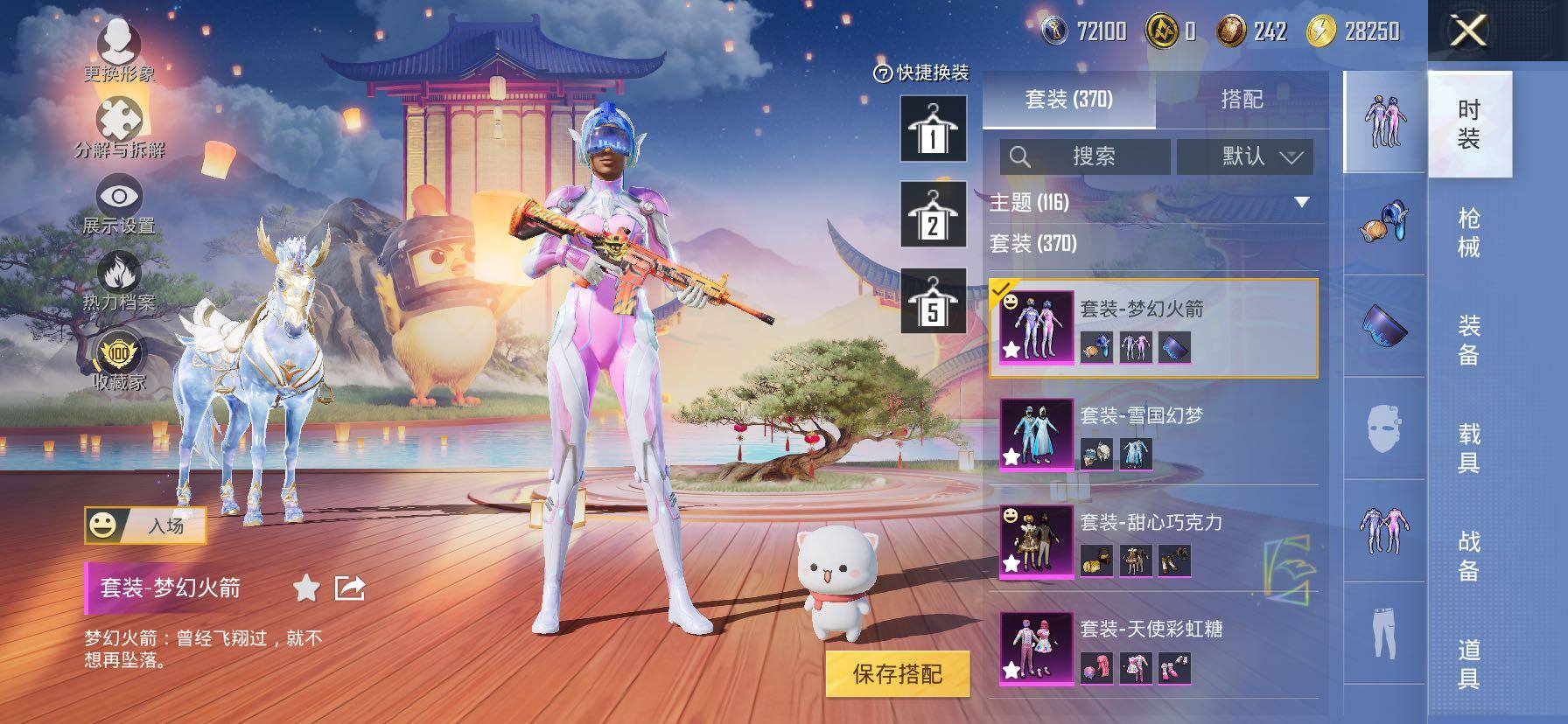 【安卓QQ】95套装-132枪皮-1载具 零号机款机体服 黄螳螂 SCAR-L-锦绣绵绵 团圆交子 瑞龙福将 极速红龙 黑色刀锋 M762-瑞龙福将【苹果QQ】122套装-159枪皮-0载具 奇异狩猎者 2号机款机体服 梦幻火箭 音爆索尼克 浪漫波比 M762-甜蜜誓约 M416-五爪金龙 UMP45-相思残雪 黄族统领飞行器 金曜白虎 新侠客行 街舞达人 街舞之王 仓鼠灰灰 团圆交子 瑞龙福将 摩登艾咪