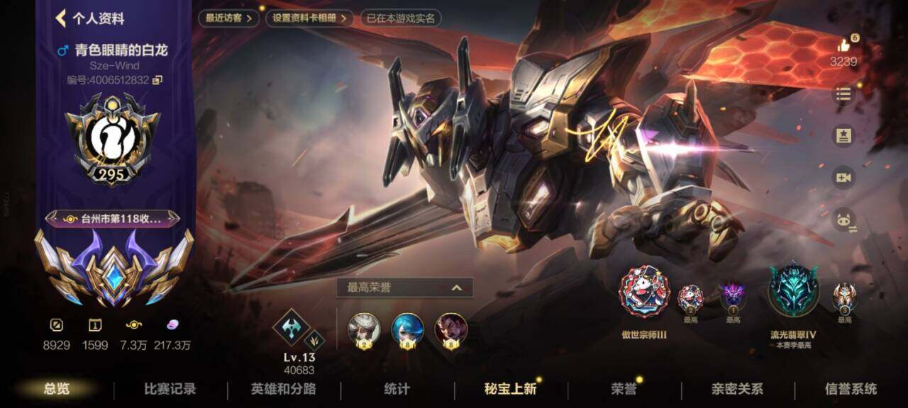 安卓Q区:可二次实名 英雄132 皮肤324 1典藏4神话42传说164史诗 璀璨钻石Ⅰ