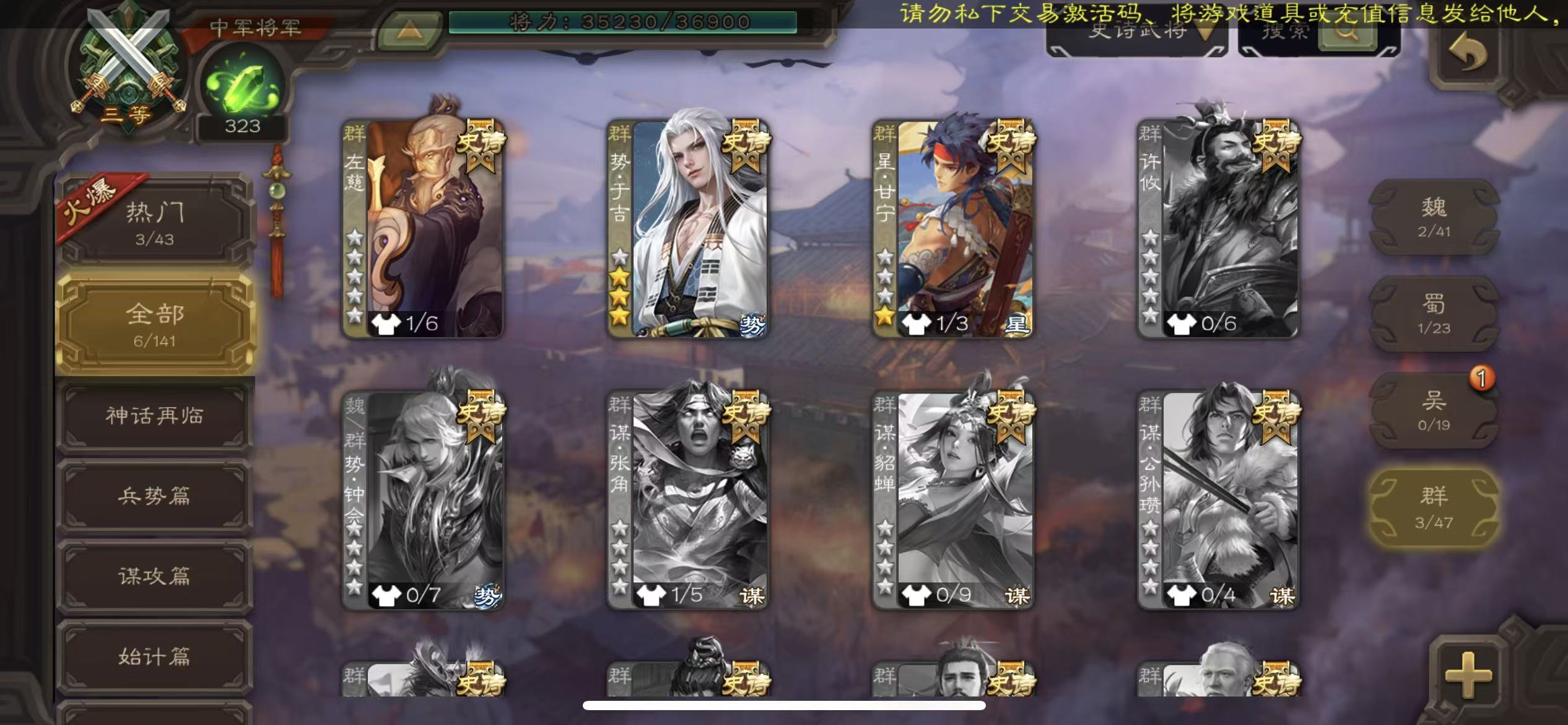 商品描述:中军势于吉戏志才老头左慈动星甘宁陈宇6史诗三卡