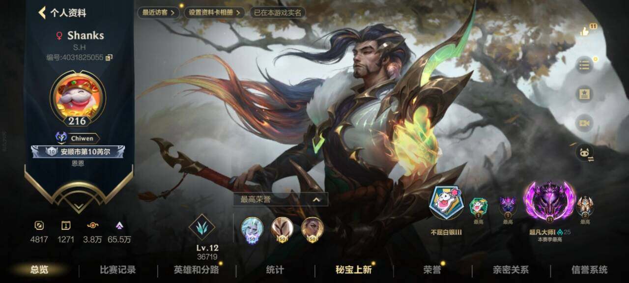 安卓Q区:可二次实名 英雄132 皮肤324 1典藏4神话42传说164史诗 璀璨钻石Ⅰ