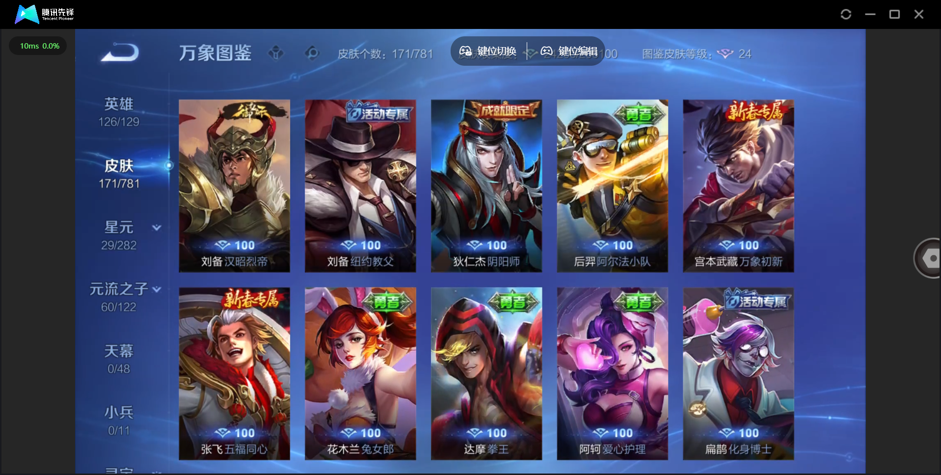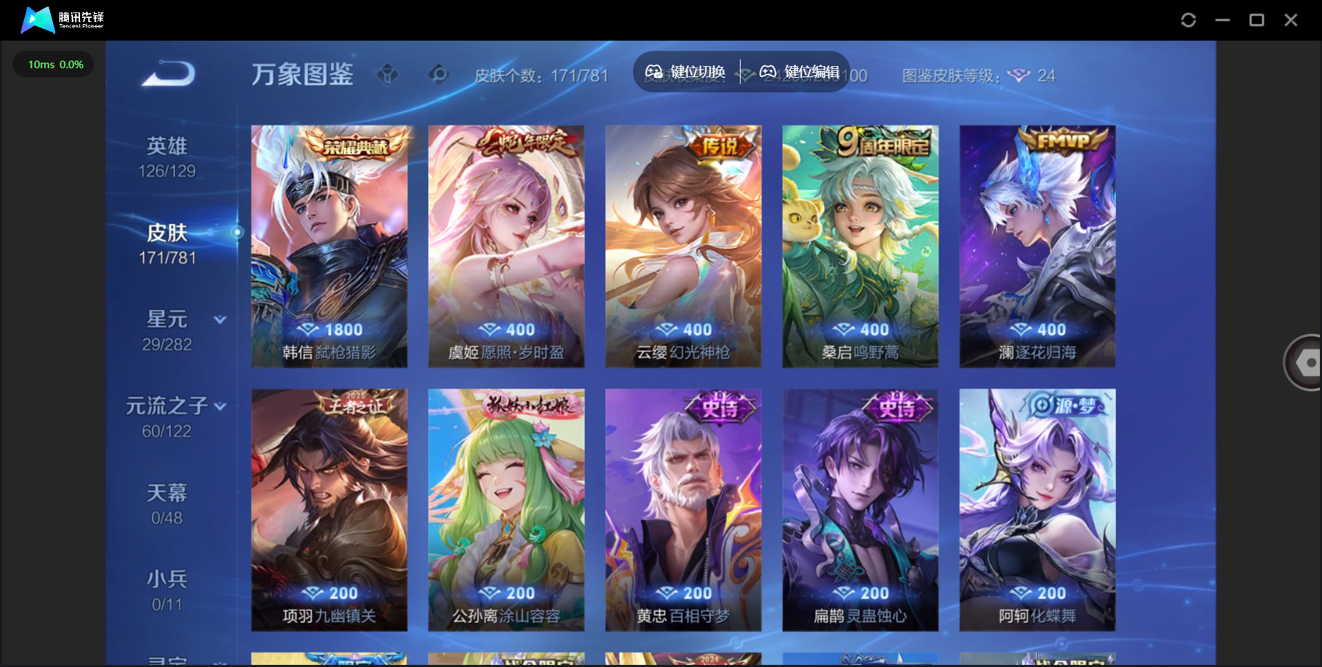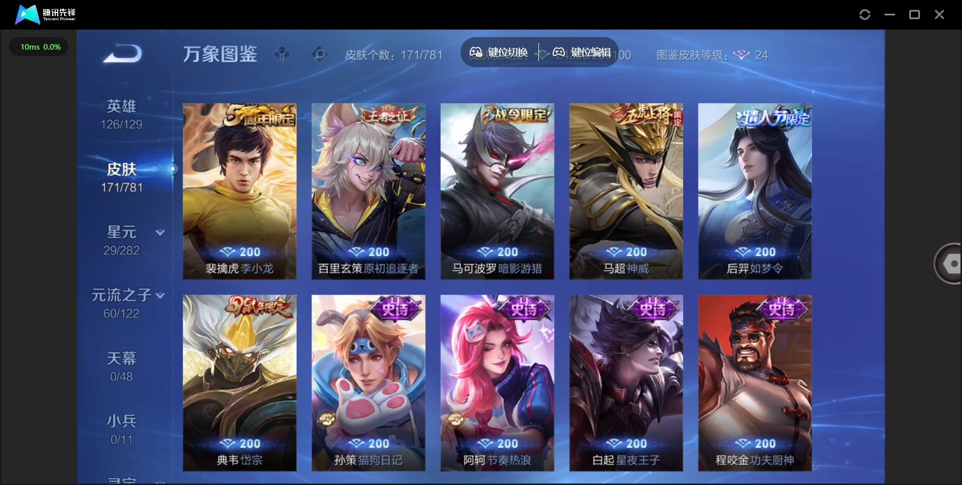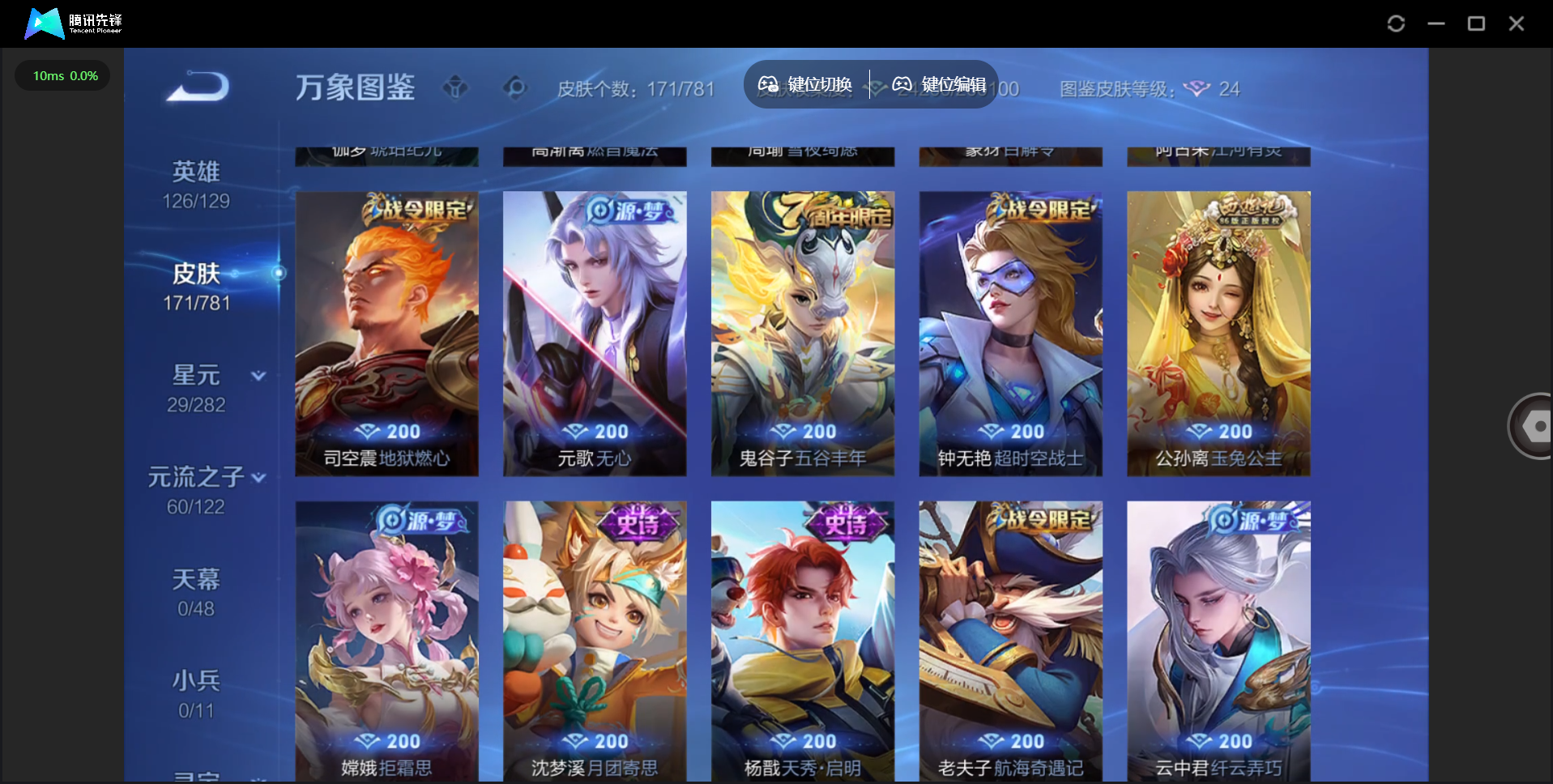 【QQ(安卓)】贵族0-贵族积分0万-0英雄-0皮肤 【抢先服】2万金币+回归150级铭文+改名卡