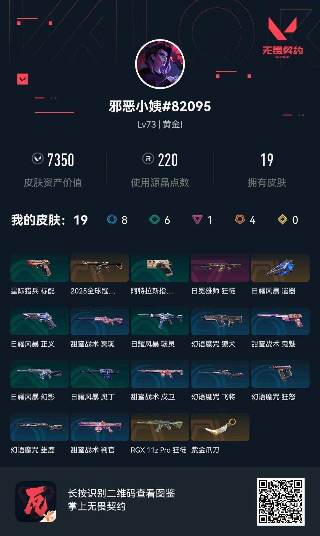 [13644182]8橙皮 1紫皮 23皮肤 19英雄 59卡面 285已用源晶 未定级段位 【近战武器皮肤】:RGX 11z Pro//2.0 蝴蝶刀,匕首-超限闪存,蝴蝶刀-侦察力量【佩枪皮肤】:标配-VCT25xEDG,正义-西部未来【步枪皮肤】:狂徒-掠影,狂徒-混沌序曲,狂徒-塑水宗【挂饰】:鱼骨头挂饰,双城之战小蛋糕挂饰,源晶工程挂饰,神中神挂饰,VCTxEDG挂饰,终章KO小金人挂饰