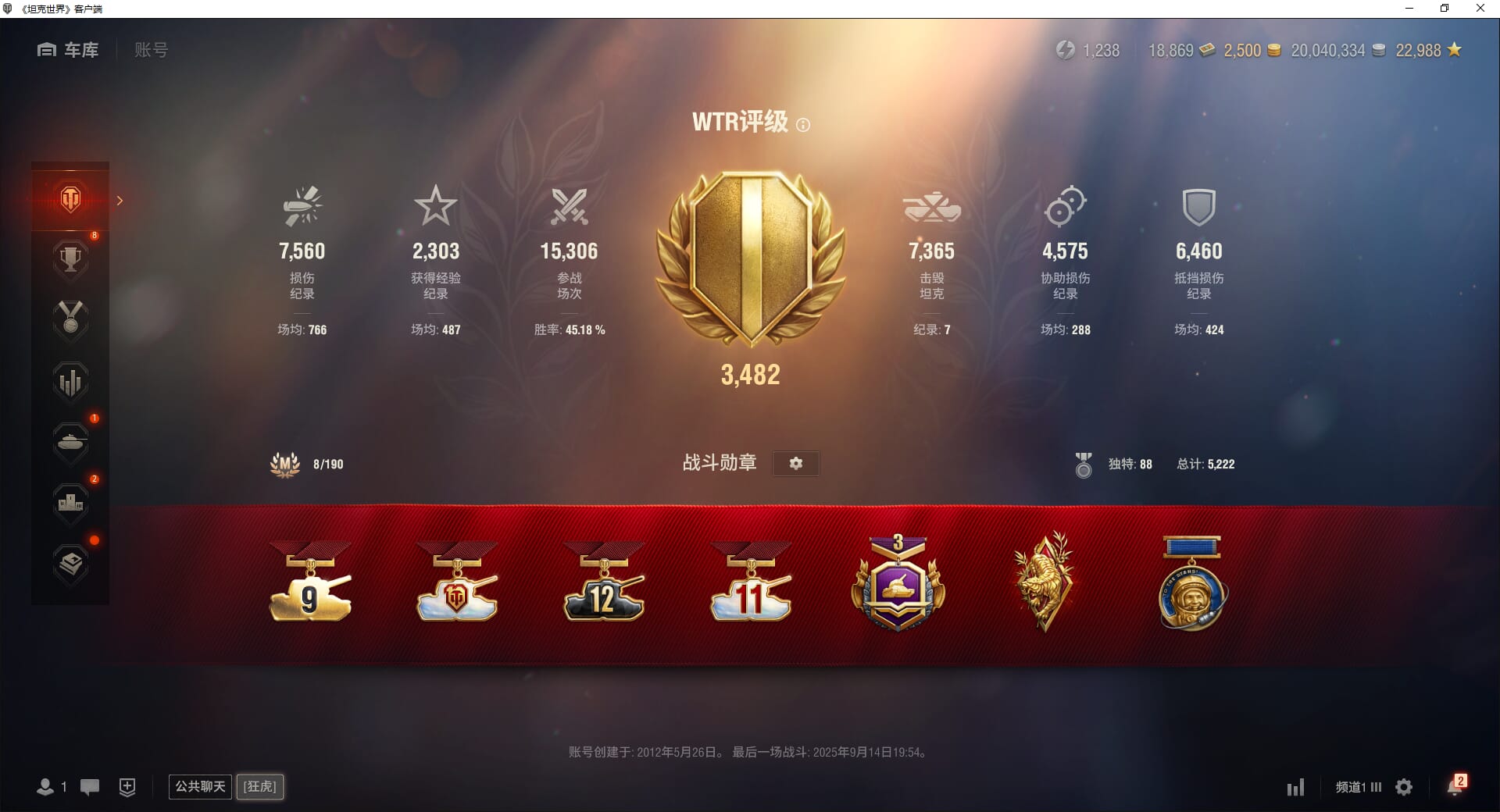 TD1238/无绑定-绝对安全/全部坦克14/金币坦克12/10级2/9级1/10级/BZ-75/FV215b/9级/GSOR坦克/乘员112/债券16793/金币3176/银币1494w/全局16088