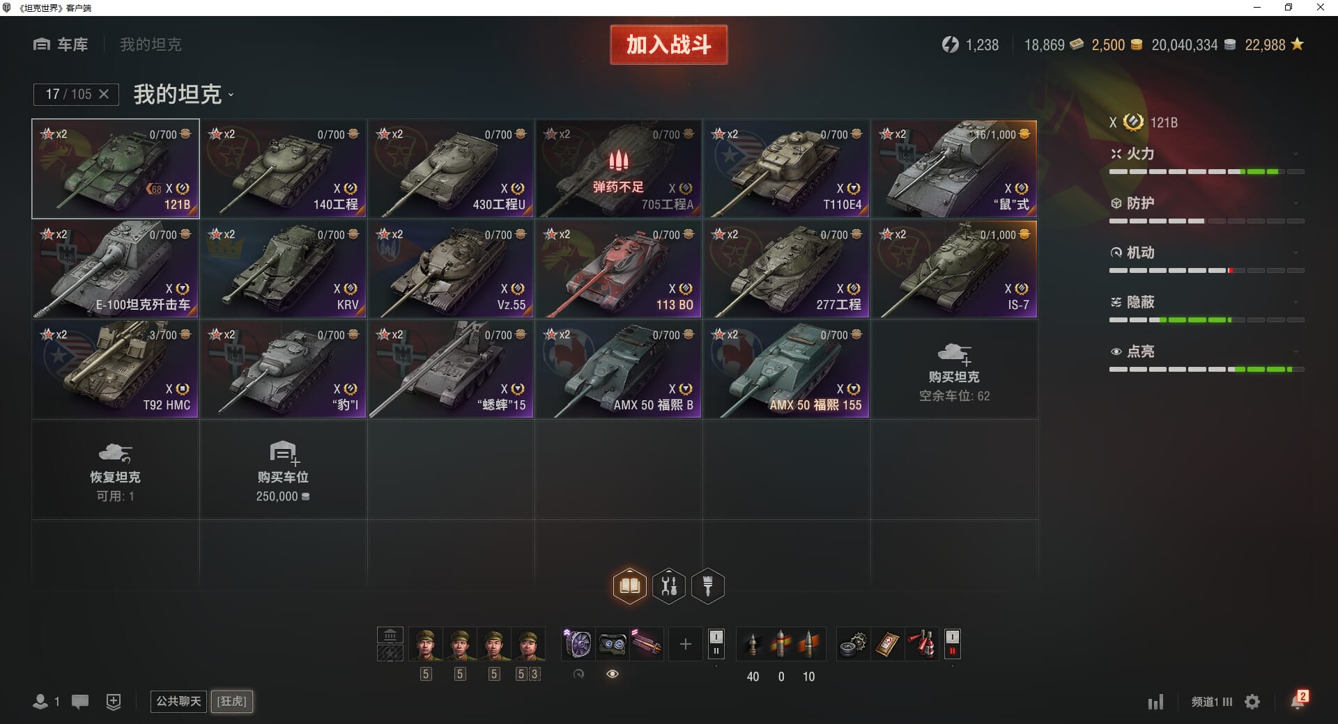 | TD1333/无绑定-绝对安全/全部坦克97/金币坦克48/10级17/9级11/8级14/10级/121B/140工程/430工程U/705工程A/T110E4/鼠式/E-100坦克歼灭车/KRV/Vz55/113B0/277工程/IS-7/T92HMC/豹I/蟋蟀15/AMX50福熙B/AMX50福熙155/9级/巴顿坦克/AE一期/4号先进战车/8级/天蝎/索玛SM/乘员479/债券18869/金币2500/银币2004/全局22988 |