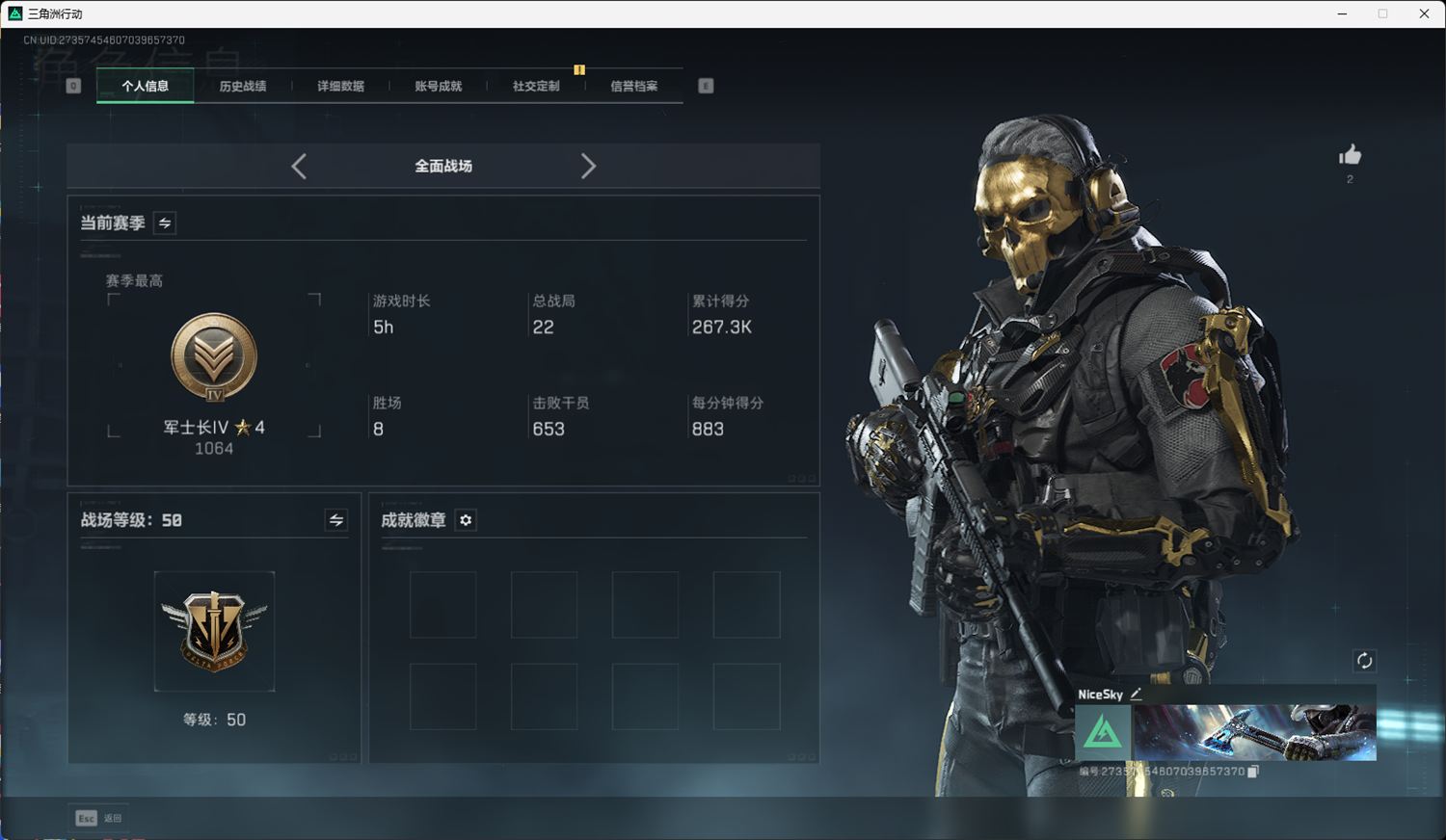 N6449/哈夫币/16270W/武器皮肤175/烽火60级/黑鹰Ⅲ/战场/暂无段位/【货币】40三角币/250三角卷/【安全箱】进阶安全箱/【特勤处等级】仓库LV.7/靶场LV.5/训练中心LV.7/【捆绑包6】北极星捆绑包/鹅鸭杀捆绑包/蚀金玫瑰捆绑包/特斯拉线圈捆绑包/捞点薯条捆绑包/蝮蛇捆绑包/【干员皮肤3】红狼蚀金玫瑰/蜂医送葬人无题密令/露娜金牌射手/【近战皮肤】近战武器-北极星/近战武器-黑鹰/【步枪皮肤】M4A1突击步枪-阿米娅/M4A1突击步枪-蚀金玫瑰/ASh-12战斗步枪-鹅鸭杀/SG552突击步枪-运动员/AK-12突击步枪-特斯拉线圈/SCAR-H战斗步枪-启航/G3战斗步枪-骑士/CAR-15突击步枪-阿米娅/腾龙突击步枪-捞点薯条/K437突击步枪-北极星/AUG突击步枪-蝮蛇/M7战斗步枪-百步穿杨/SG552突击步枪-哈夫克警备/SCAR-H战斗步枪-囚徒/G3战斗步枪-流沙送葬/PTR-32突击步枪-OldHabits/ASVal突击步枪-典狱官/ASVal突击步枪-百步穿杨/腾龙突击步枪-无垢/【冲锋枪皮肤】UZI冲锋枪-特斯拉线圈/SR-3M紧凑突击步枪-特斯拉线圈/勇士冲锋枪-能天使-午夜邮差/QCQ171冲锋枪-北极星/QCQ171冲锋枪-鹅鸭杀/MP5冲锋枪-战术竞备/MP5冲锋枪-竞技风/P90冲锋枪-紧急戒备/Vector冲锋枪-百步穿杨/SR-3M紧凑突击步枪-荒野求生/SR-3M紧凑突击步枪-战术竞备/勇士冲锋枪-工业狂潮/MP7冲锋枪-无垢/MP7冲锋枪-守护者/【射手步枪皮肤】SVD狙击步枪-荒野求生/M14射手步枪-工业狂潮/PSG-1射手步枪-无垢/【狙击步枪皮肤】AWM狙击步枪-捞点薯条/SV-98狙击步枪-林中猎手/SV-98狙击步枪-囚徒/SV-98狙击步枪-猎鳄行动/M700狙击步枪-竞技风/M700狙击步枪-蝮蛇/M700狙击步枪-百步穿杨/AWM狙击步枪-无极限/AWM狙击步枪-流沙送葬/【霰弹枪皮肤】725双管霰弹枪-送葬人-无题密令/【轻机枪皮肤】M250通用机枪-骑士之心/QJB201轻机枪-鹅鸭杀/PKM通用机枪-蝮蛇/PKM通用机枪-荒野求生/M250通用机枪-囚徒/QJB201轻机枪-OldHabits/【手枪皮肤】93R-捞点薯条/沙漠之鹰-曙光/【复合弓皮肤】复合弓-黑-天际线/复合弓-守护者/【挂饰20】赤霄游龙/挂饰-蚀金玫瑰/挂饰-黑/挂饰-北极星/挂饰-龙门币/挂饰-特斯拉线圈/挂饰-阿米娅/挂饰-来点薯条/挂饰-晶石幻想/挂饰-大白鹅/挂饰-启程/挂饰-雪人/阿萨拉狙击兵/阿萨拉霰弹兵/诡影狙击兵/诡影喷火兵/暗行哨兵/崩岩重炮/【载具11】轮式突击炮-荣耀/M1A4坦克-哈夫克重工/轮式突击炮-巅峰竞赛/突击直升机-原始伪装/全地形车-森林迷彩/M1A4坦克-护林人/轮式突击炮-护林人/M1A4坦克-烟火2026/突击车-寒梅/轮式突击炮-烟火2026/侦察直升机-烟火2026/找回包赔